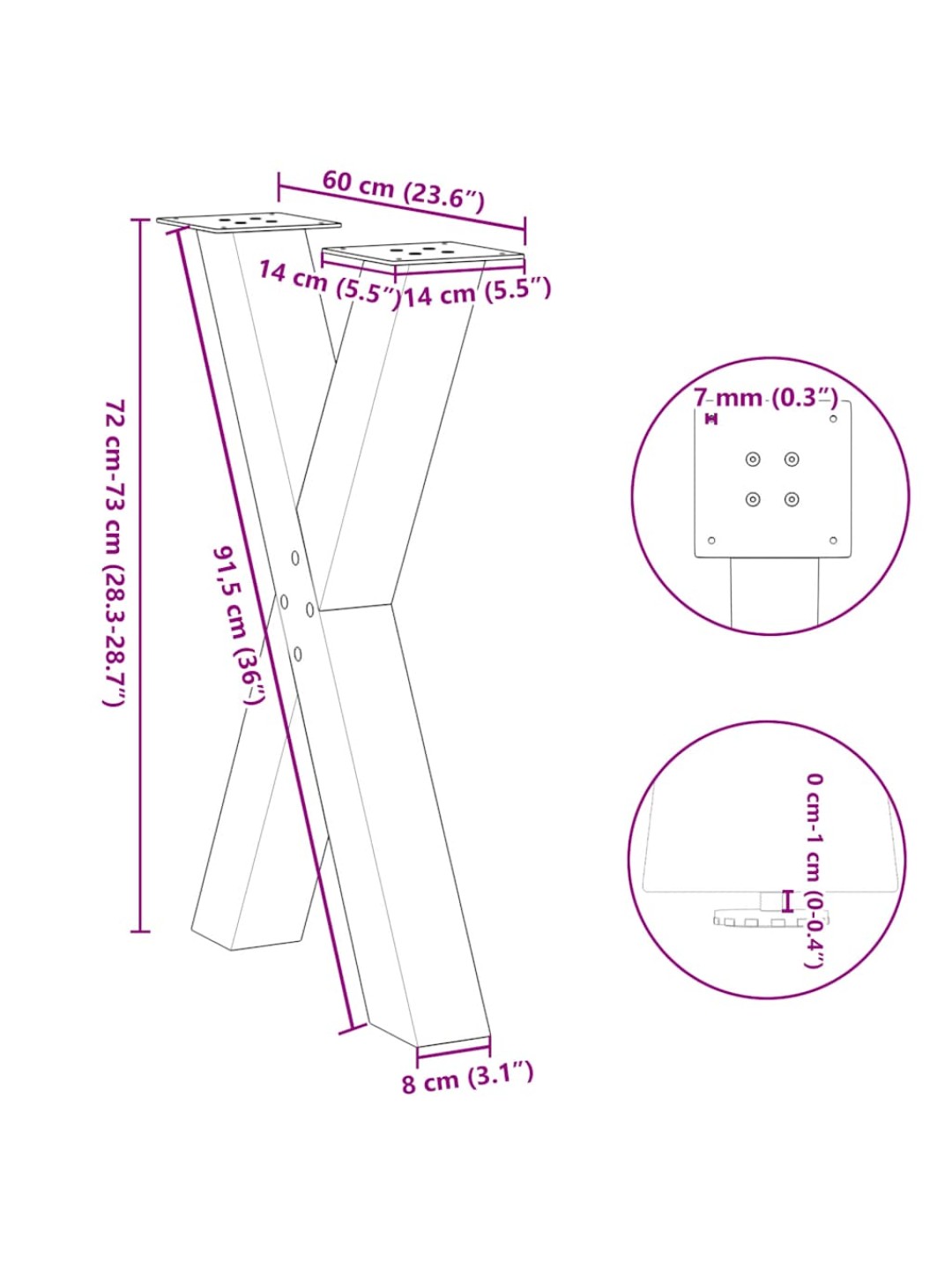 SÖÖGILAUA JALAD, X-KUJULISED, 2 TK, VALGED, 60 X (72–73) CM, TERAS