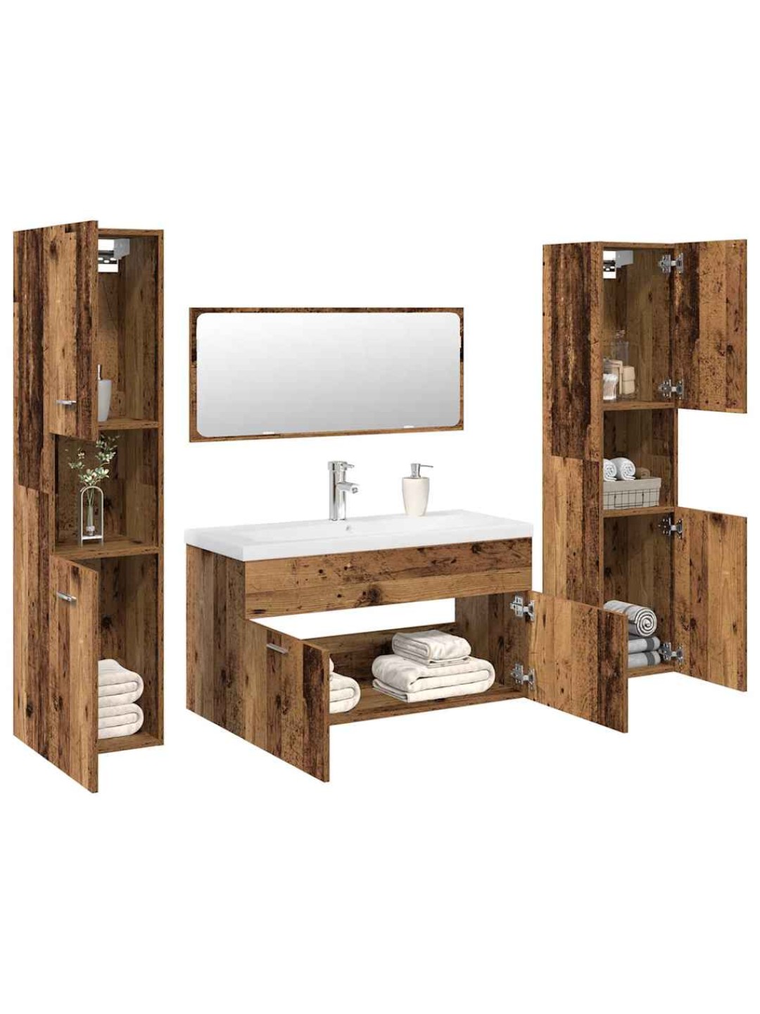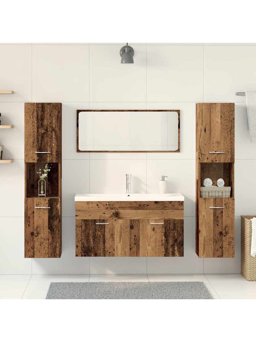 5-OSALINE VANNITOA MÖÖBLIKOMPLEKT, VANA PUIT, TEHISPUIT