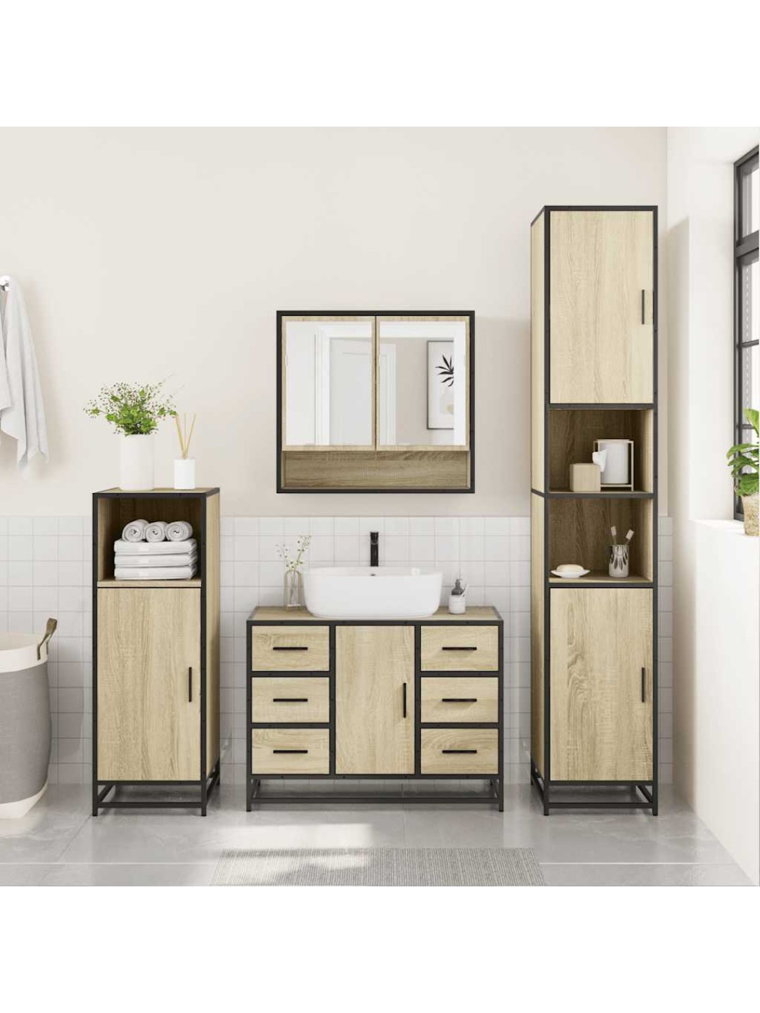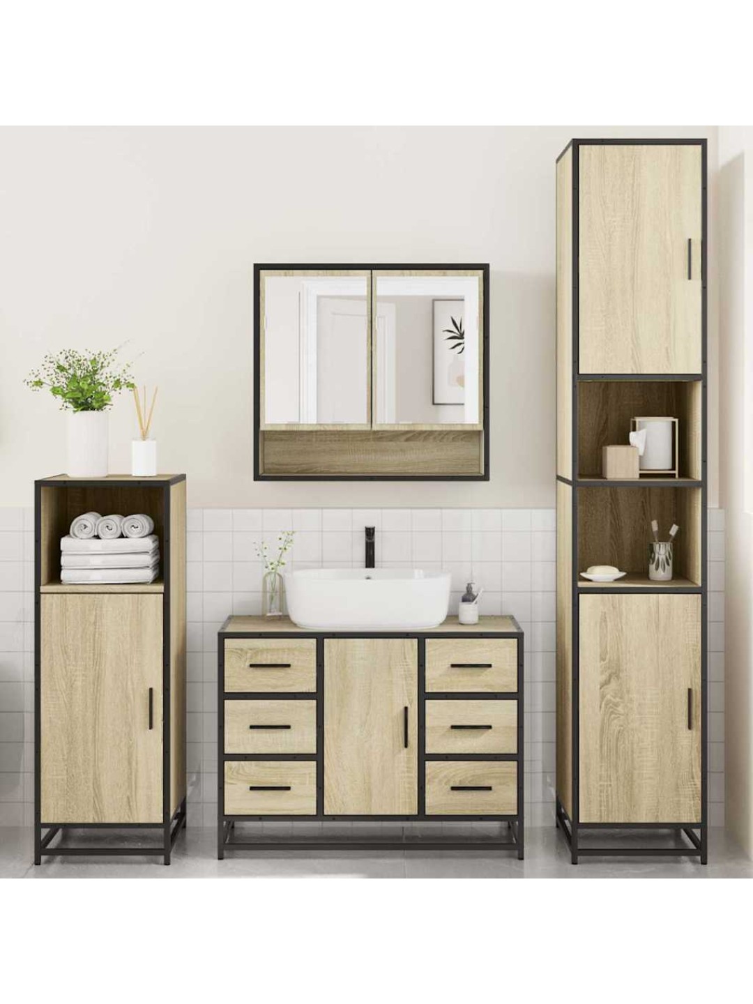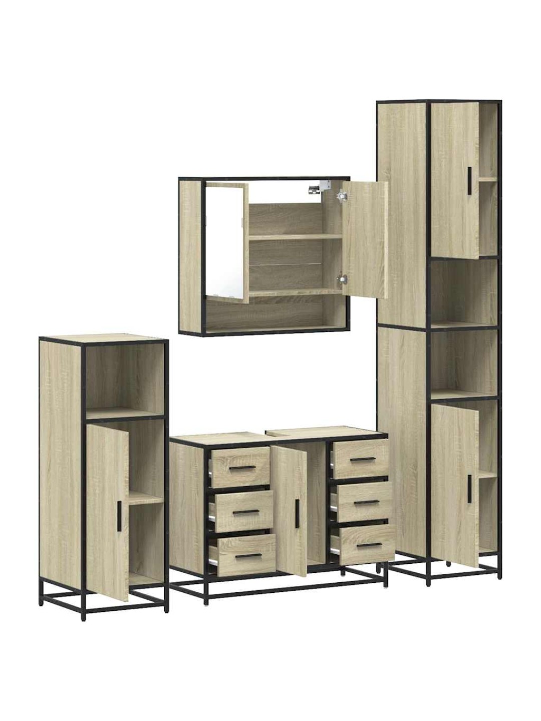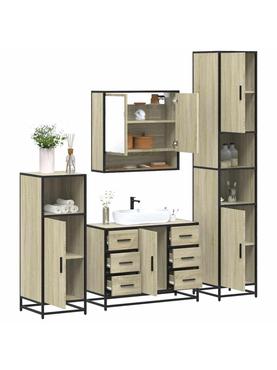 4-OSALINE VANNITOA MÖÖBLIKOMPLEKT, SONOMA TAMM, TEHISPUIT