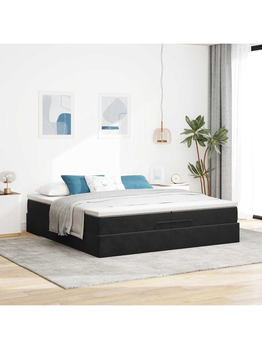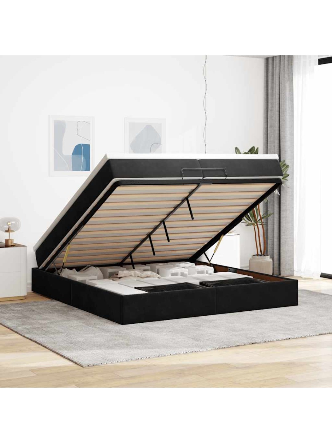 OTTOMANI VOODIRAAM MADRATSITEGA, MUST, 200X200 CM, SAMET