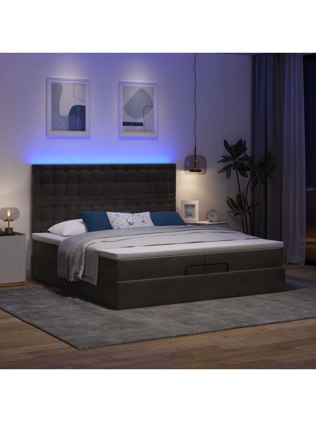 OTTOMANI VOODIRAAM MADRATSITEGA, MUST, 200X200 CM, SAMET