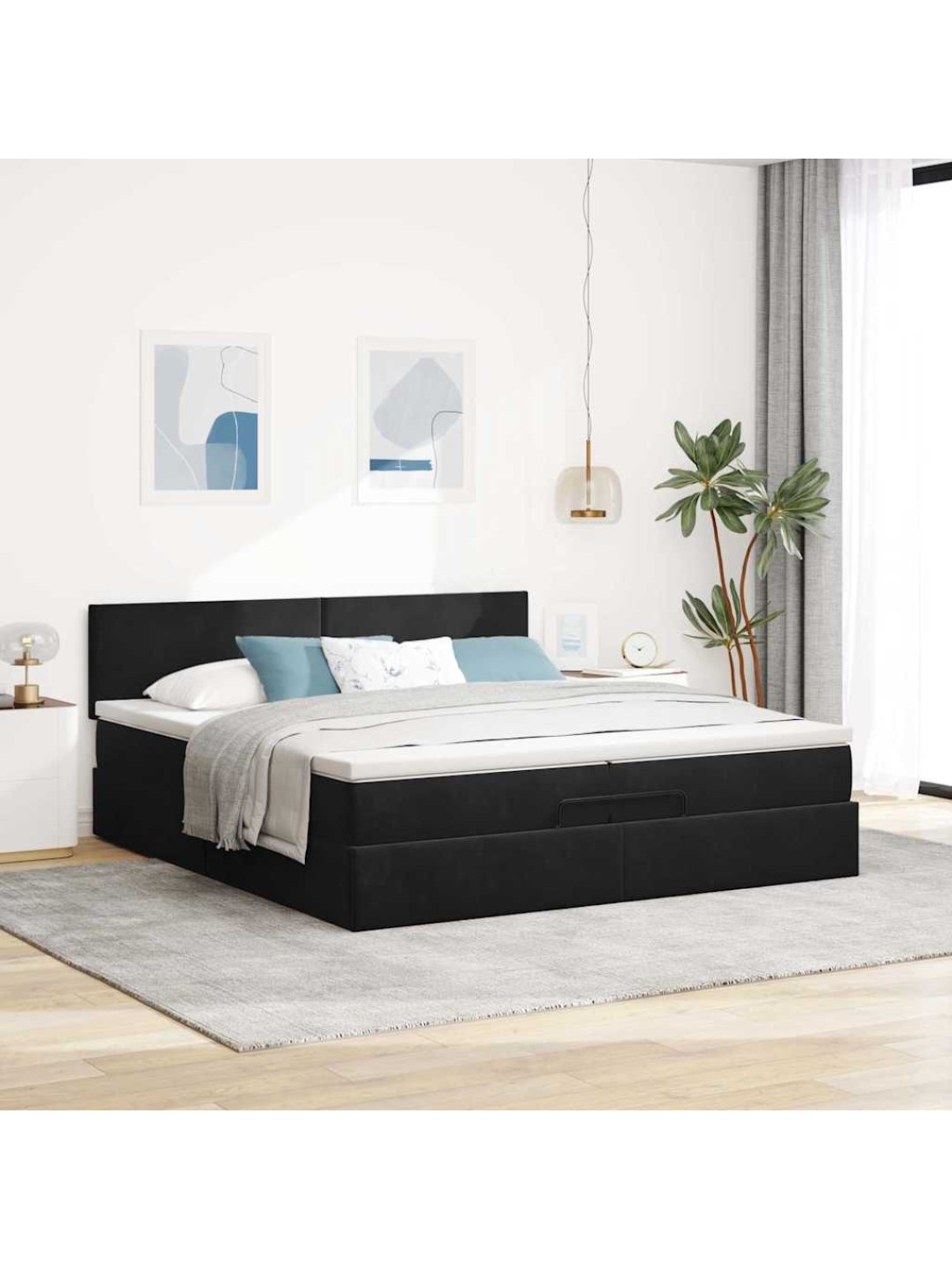 OTTOMANI VOODIRAAM MADRATSITEGA, MUST, 200X200 CM, SAMET