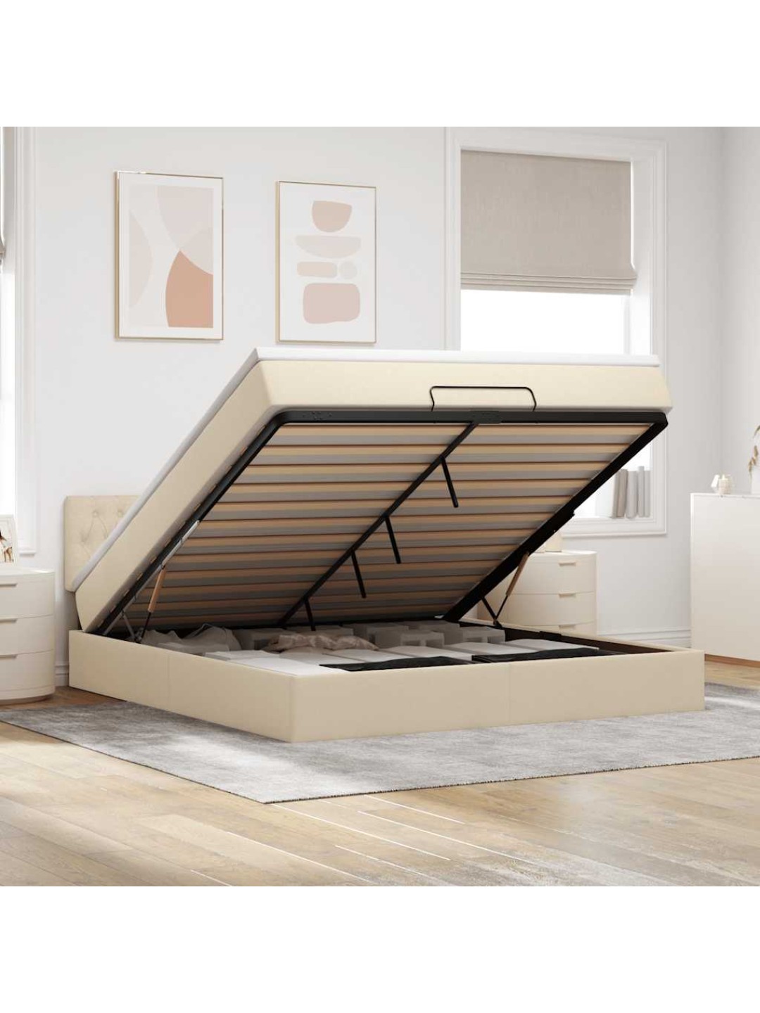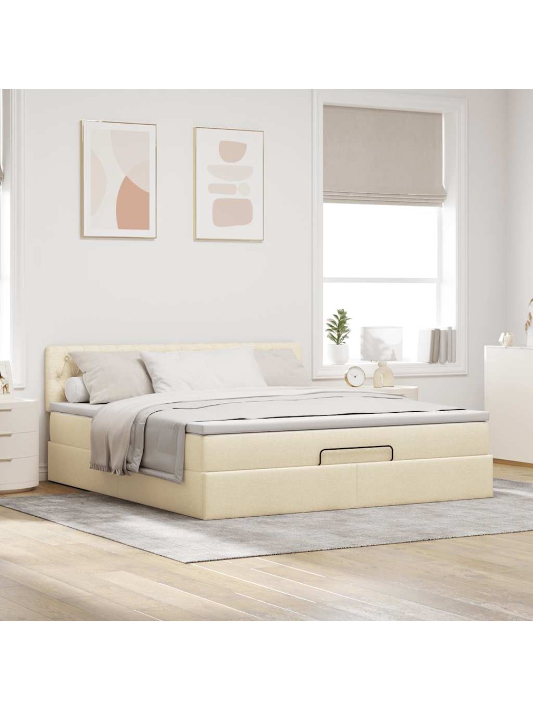 OTTOMANI VOODI MADRATSIGA, KREEMJAS, 180X200 CM, KANGAS