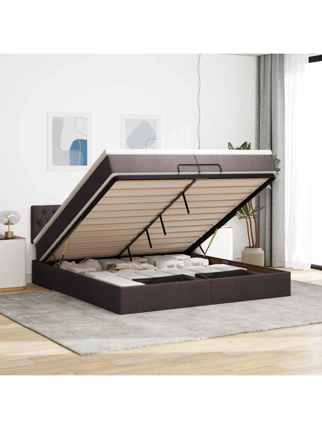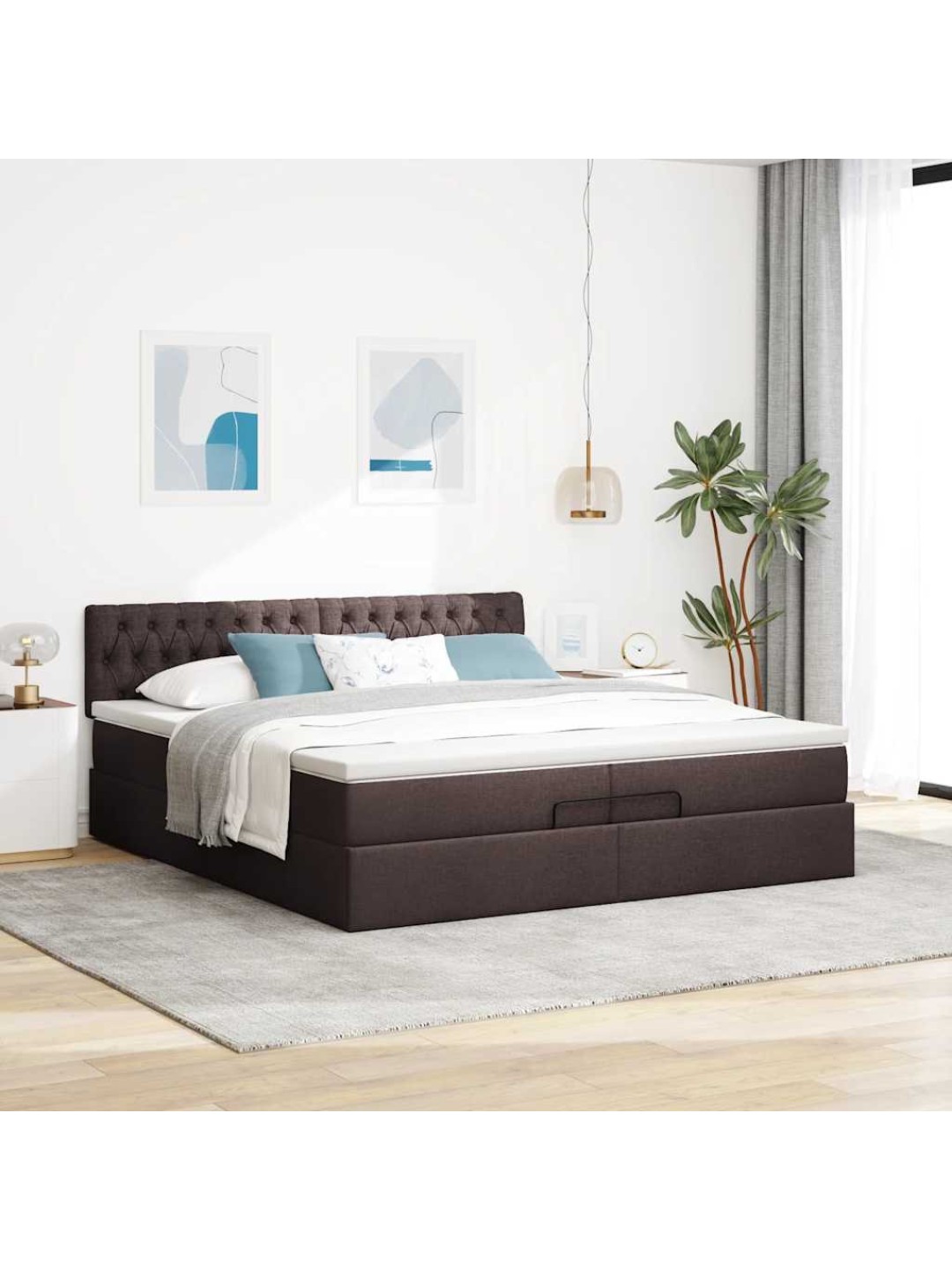OTTOMANI VOODI MADRATSIGA, TUMEPRUUN, 200X200 CM, KANGAS