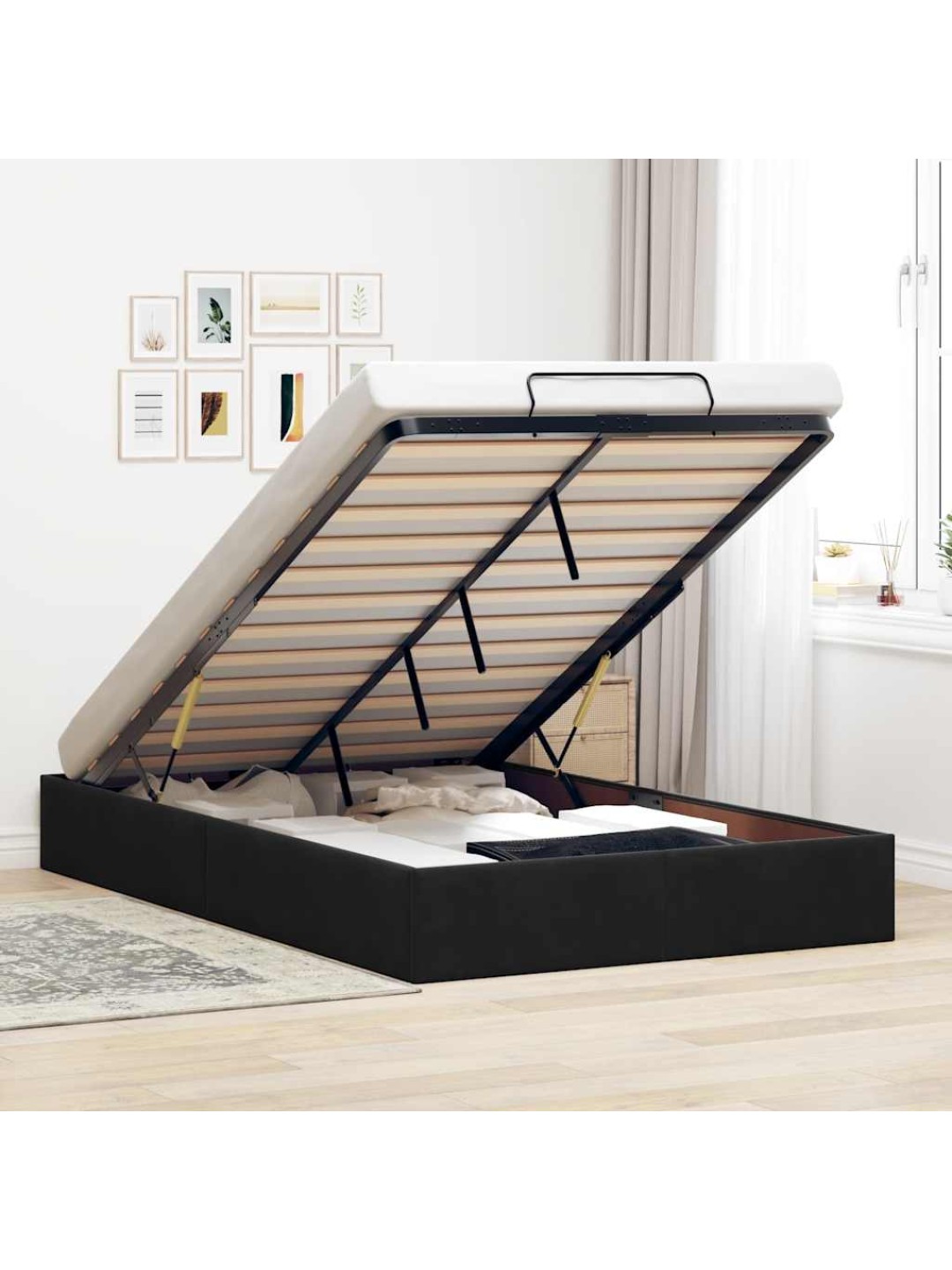 OTTOMANI VOODIRAAM ILMA MADRATSITA, MUST, 120X190 CM, SAMET