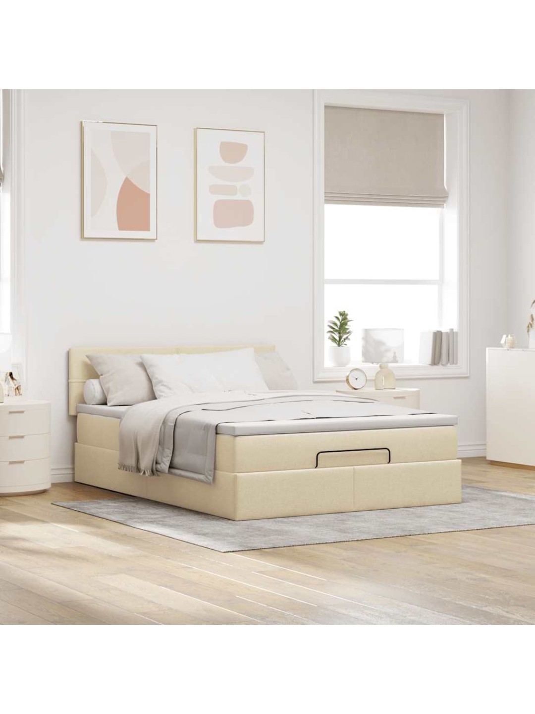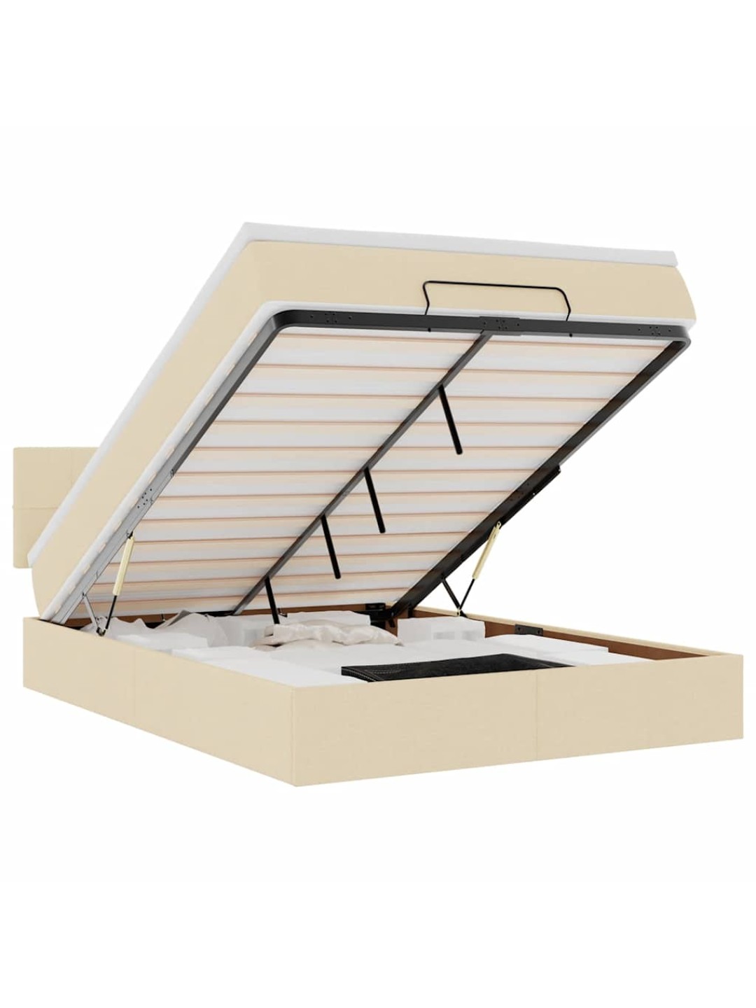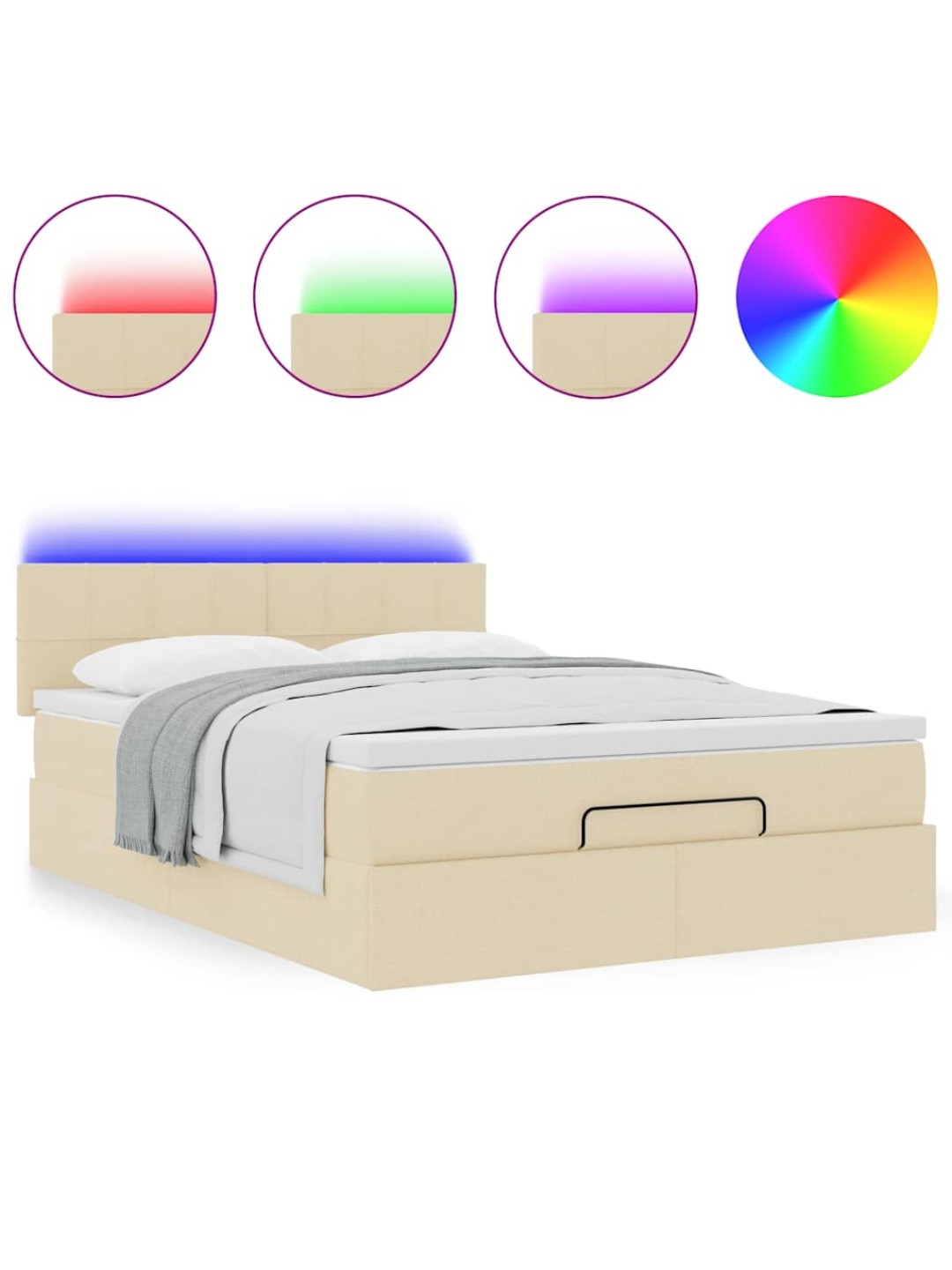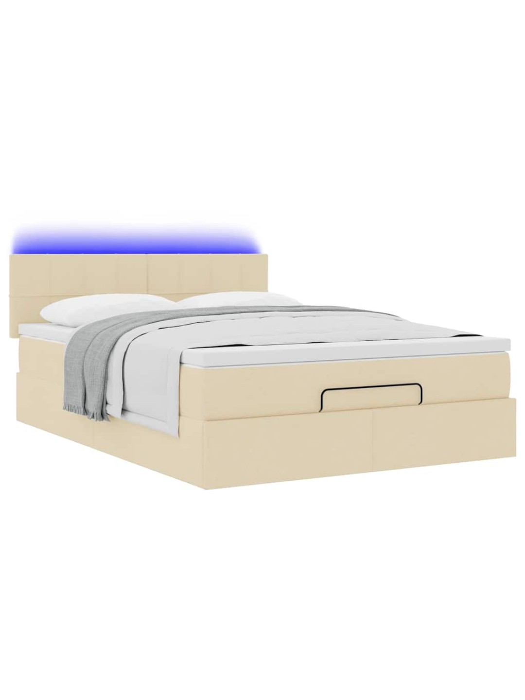 OTTOMANI VOODI MADRATSITA JA LED, KREEMJAS, 140X190 CM, KANGAS