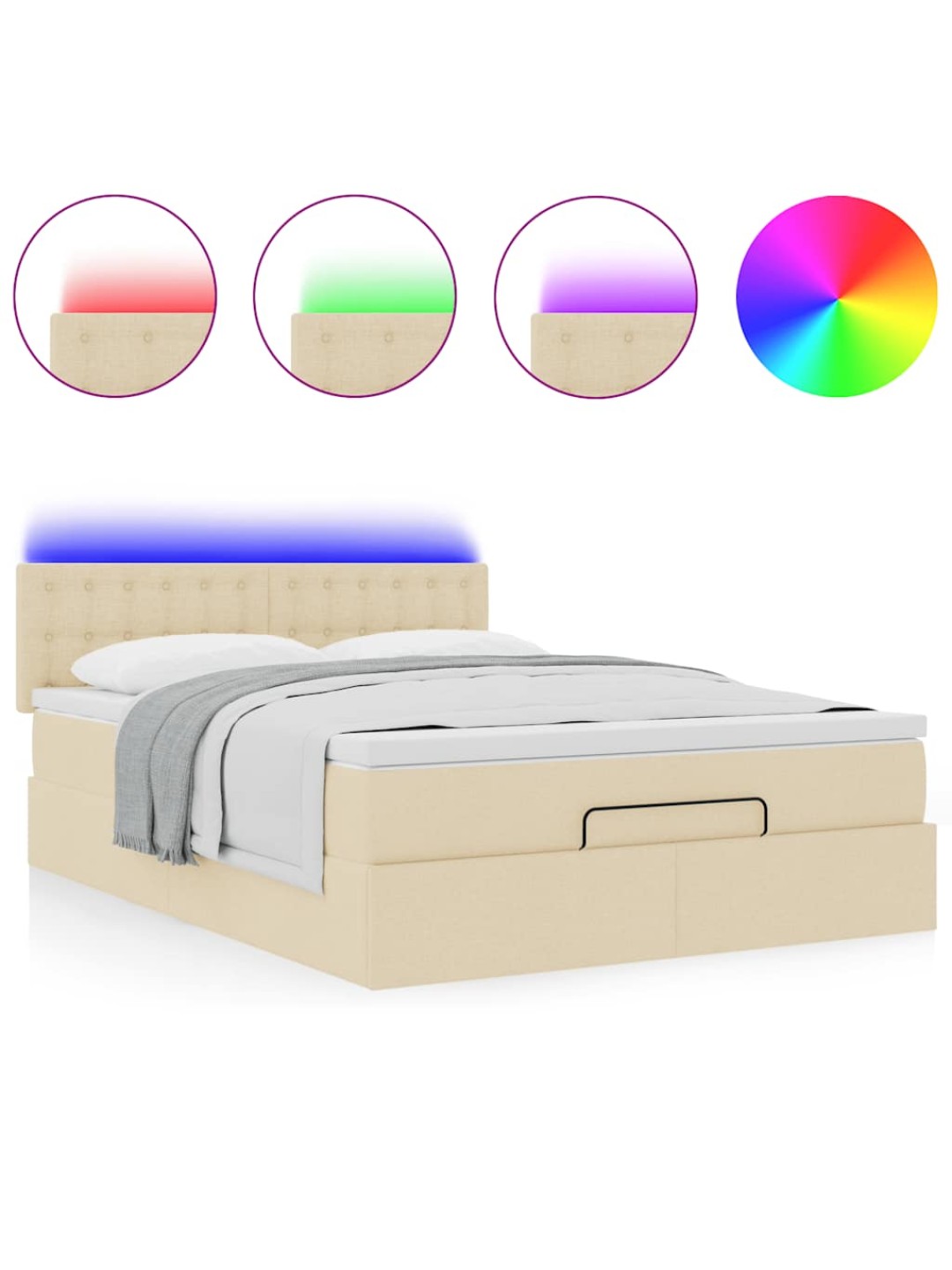 OTTOMANI VOODI MADRATSITA JA LED, KREEMJAS, 140X190 CM, KANGAS