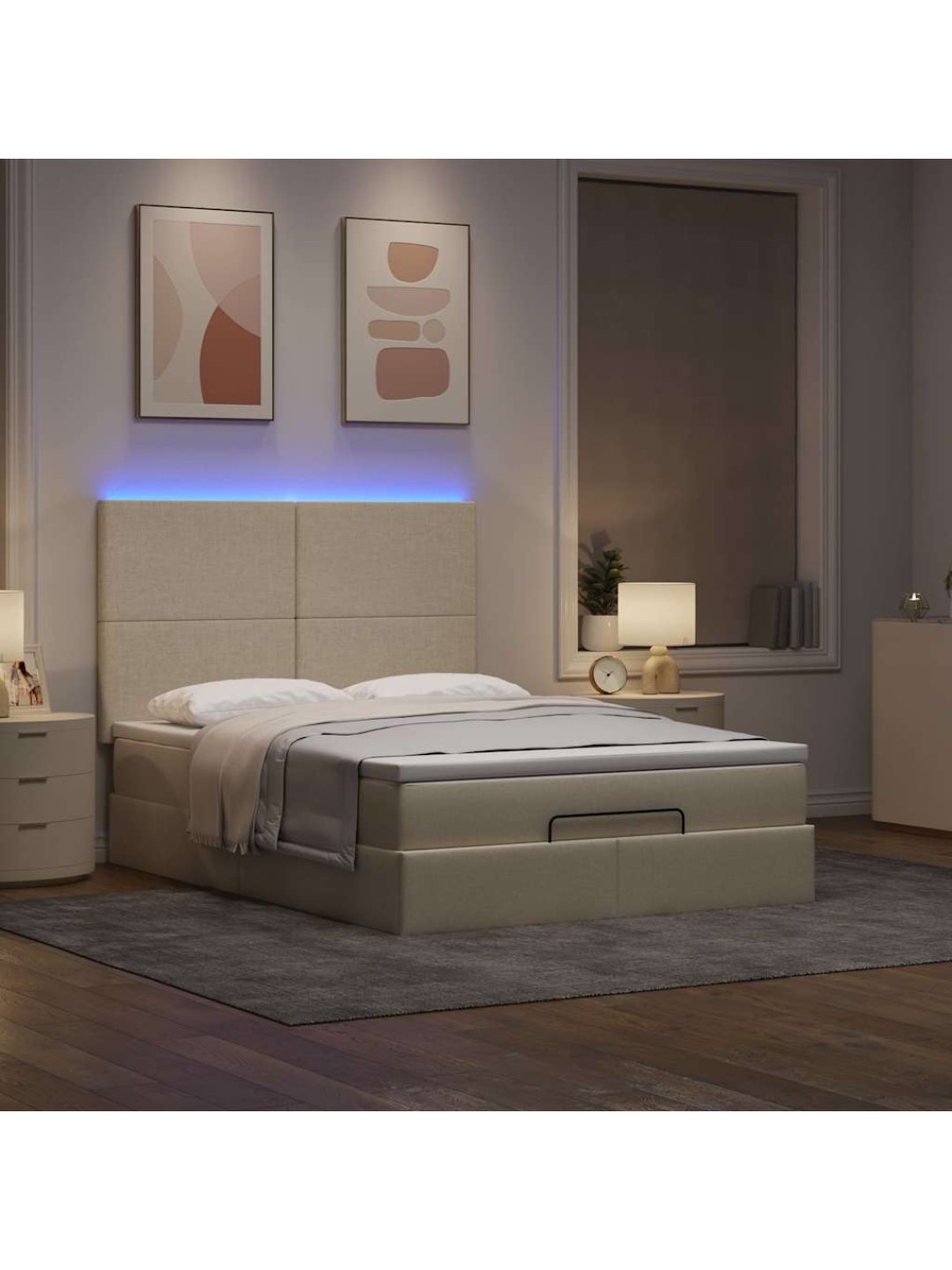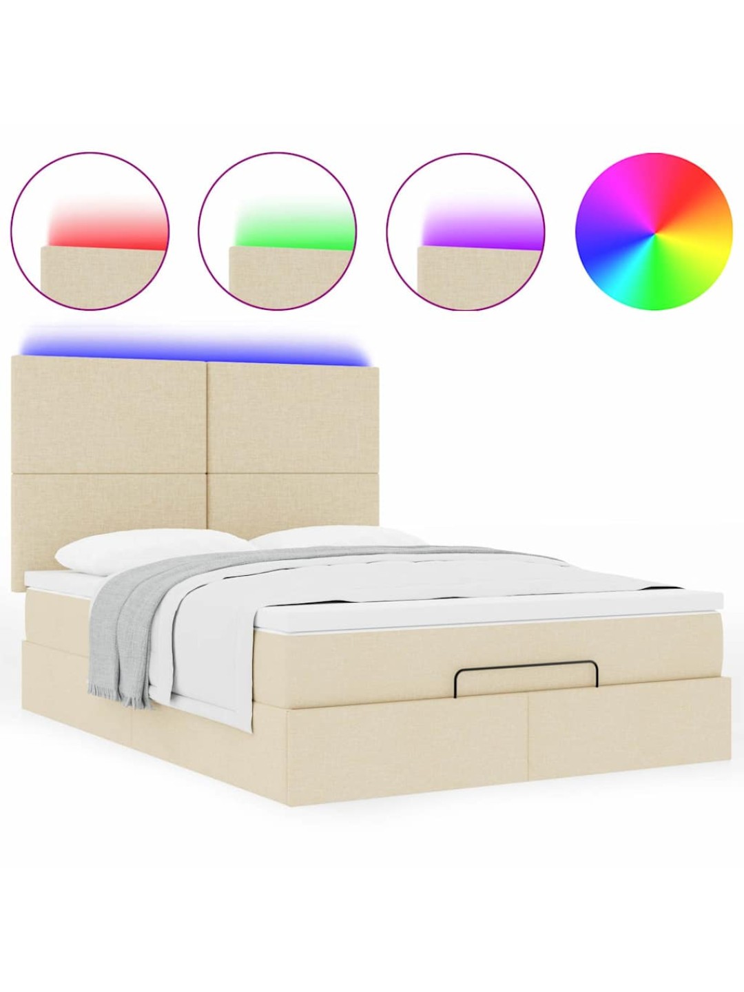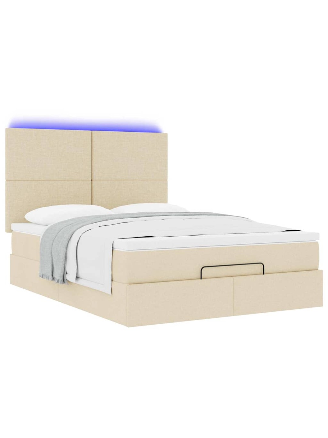 OTTOMANI VOODI MADRATSITA JA LED, KREEMJAS, 140X190 CM, KANGAS