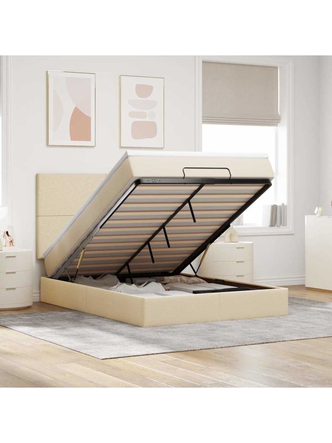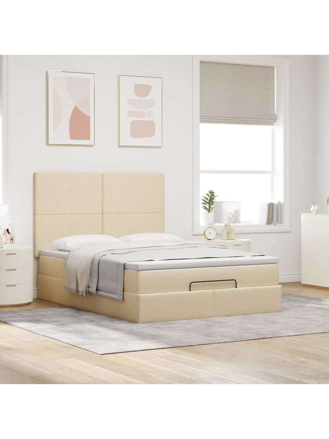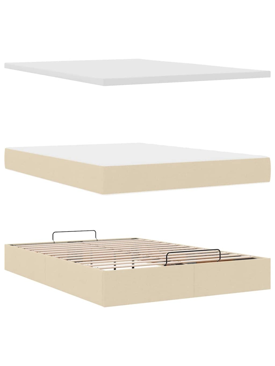 OTTOMANI VOODI MADRATSITA JA LED, KREEMJAS, 140X190 CM, KANGAS