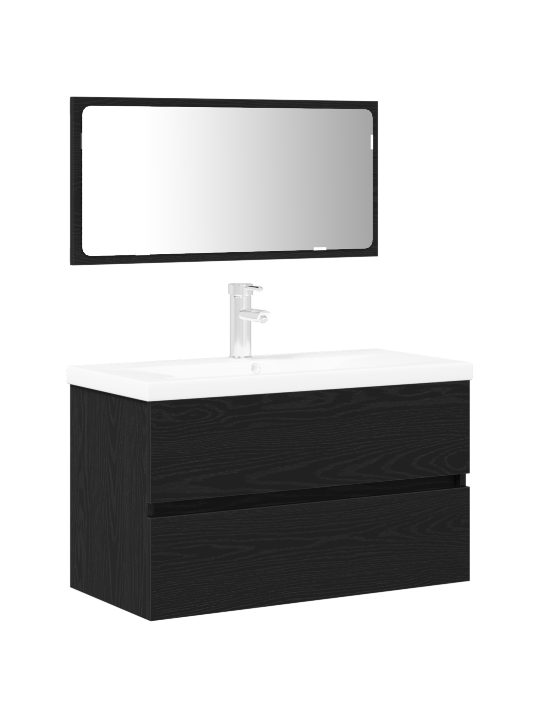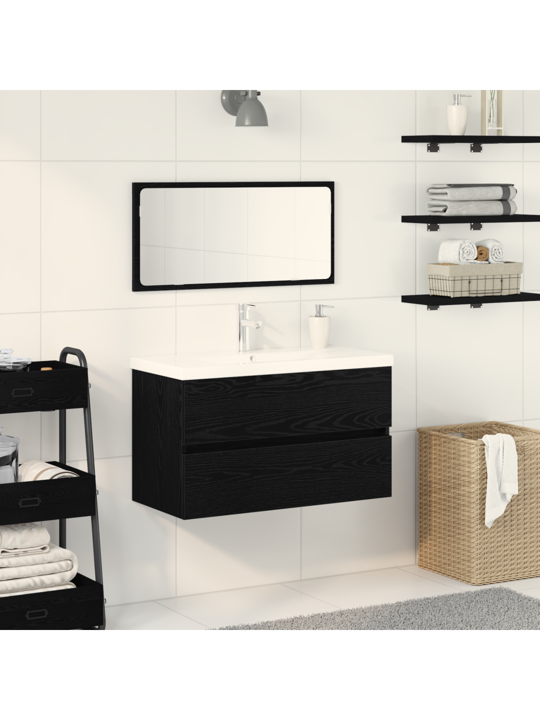 3-osaline vannitoamööbli komplekt mustast tammest töödeldud puidust