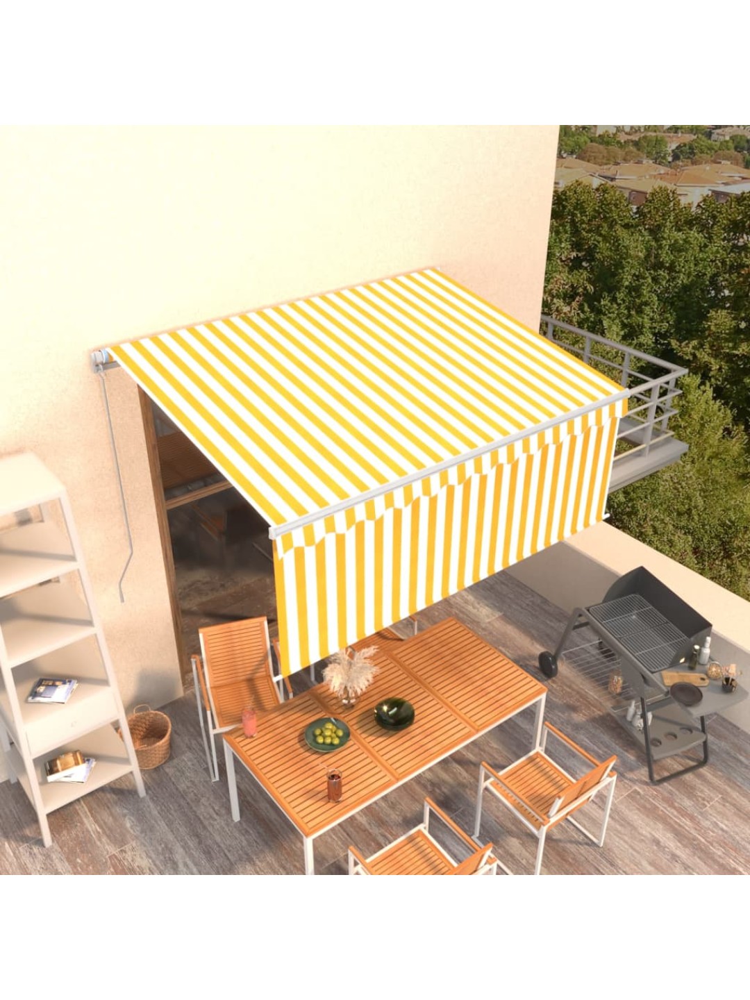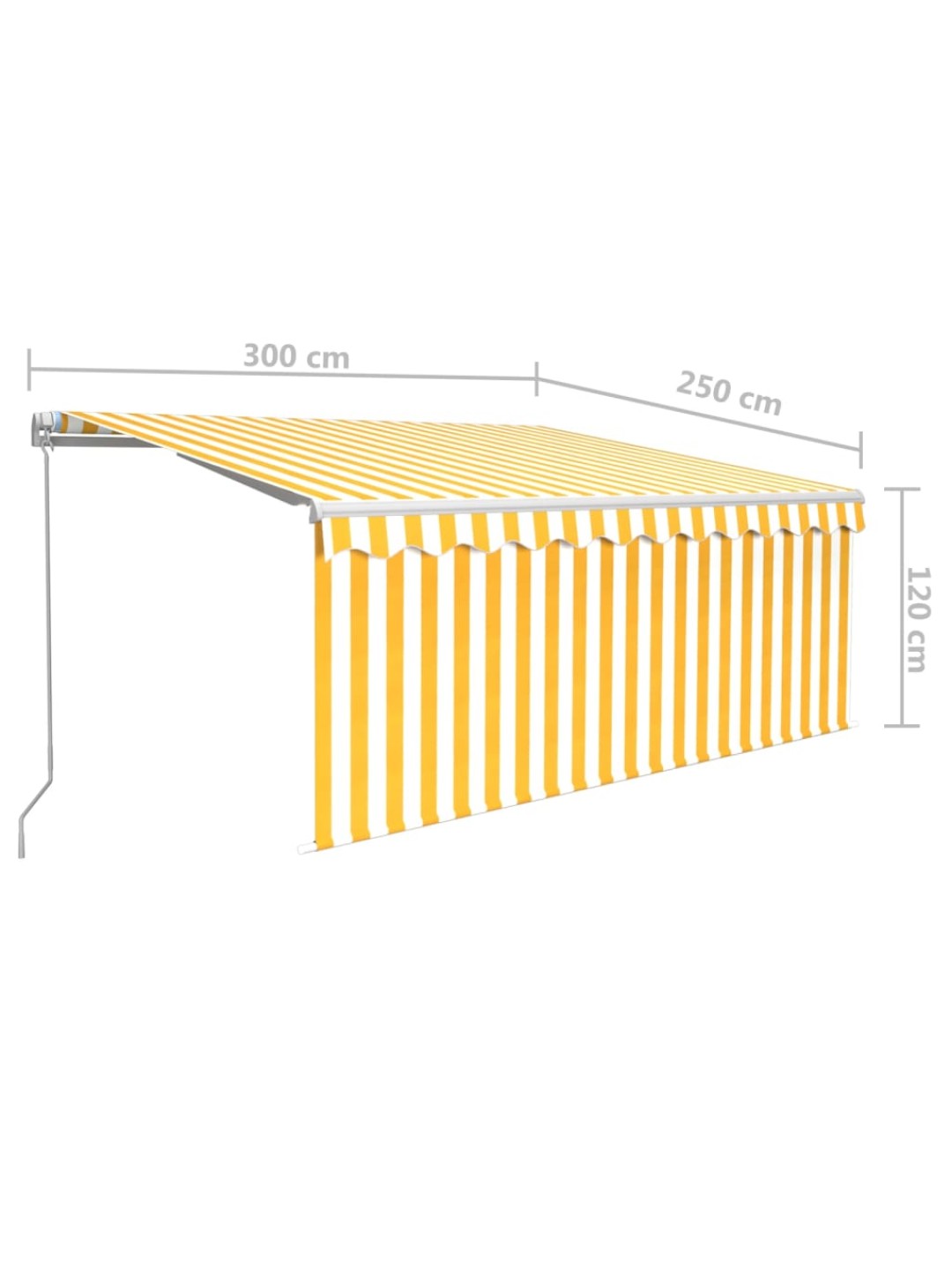 Käsitsi sissetõmmatav varikatus rulooga, 3x2,5 m, kollane/valge