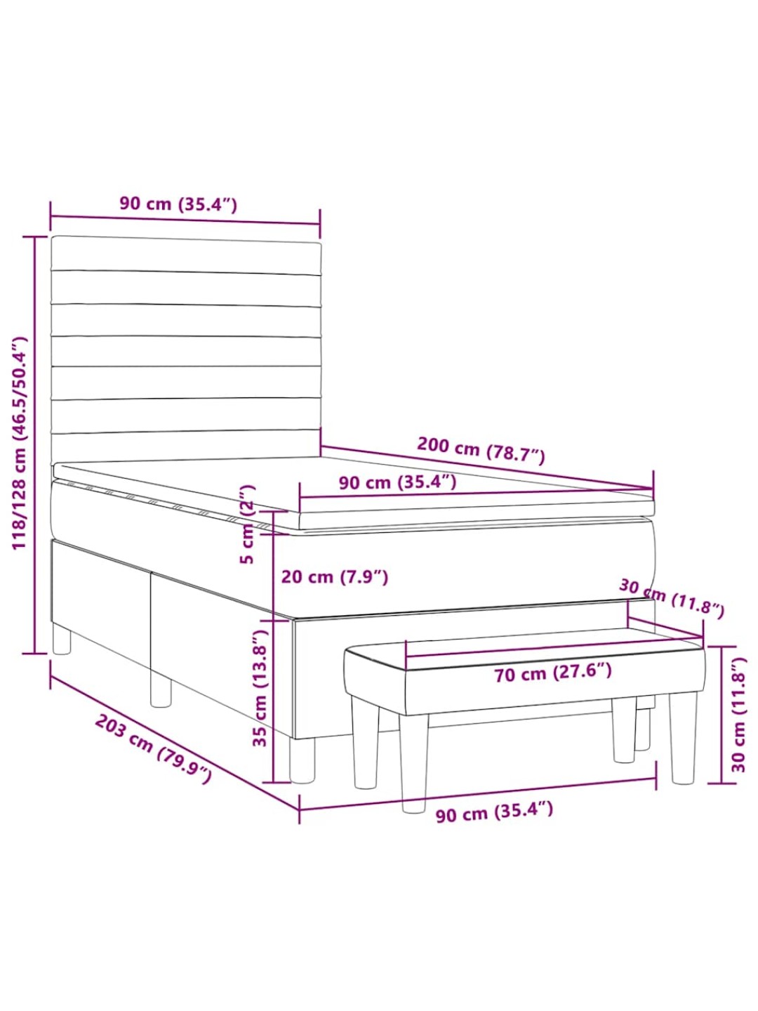 Kontinentaalvoodi madratsiga, tumepruun, 90x200 cm, kangas