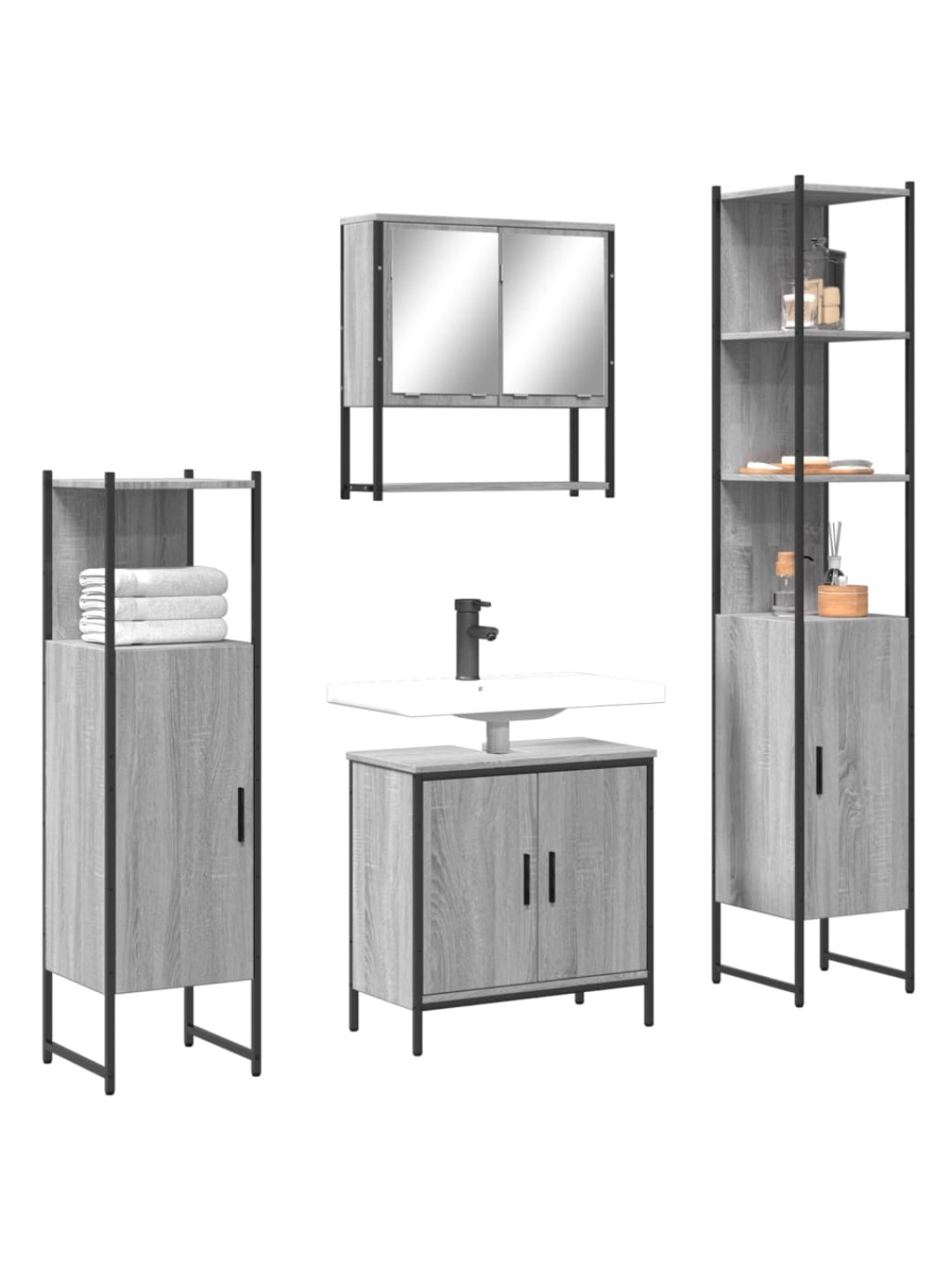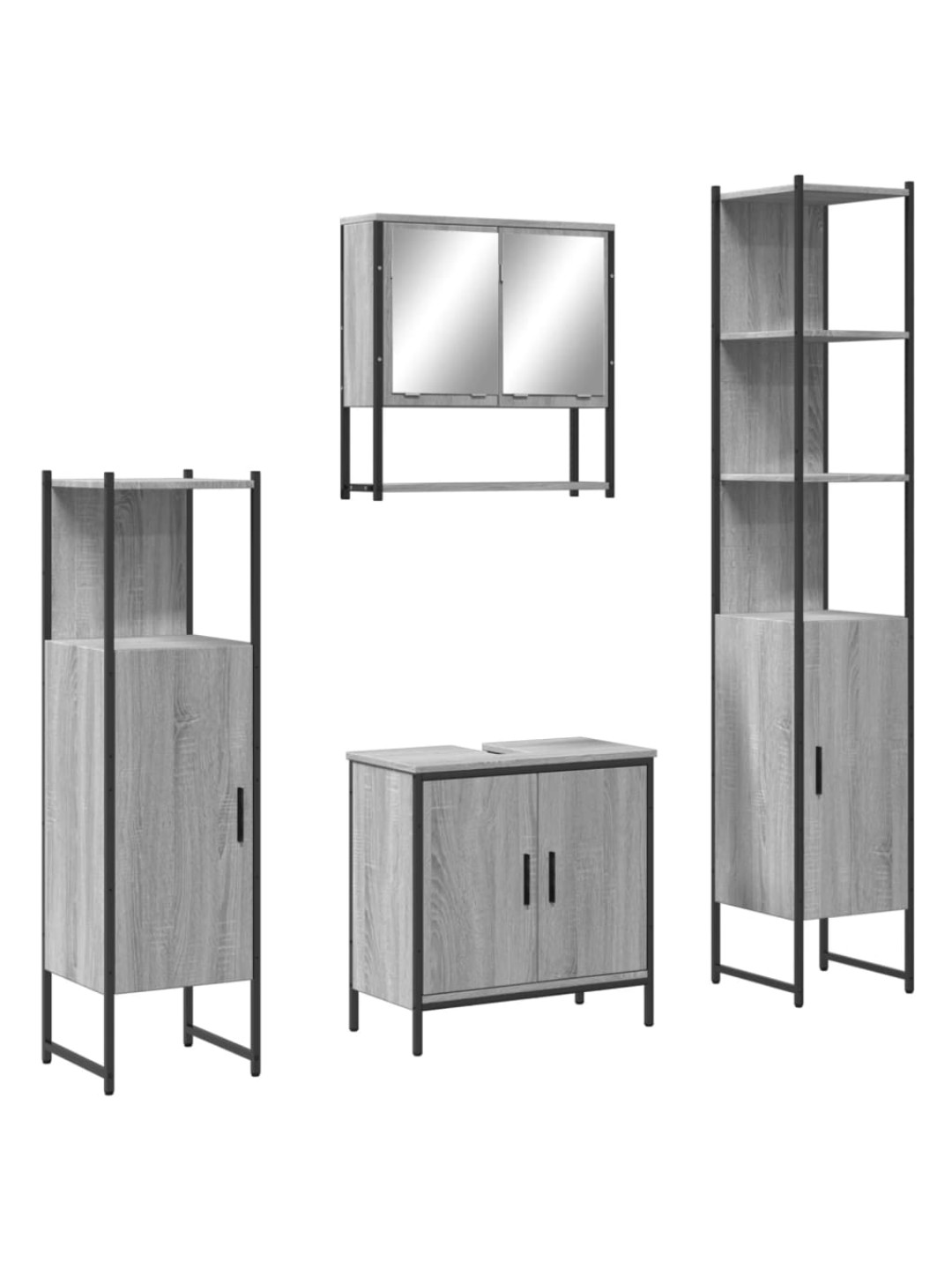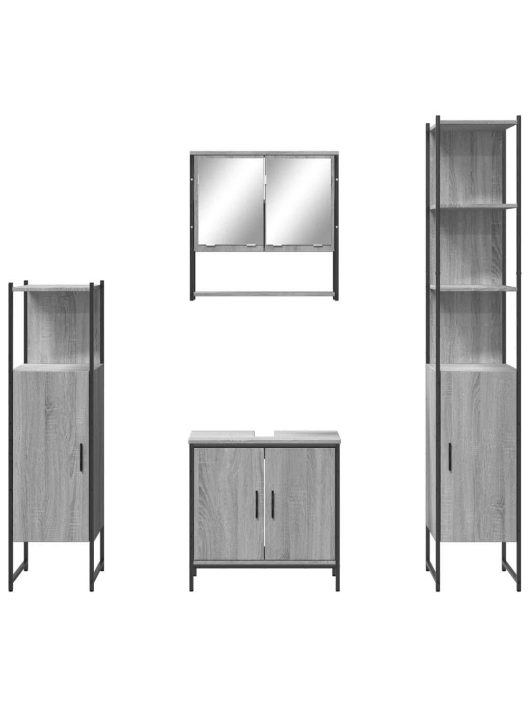4-osaline vannitoamööbli komplekt, hall sonoma tamm, tehispuit