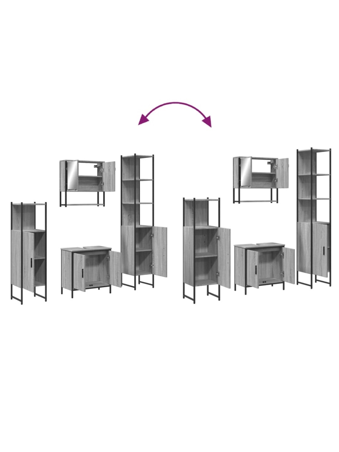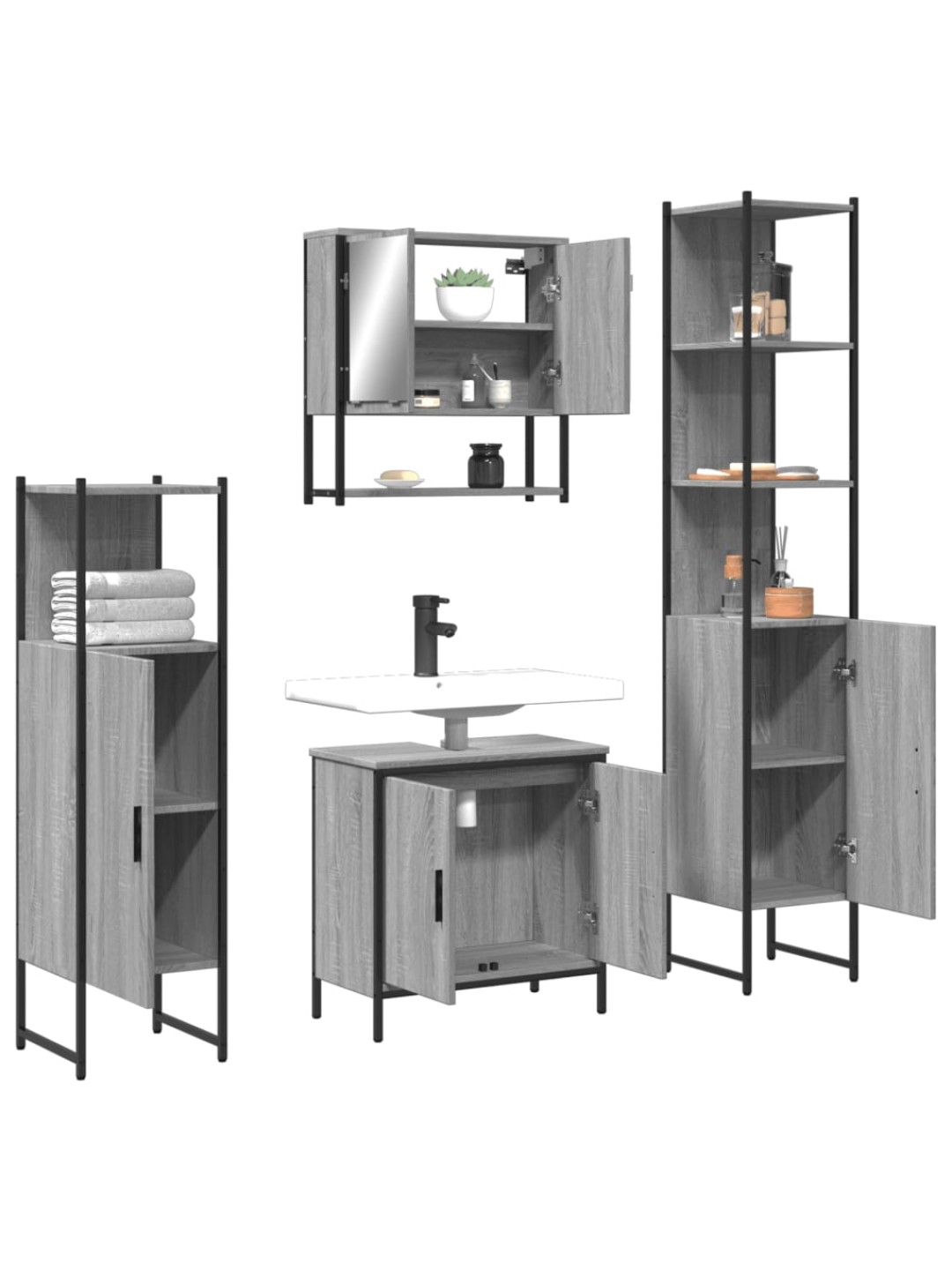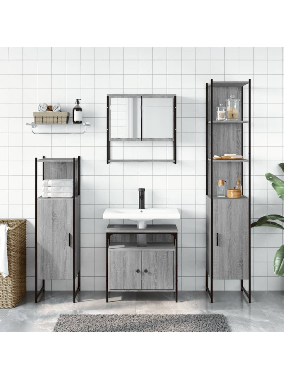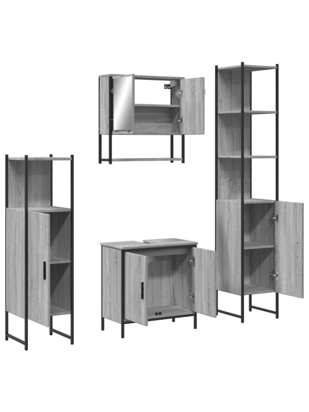 4-osaline vannitoamööbli komplekt, hall sonoma tamm, tehispuit
