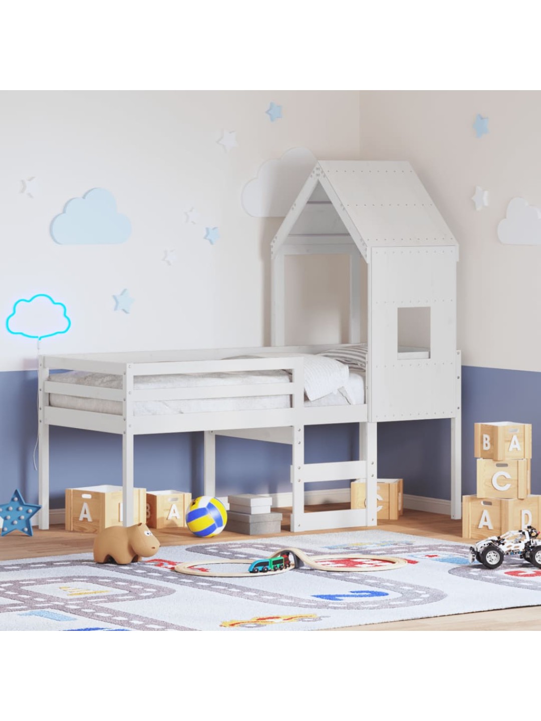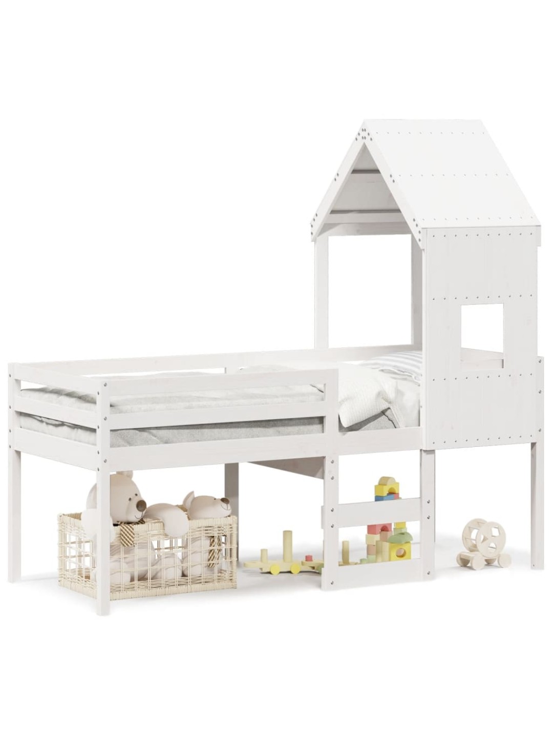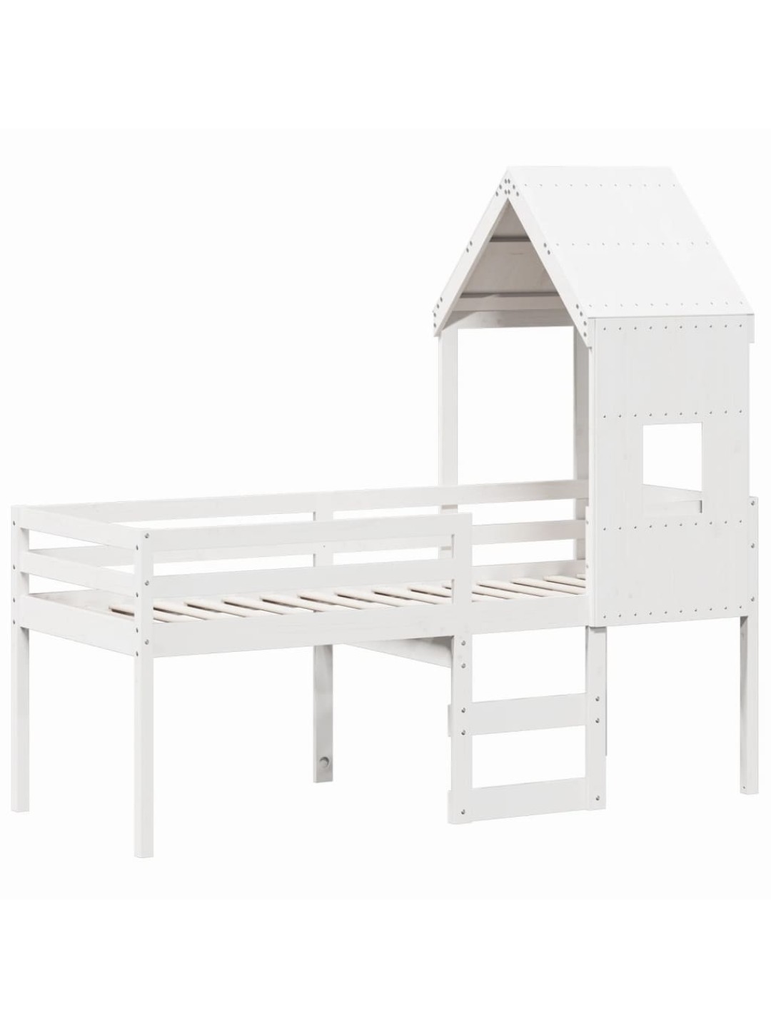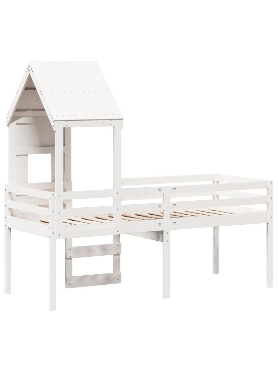 Kõrge voodi, katusega, valge, 80 x 200 cm, männipuit