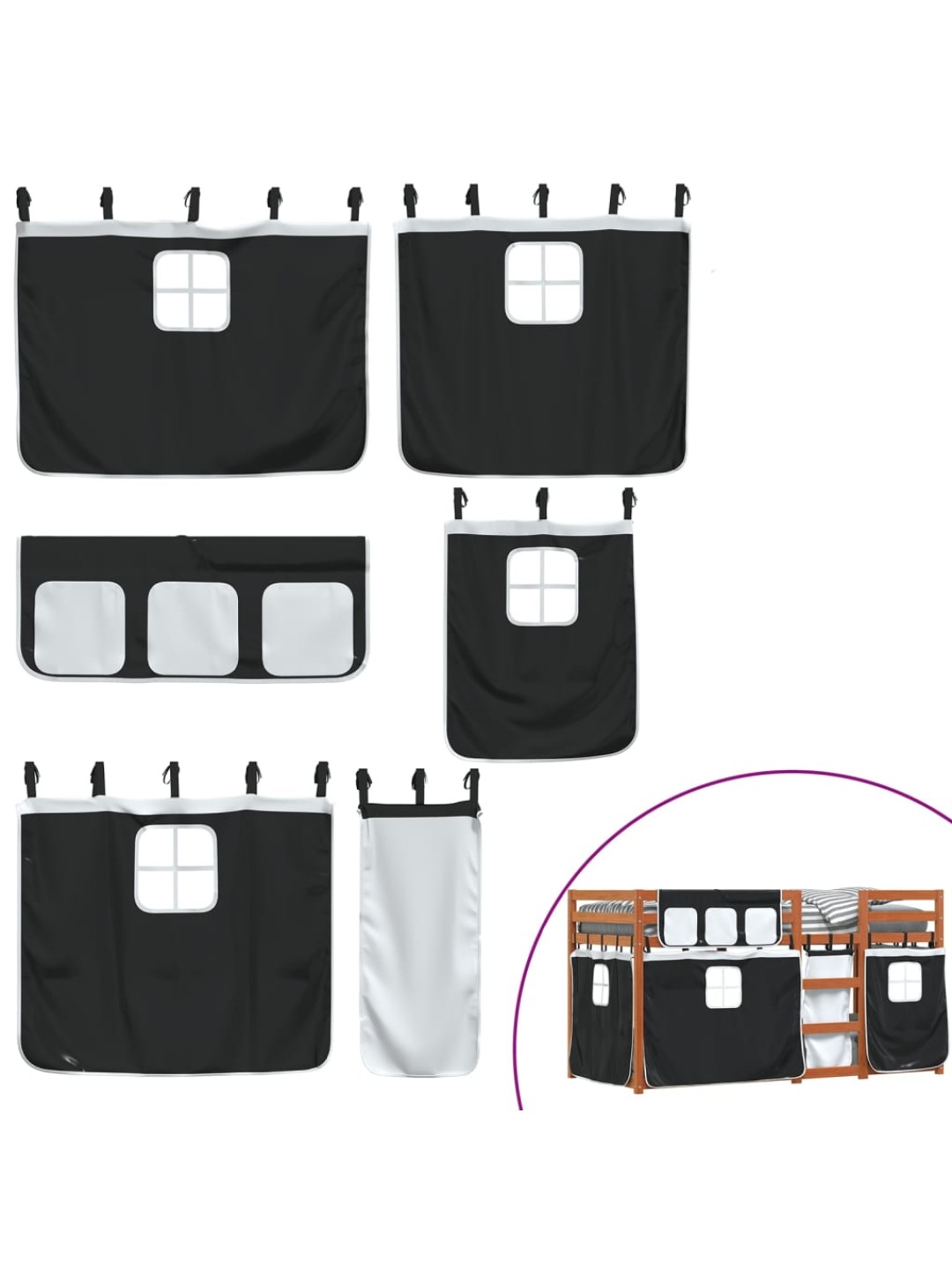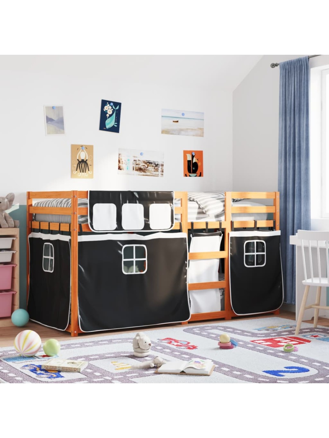 Narivoodi kardinatega, valge/must, 90x190 cm, männipuit