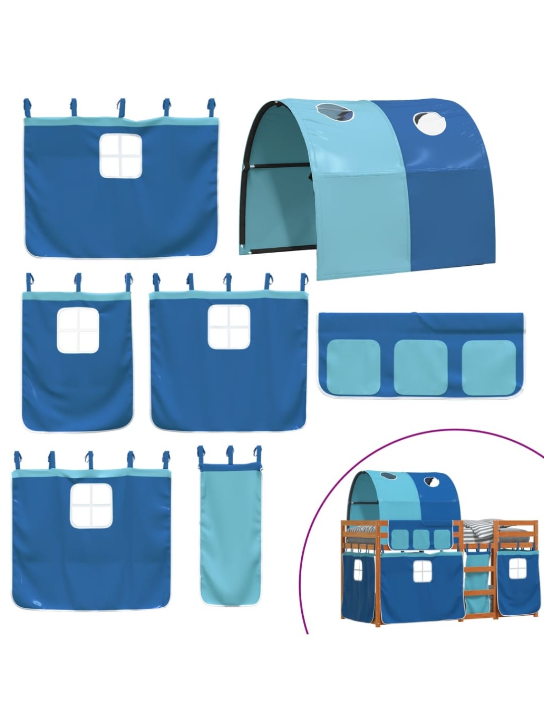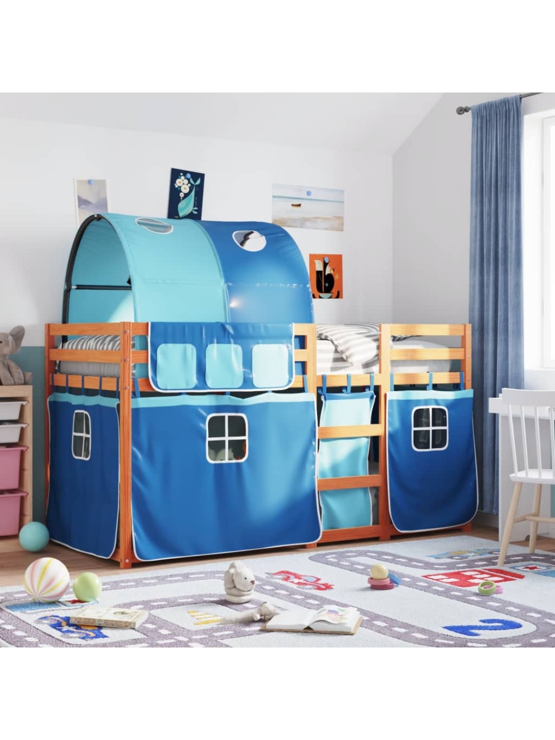 Narivoodi kardinatega, sinine, 90x190 cm, männipuit