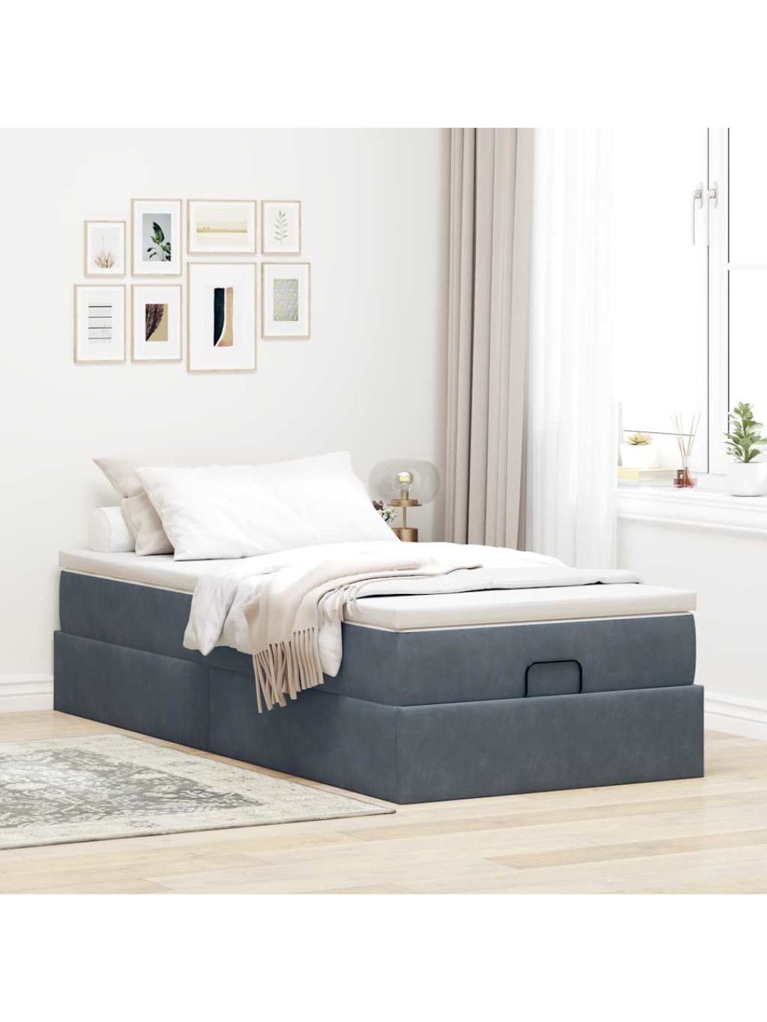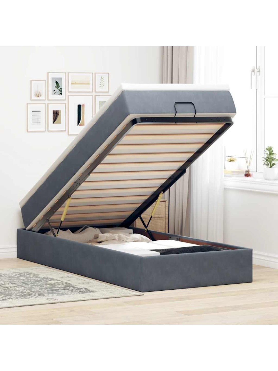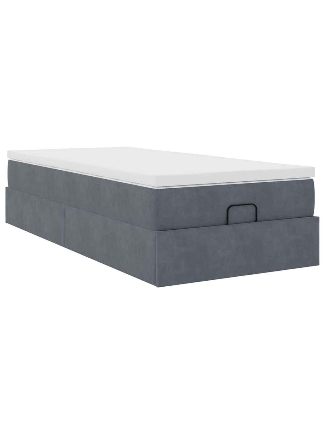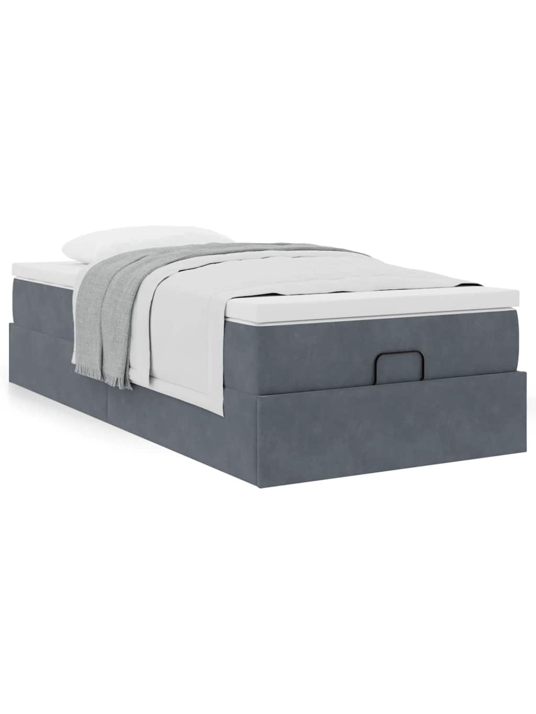 Ottomani voodiraam madratsiga, tumehall, 80x200cm, samet