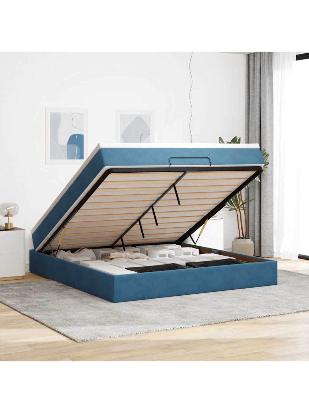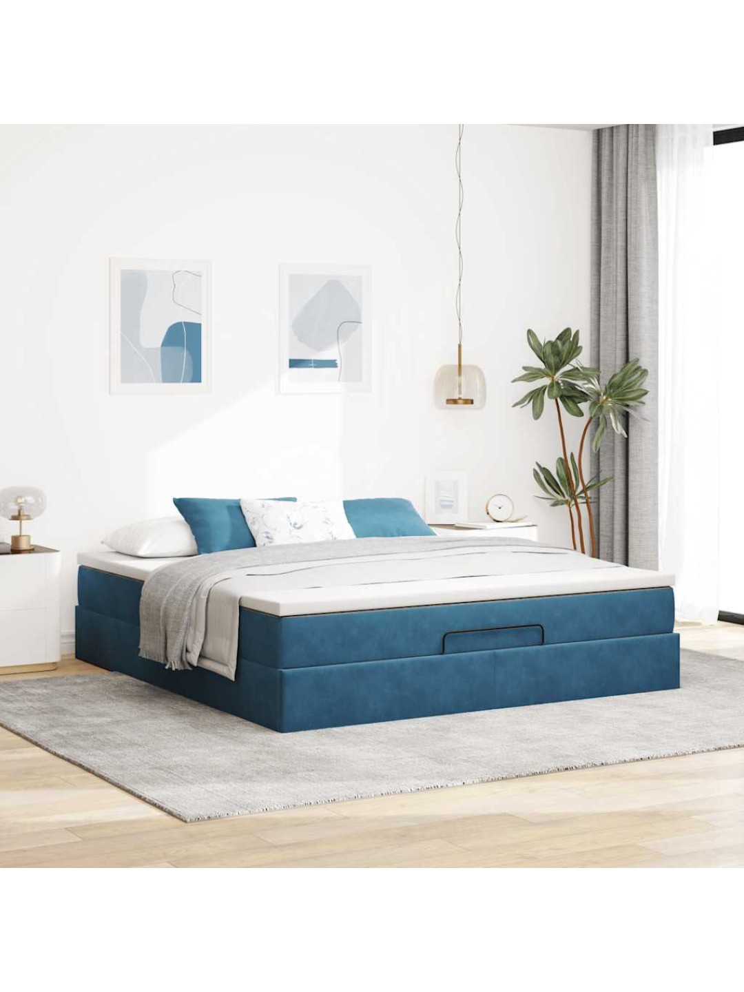 Ottomani voodi madratsiga, tumesinine, 180x200 cm, samet