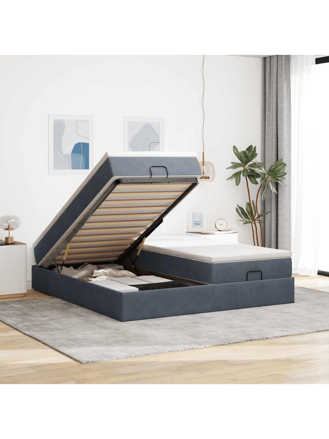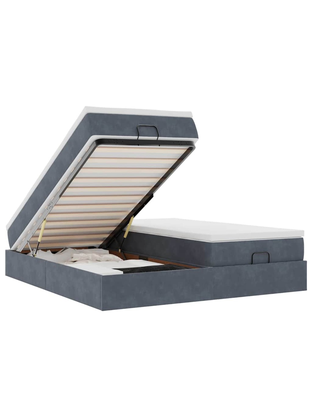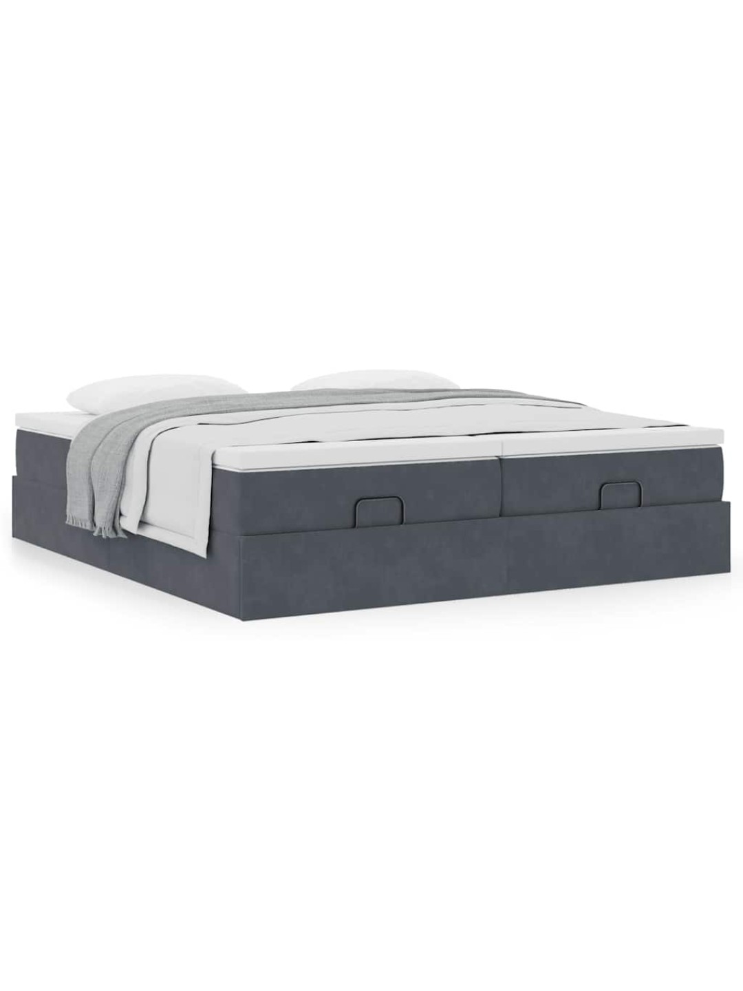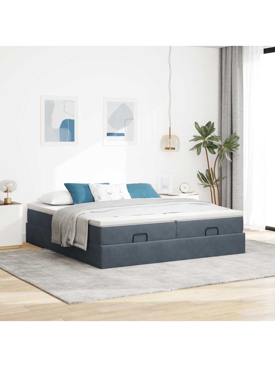 Ottomani voodiraam madratsitega, tumehall, 160x200 cm, samet