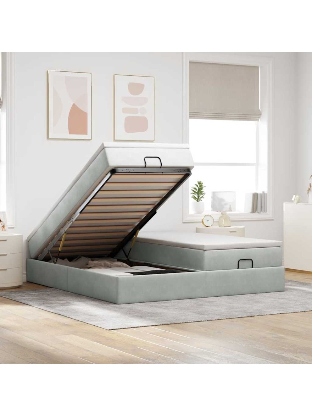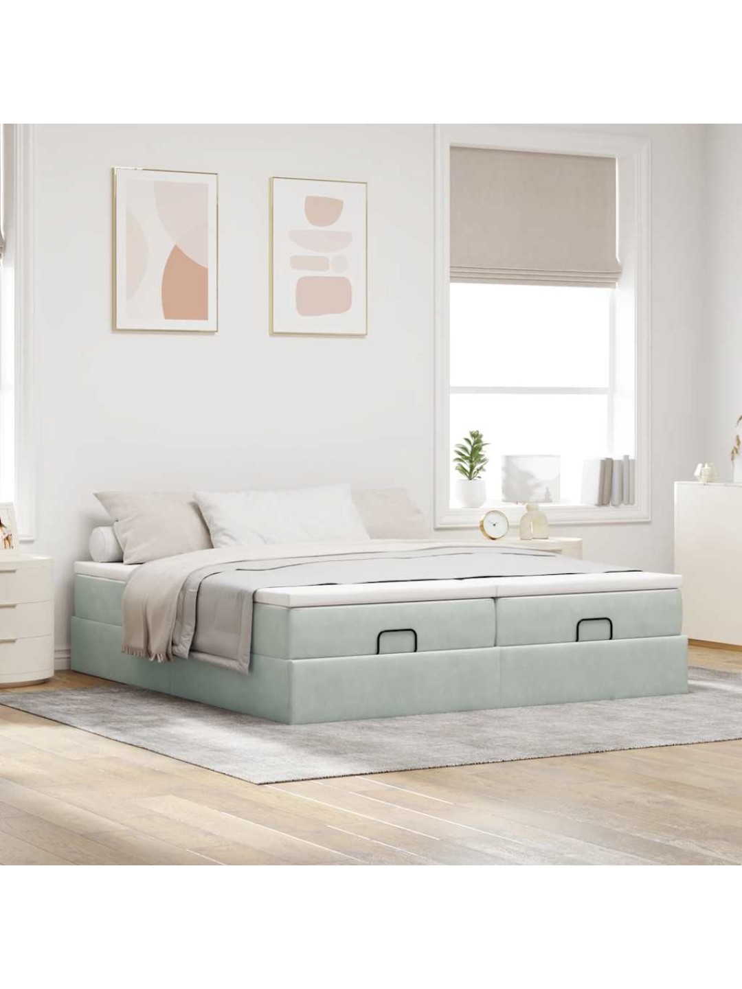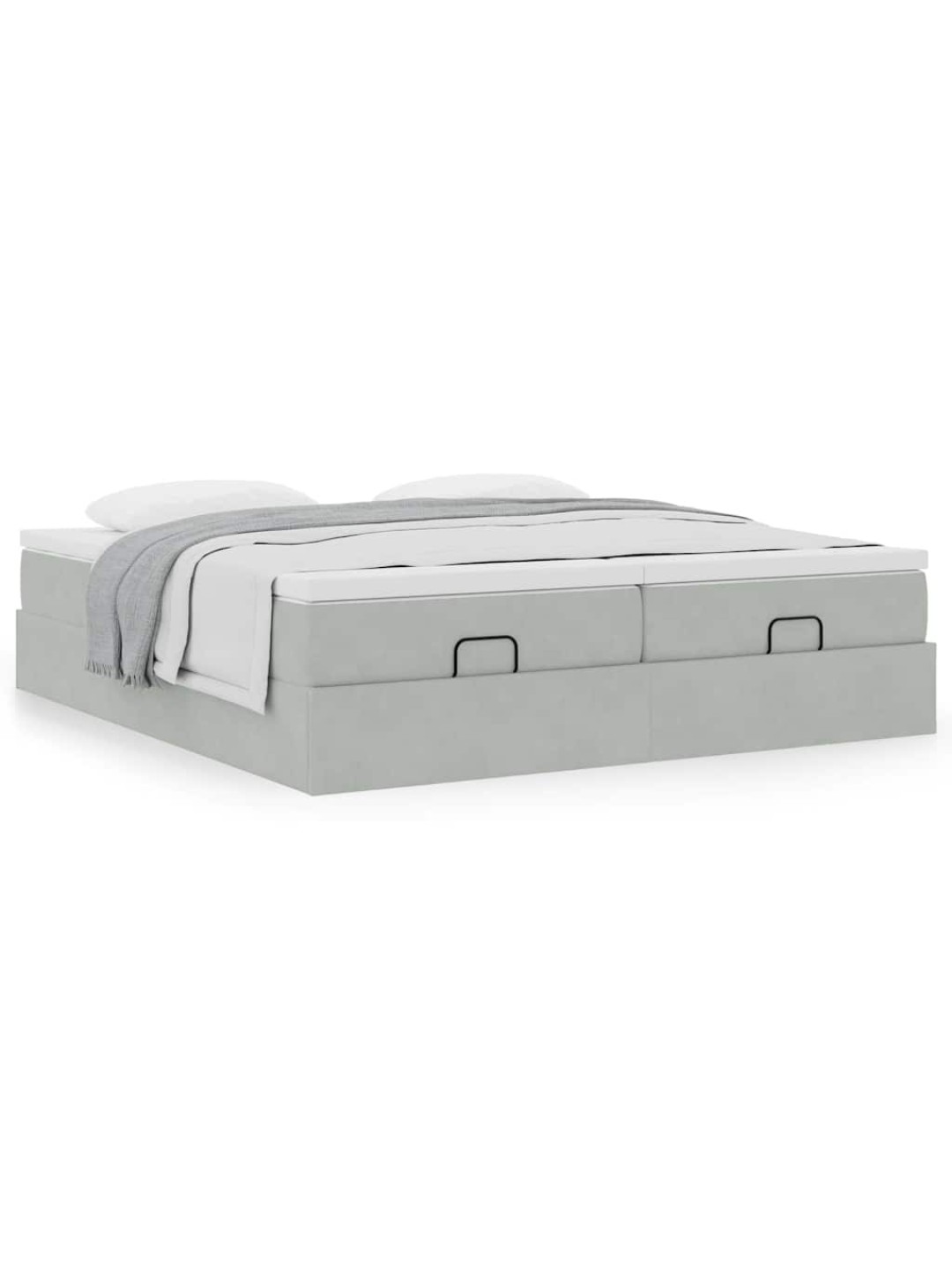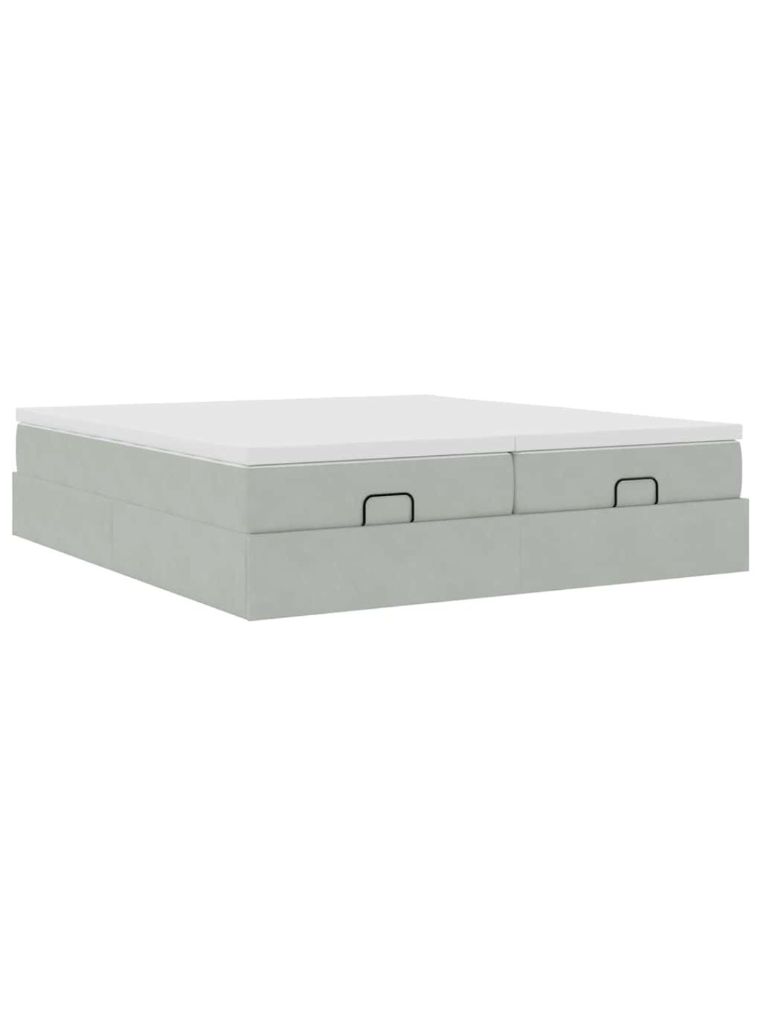 Ottomani voodiraam madratsitega, helehall, 200x200 cm, samet