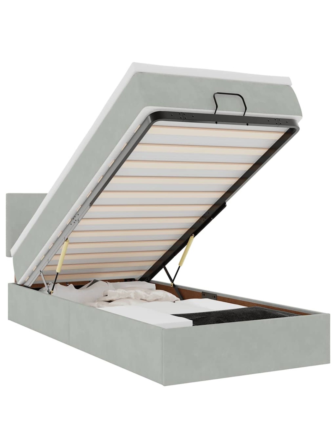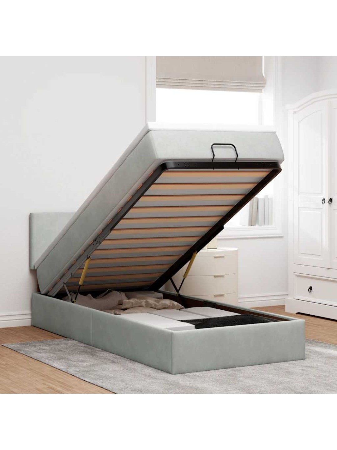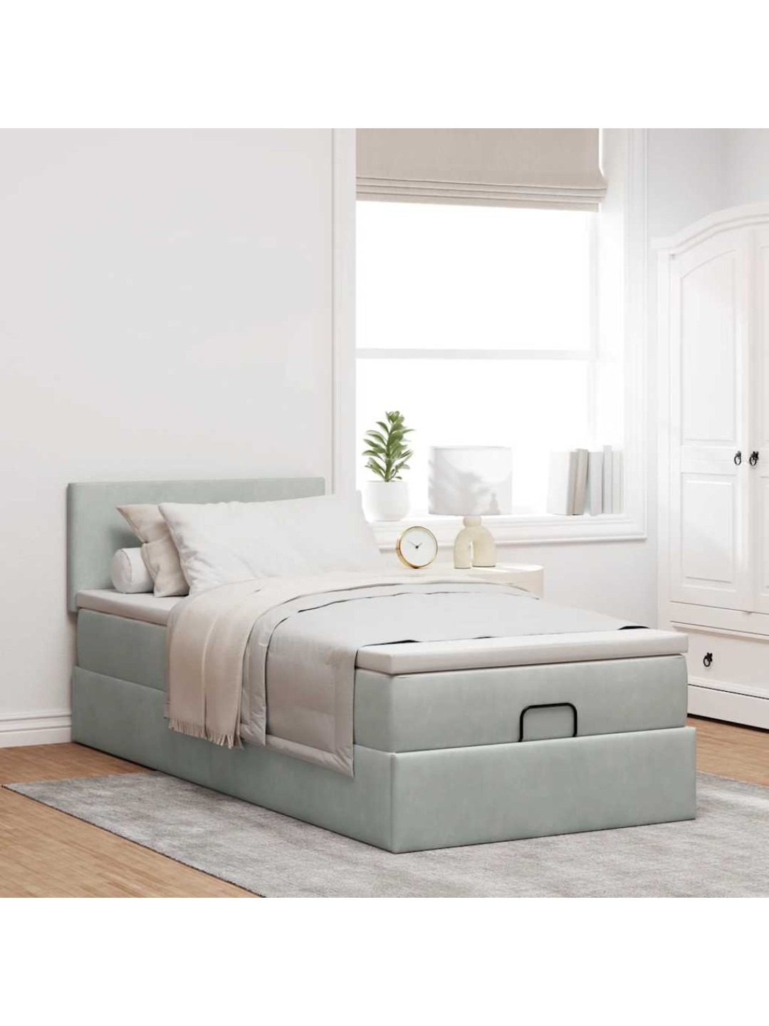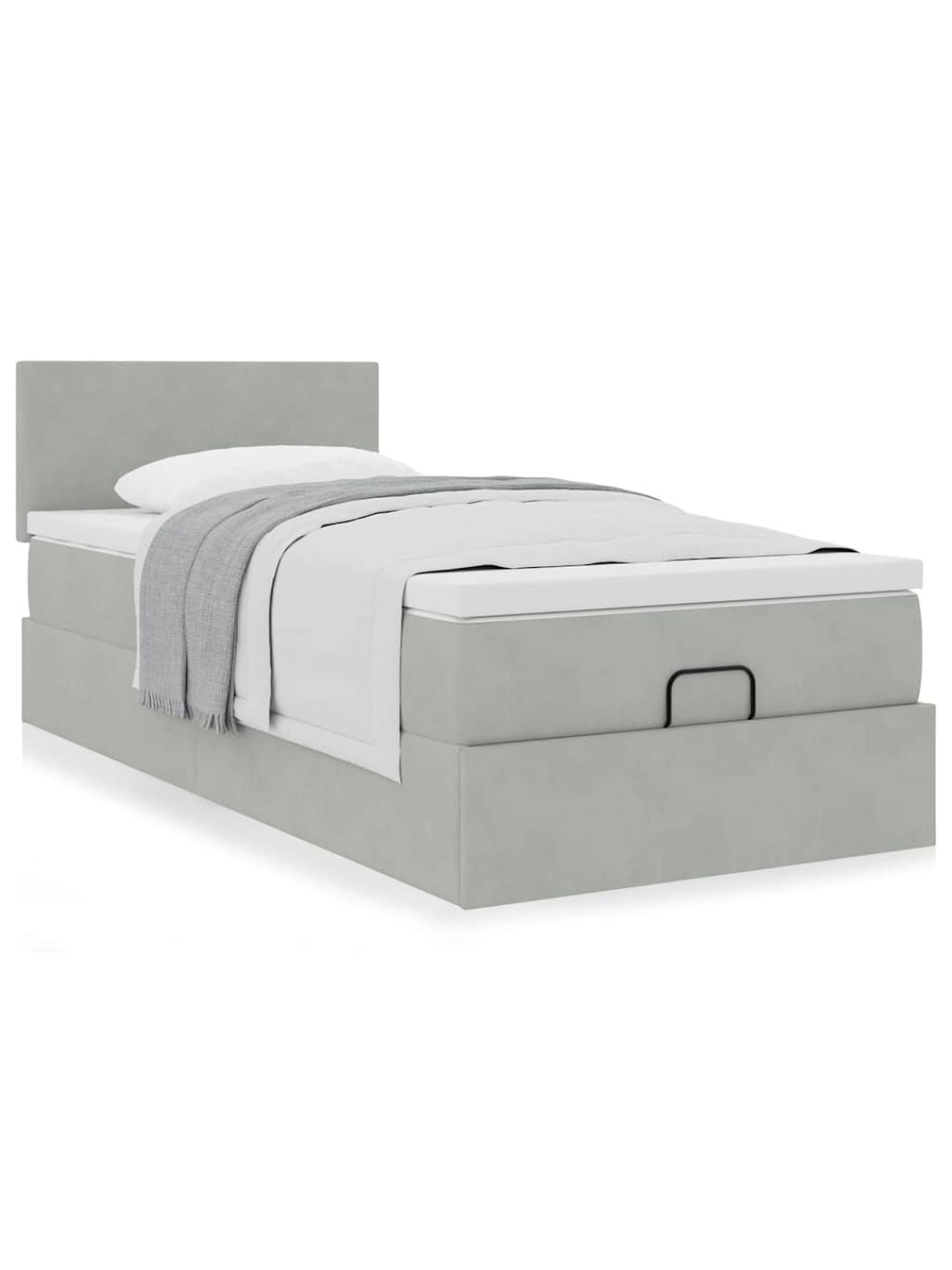 Ottomani voodiraam madratsiga, helehall, 80x200 cm, samet
