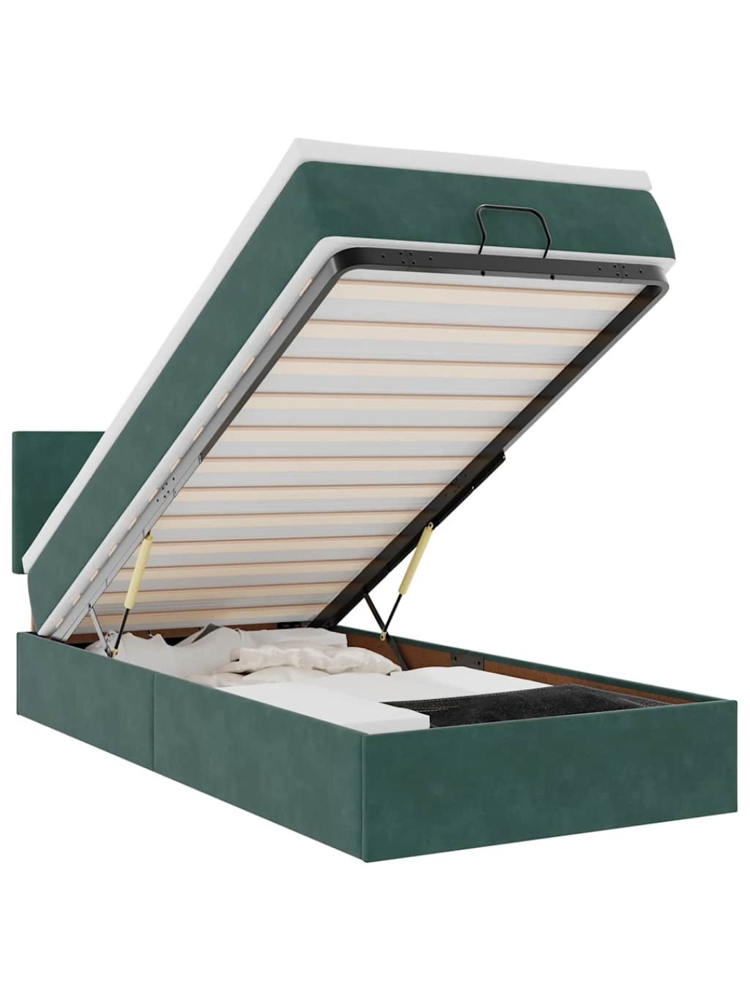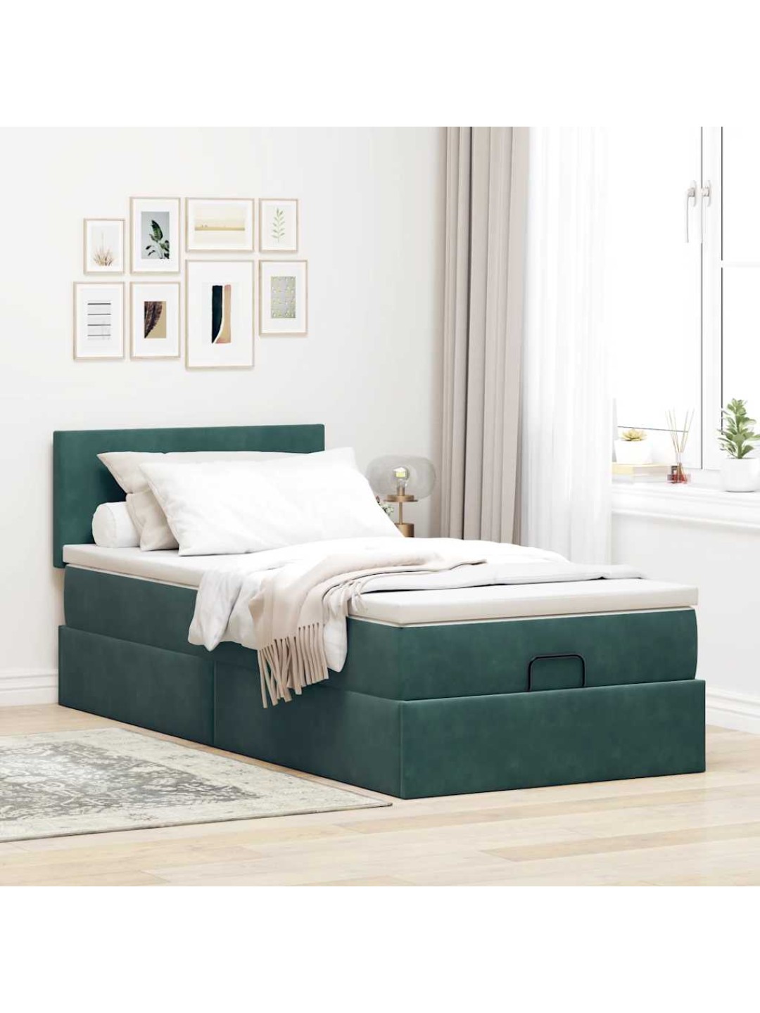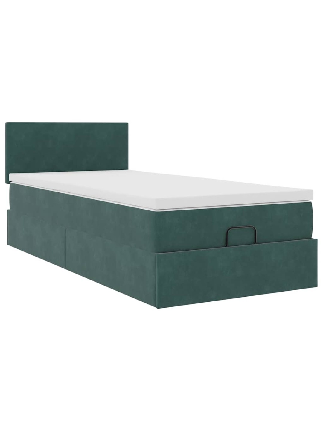 Ottomani voodiraam madratsiga, tumeroheline, 90x200cm, samet