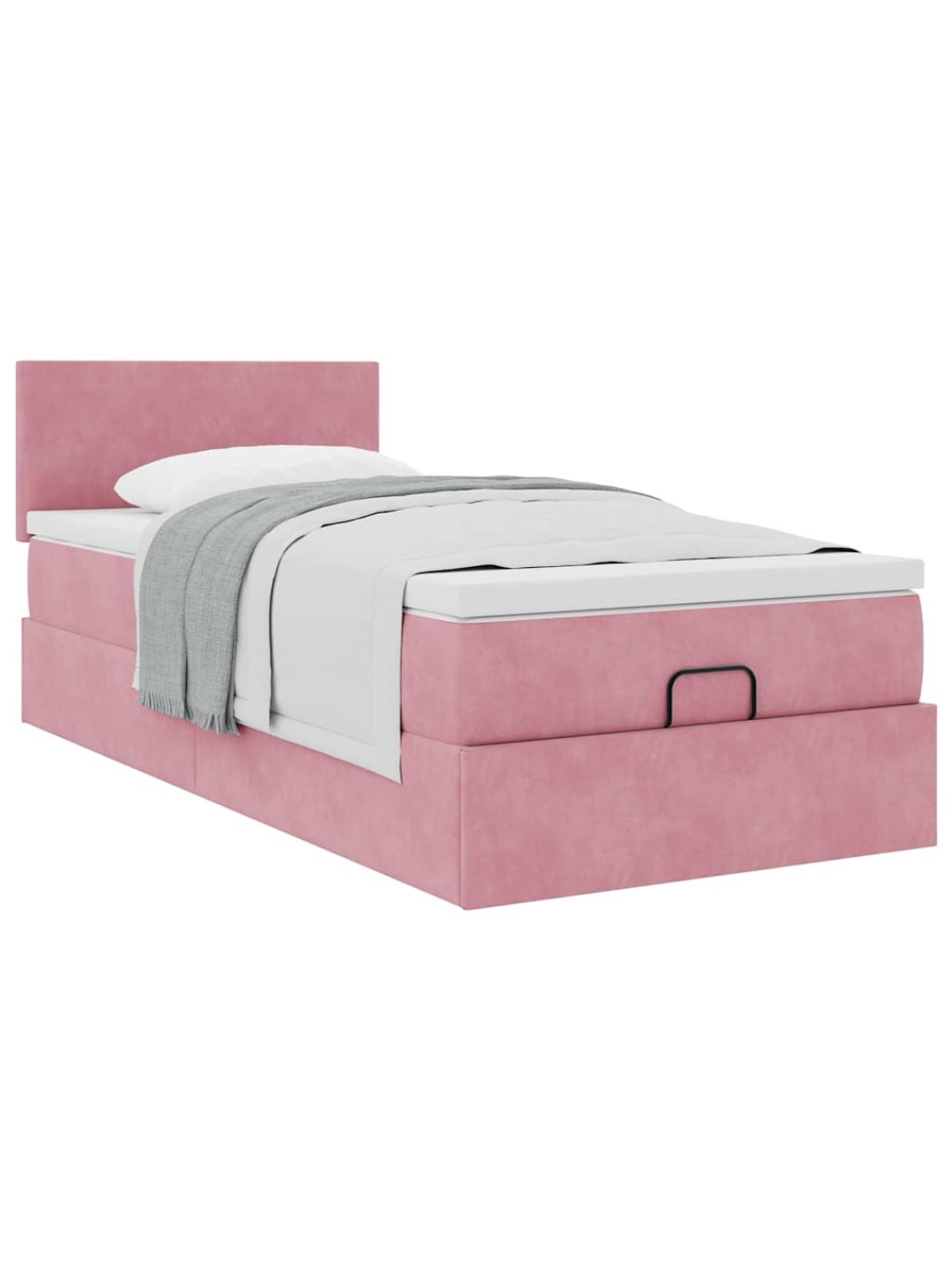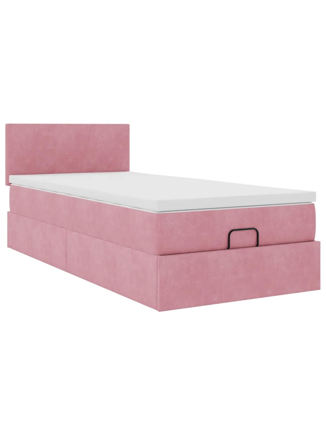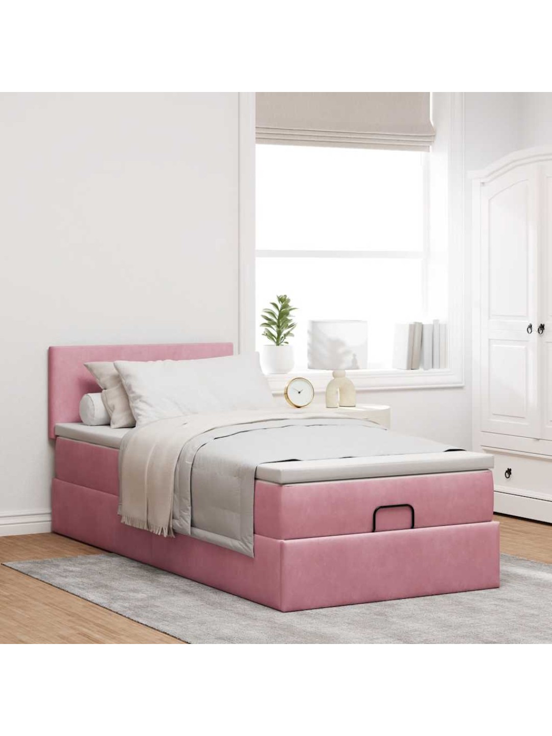 Ottomani voodiraam madratsiga, roosa, 100x200cm, samet