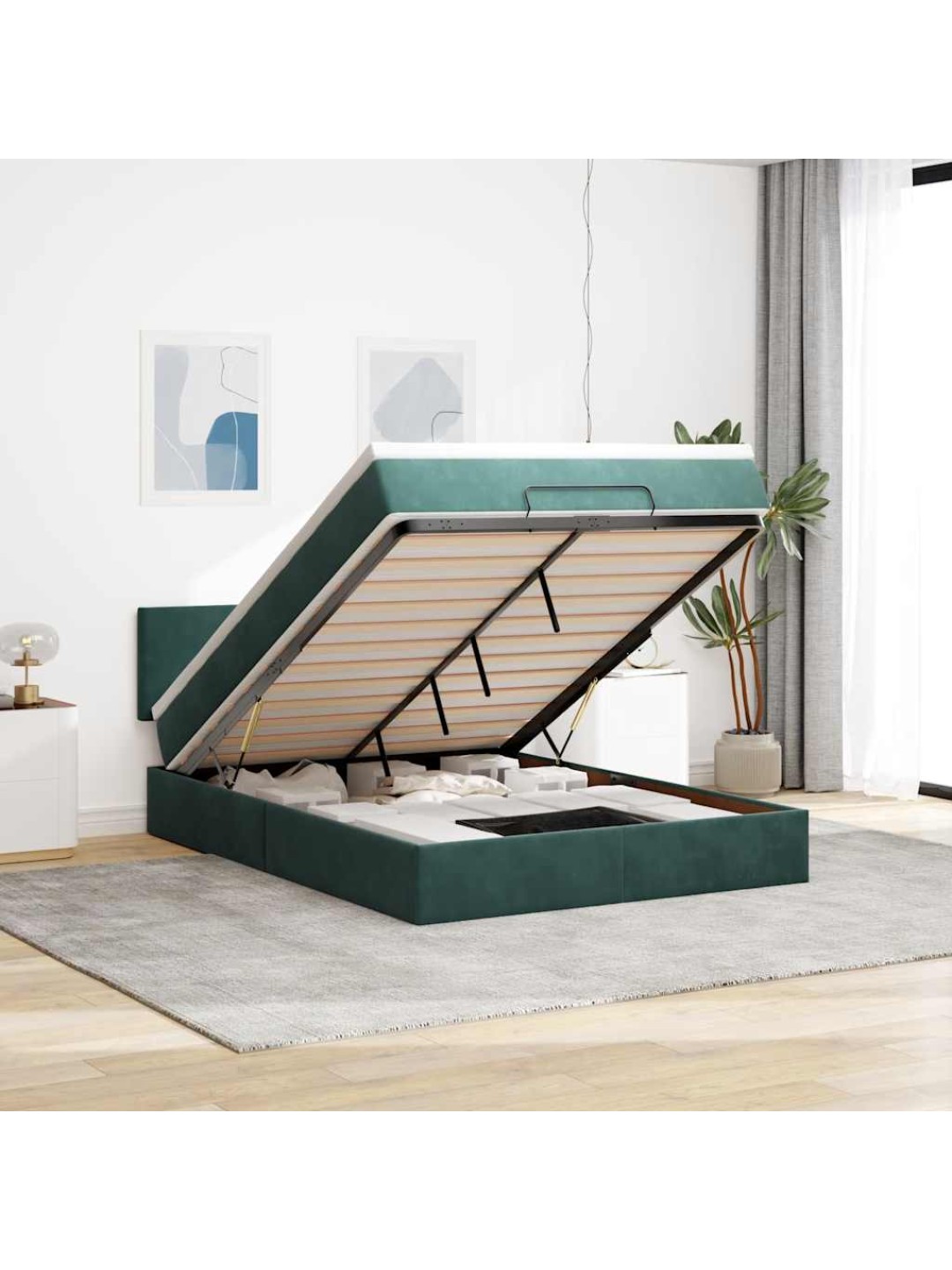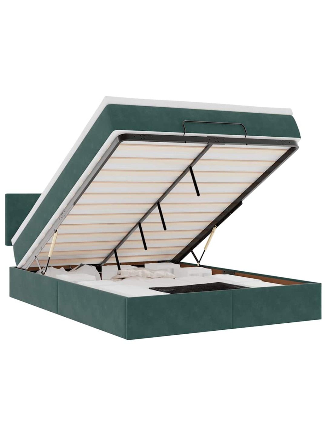 Ottomani voodi madratsiga, tumeroheline, 140x200 cm, samet