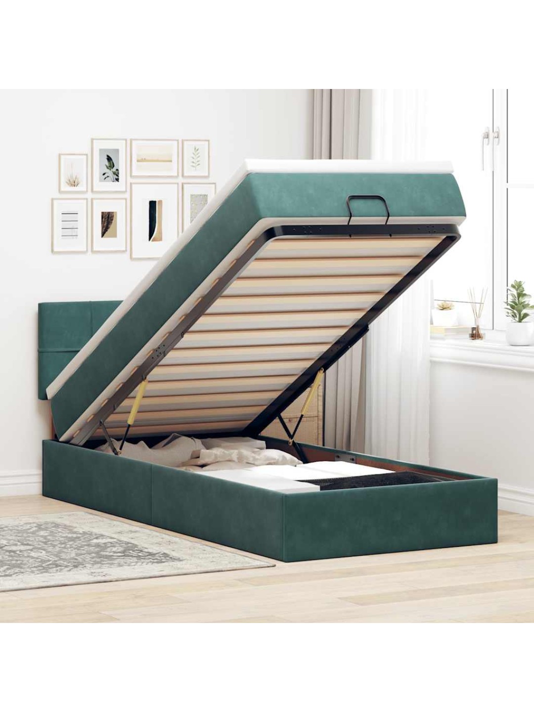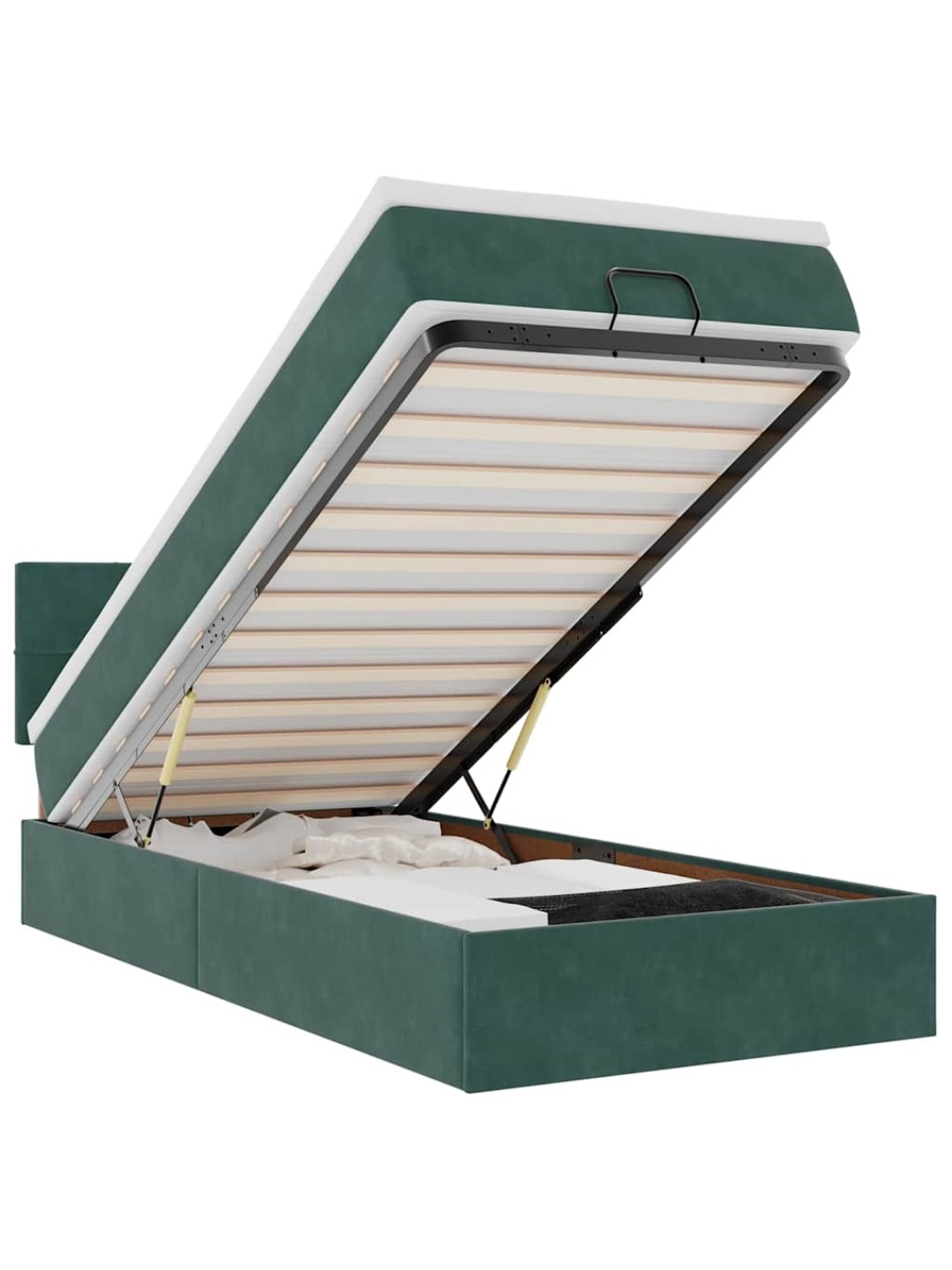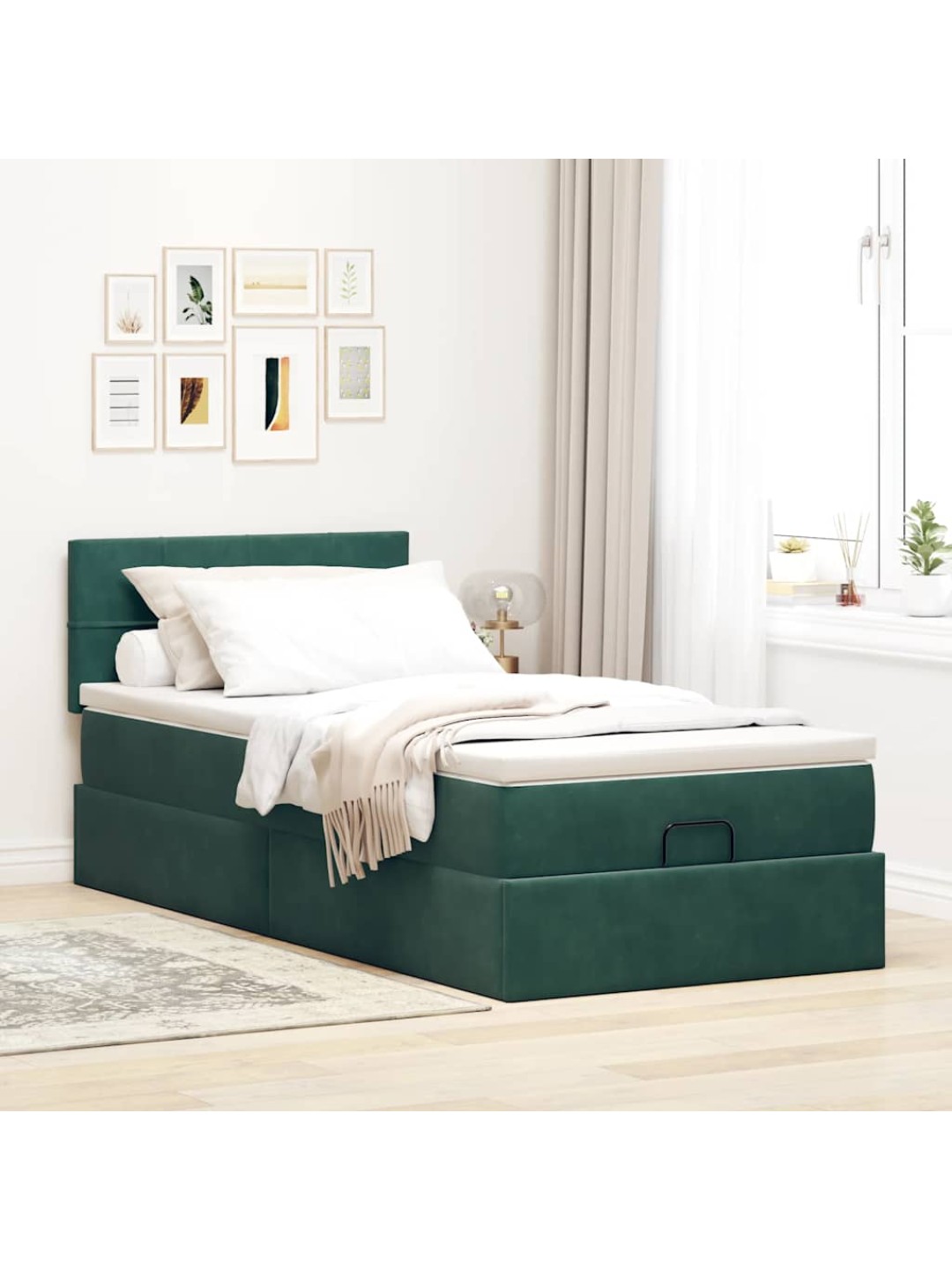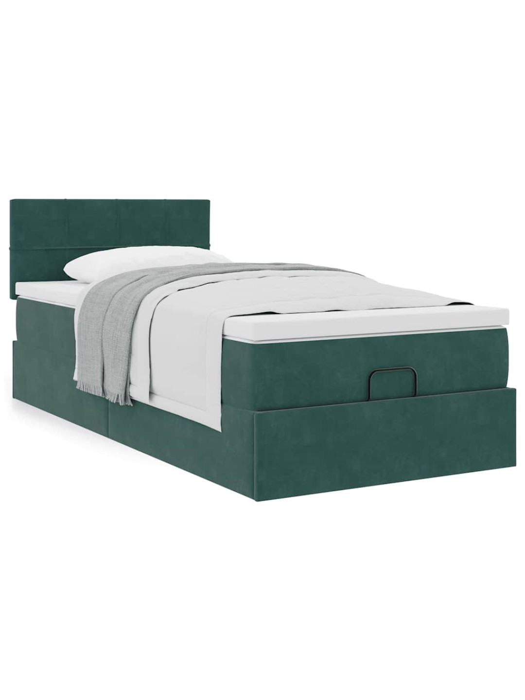 Ottomani voodiraam madratsiga, tumeroheline, 90x200cm, samet