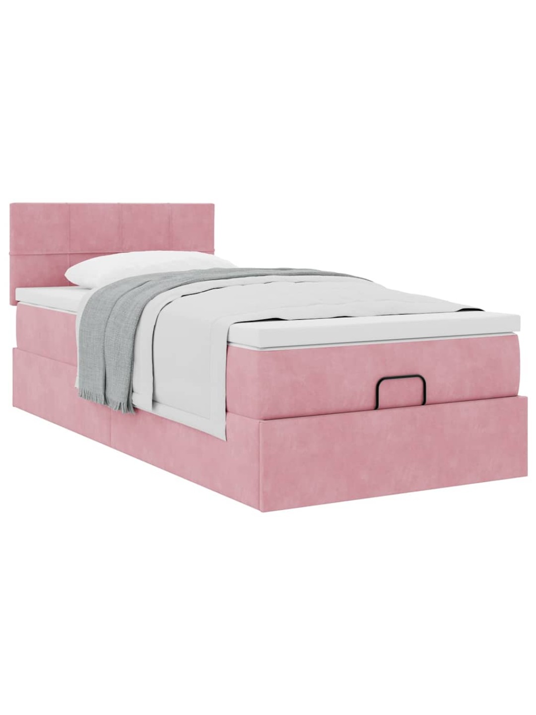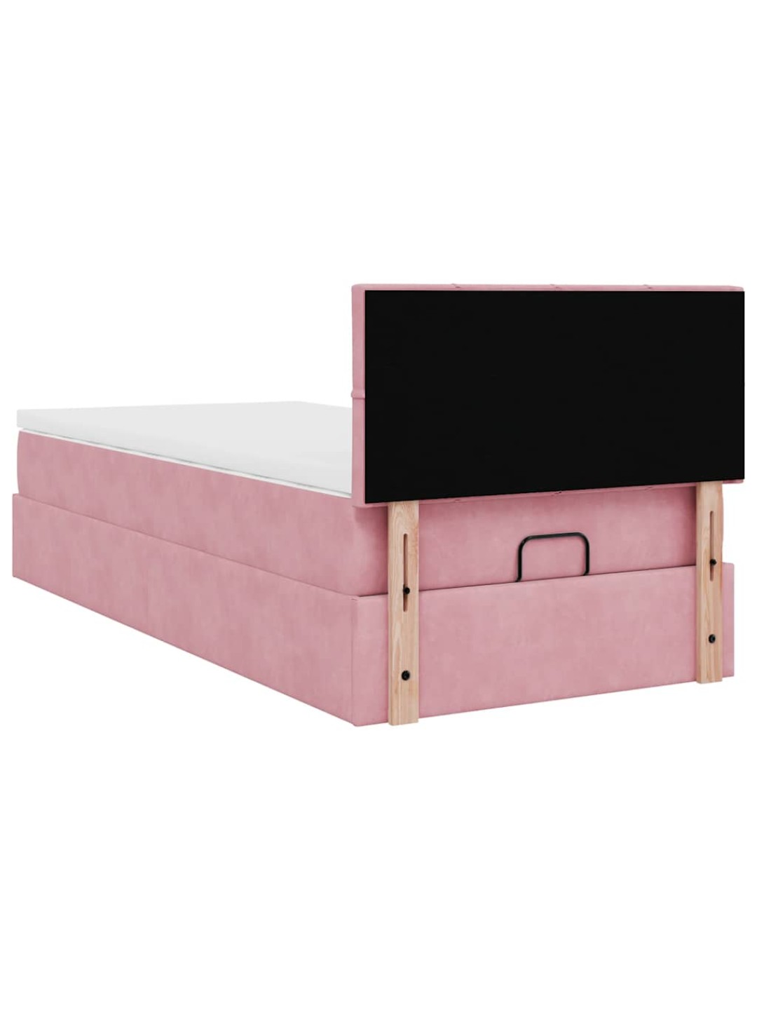 Ottomani voodiraam madratsiga, roosa, 100x200cm, samet