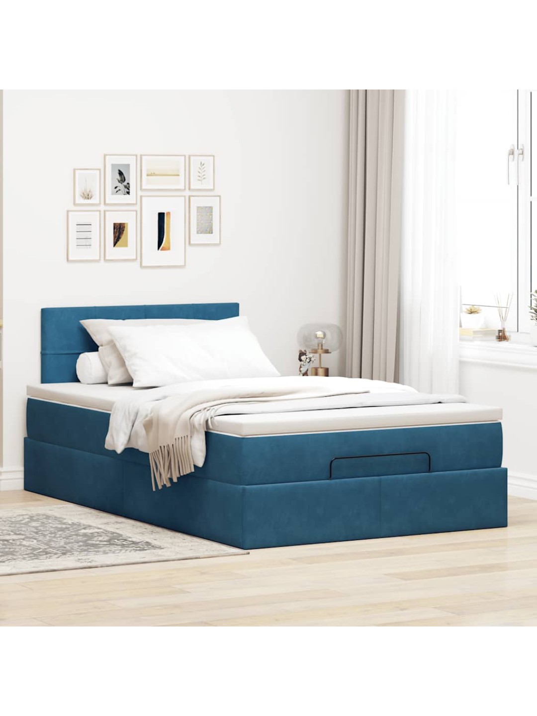 Ottomani voodi madratsiga, tumesinine, 120x200 cm, samet