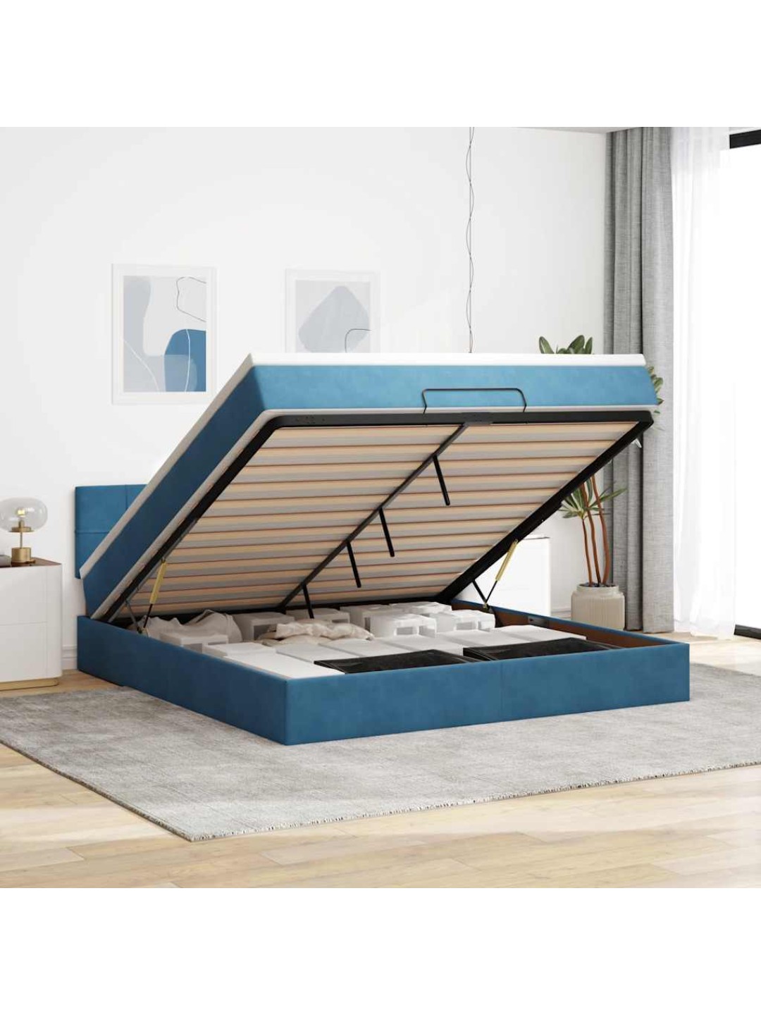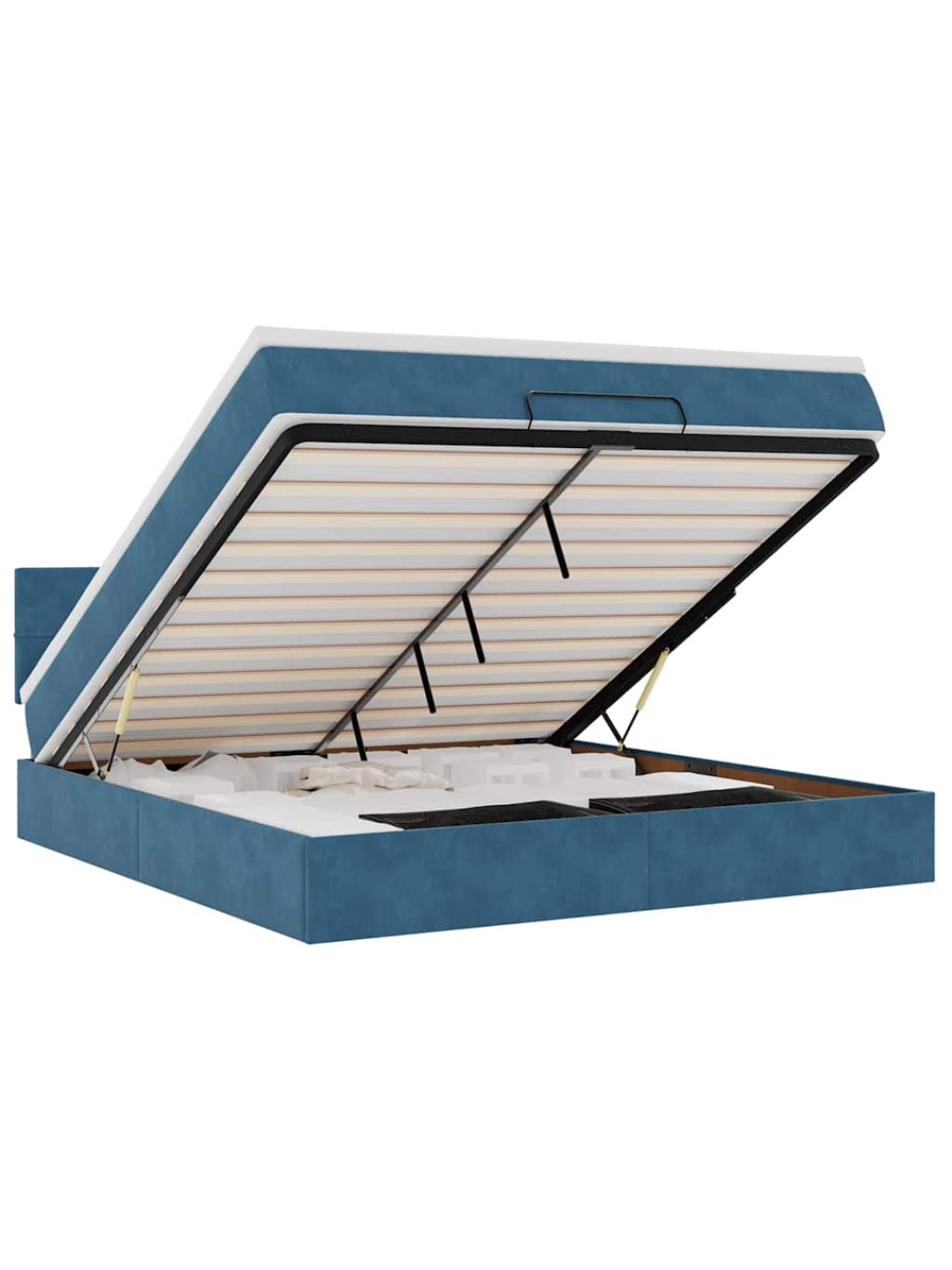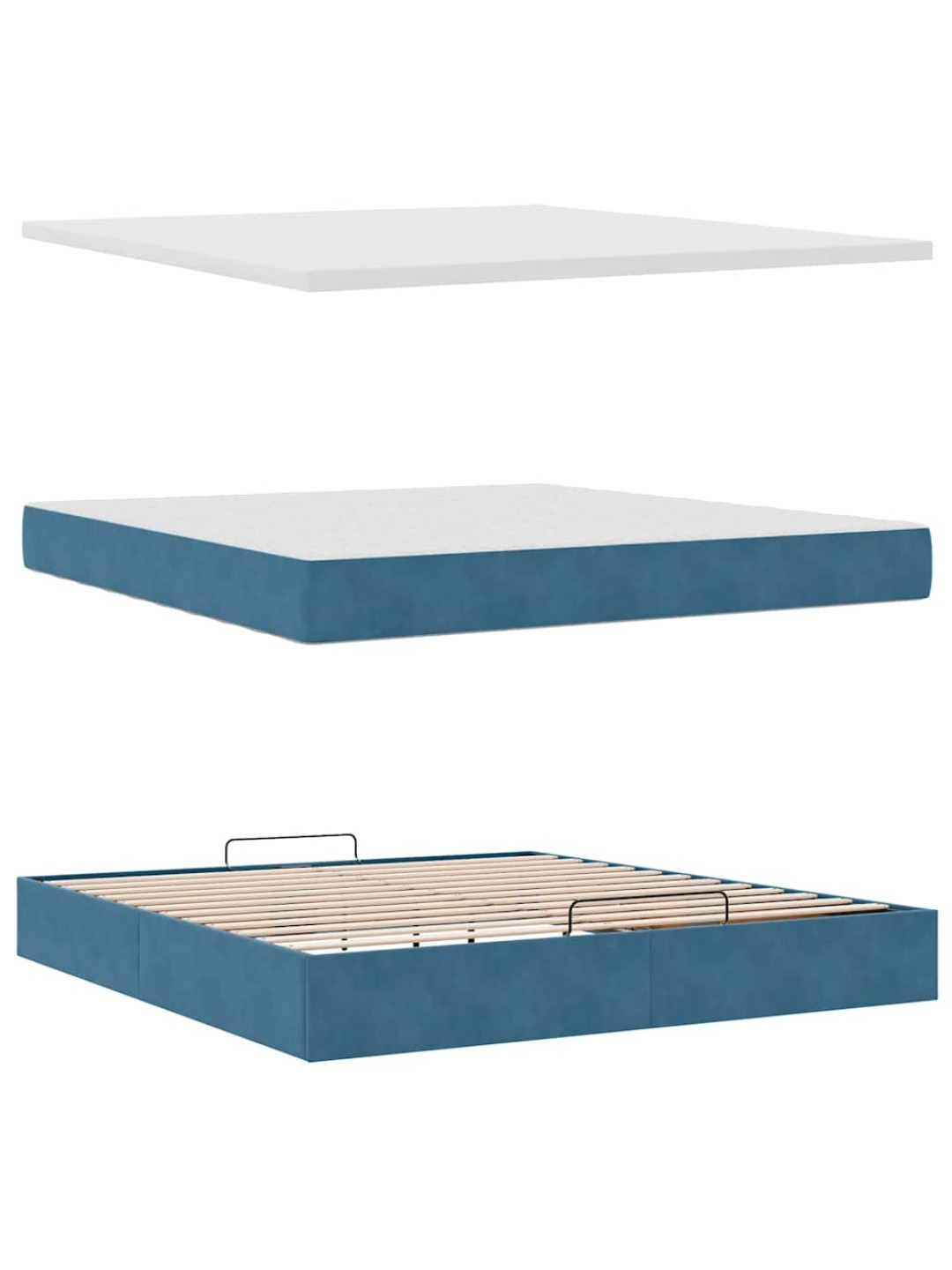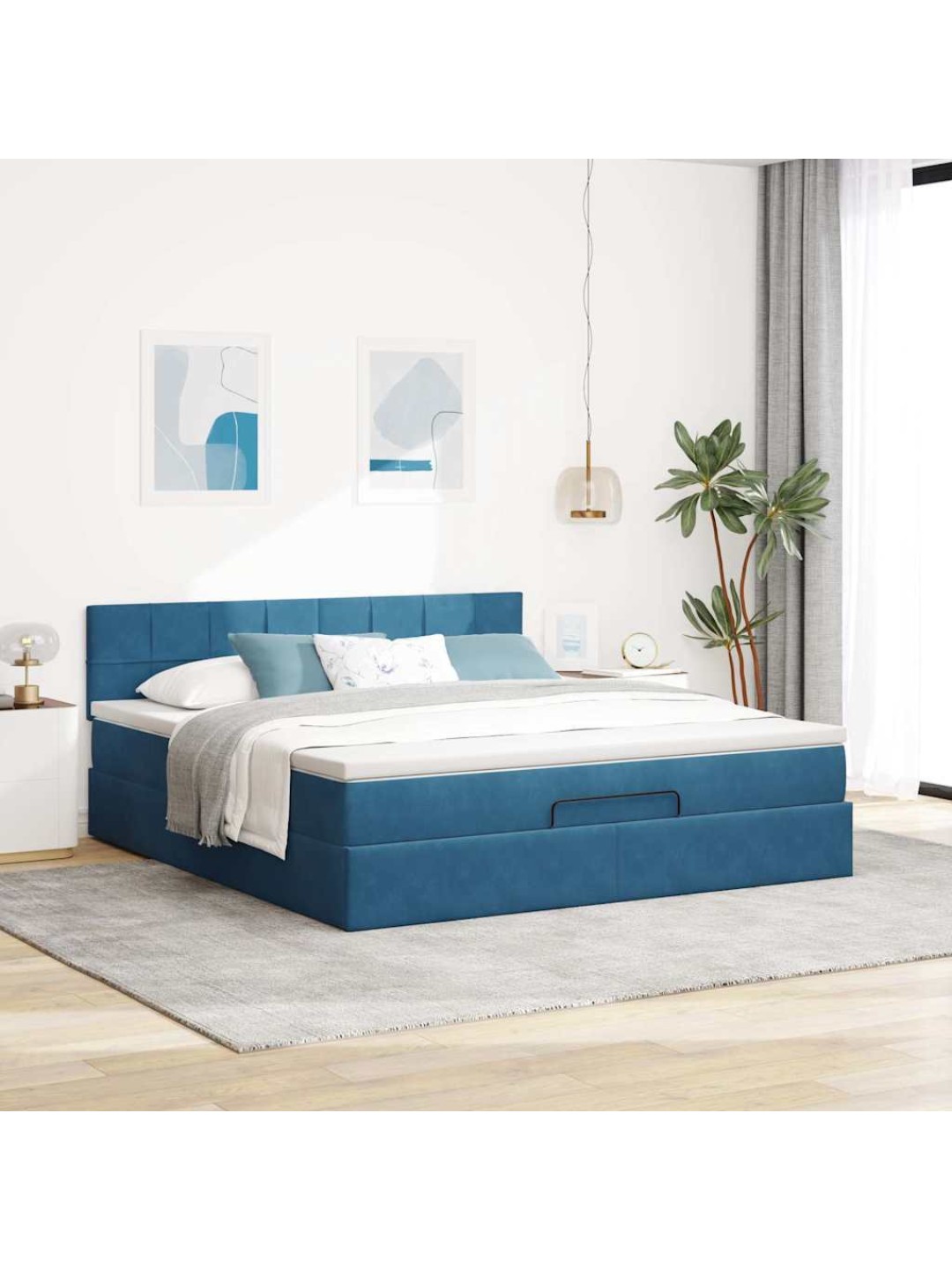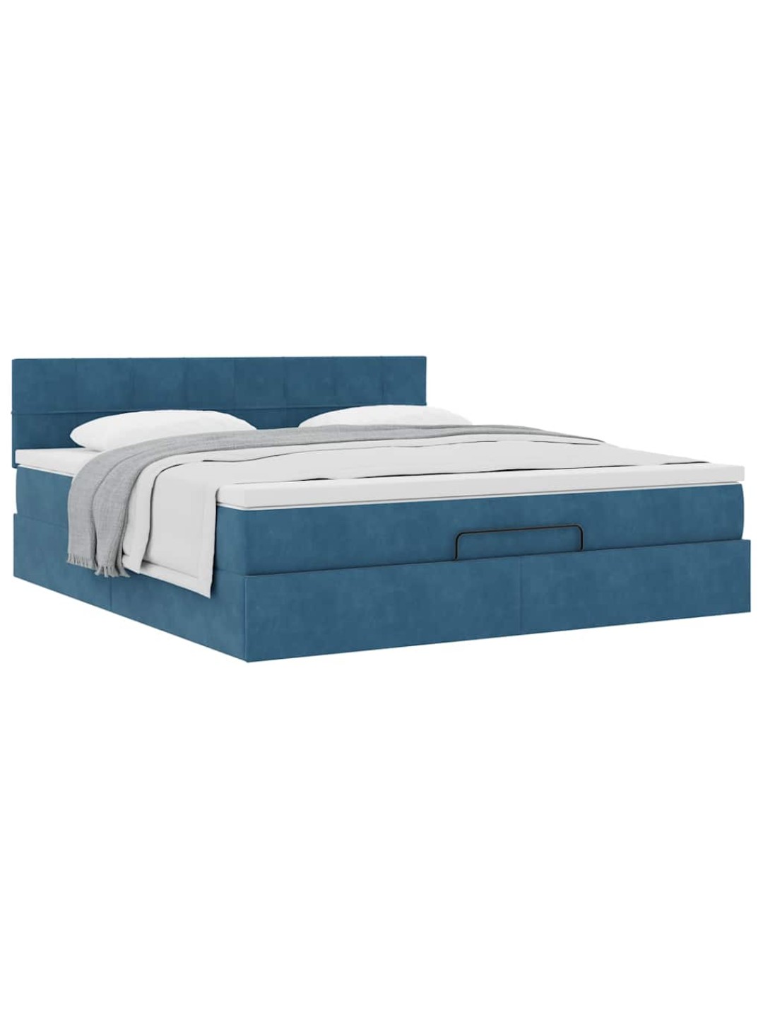 Ottomani voodi madratsiga, tumesinine, 180x200 cm, samet