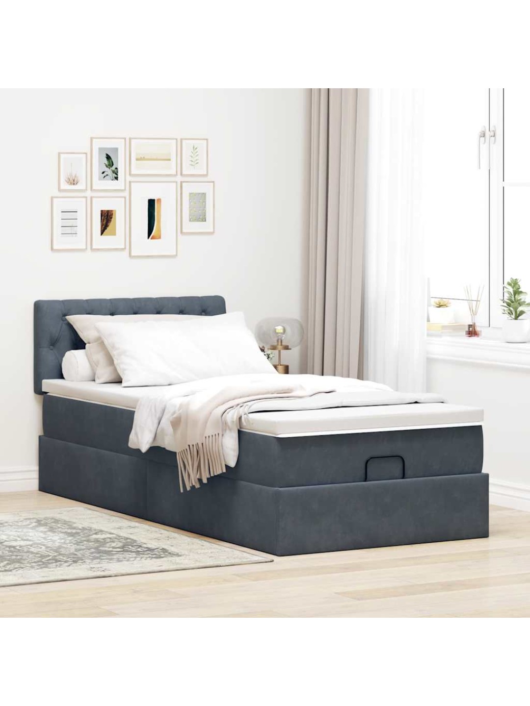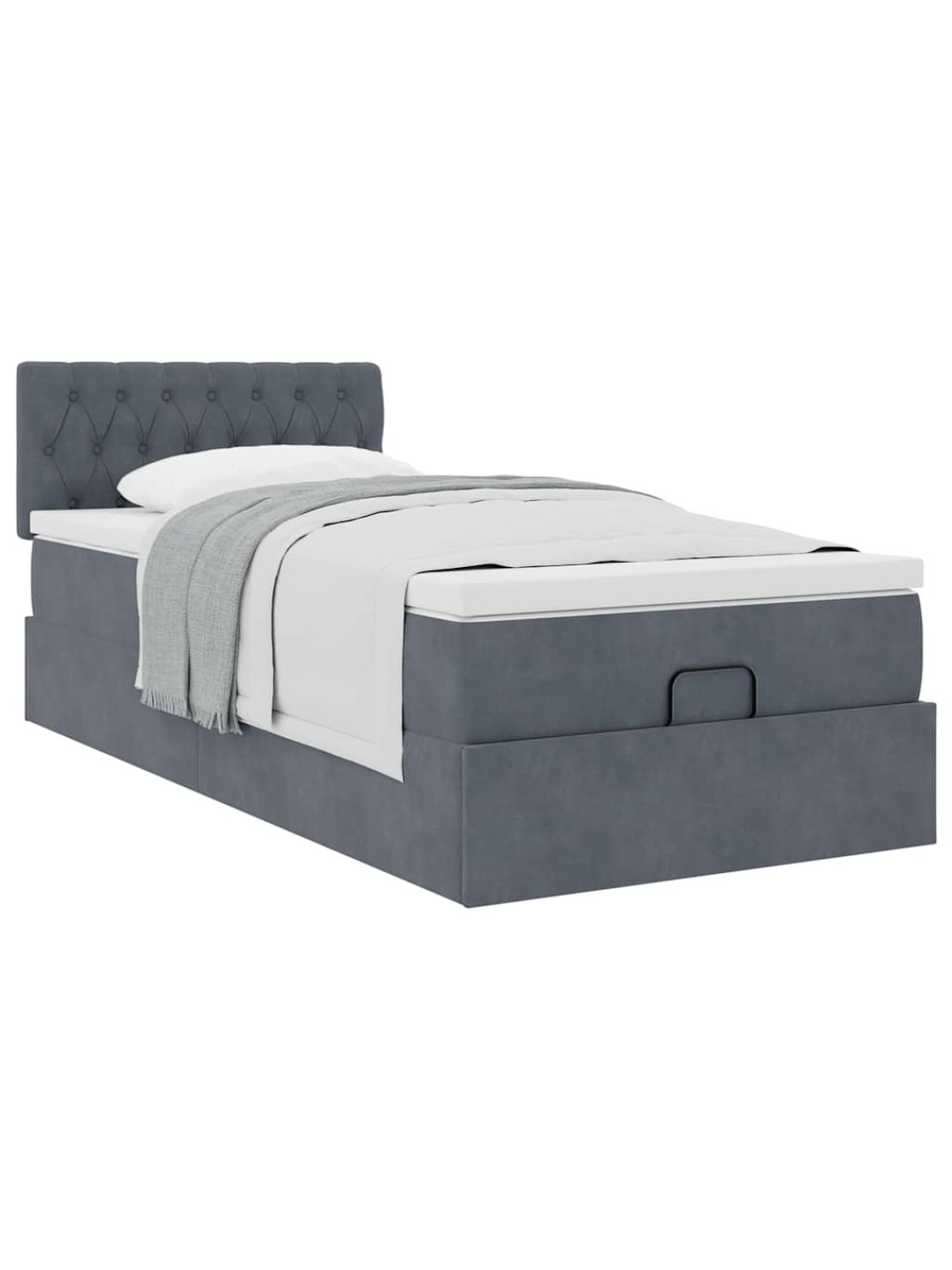 Ottomani voodiraam madratsiga, tumehall, 80x200cm, samet