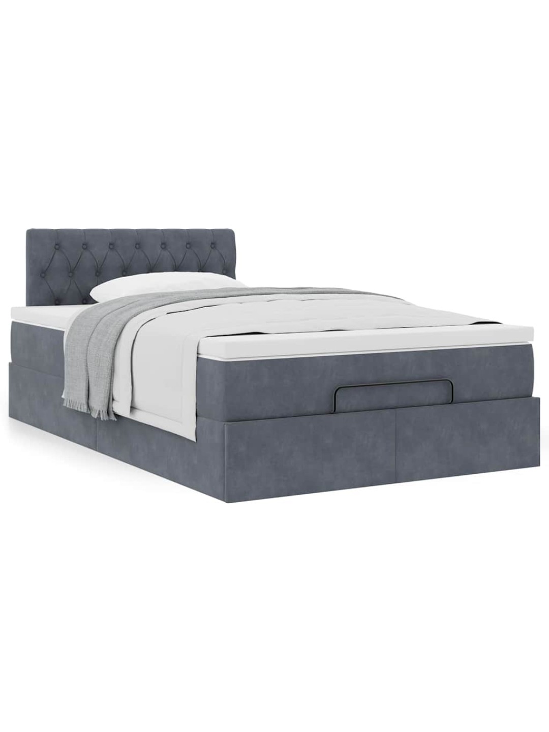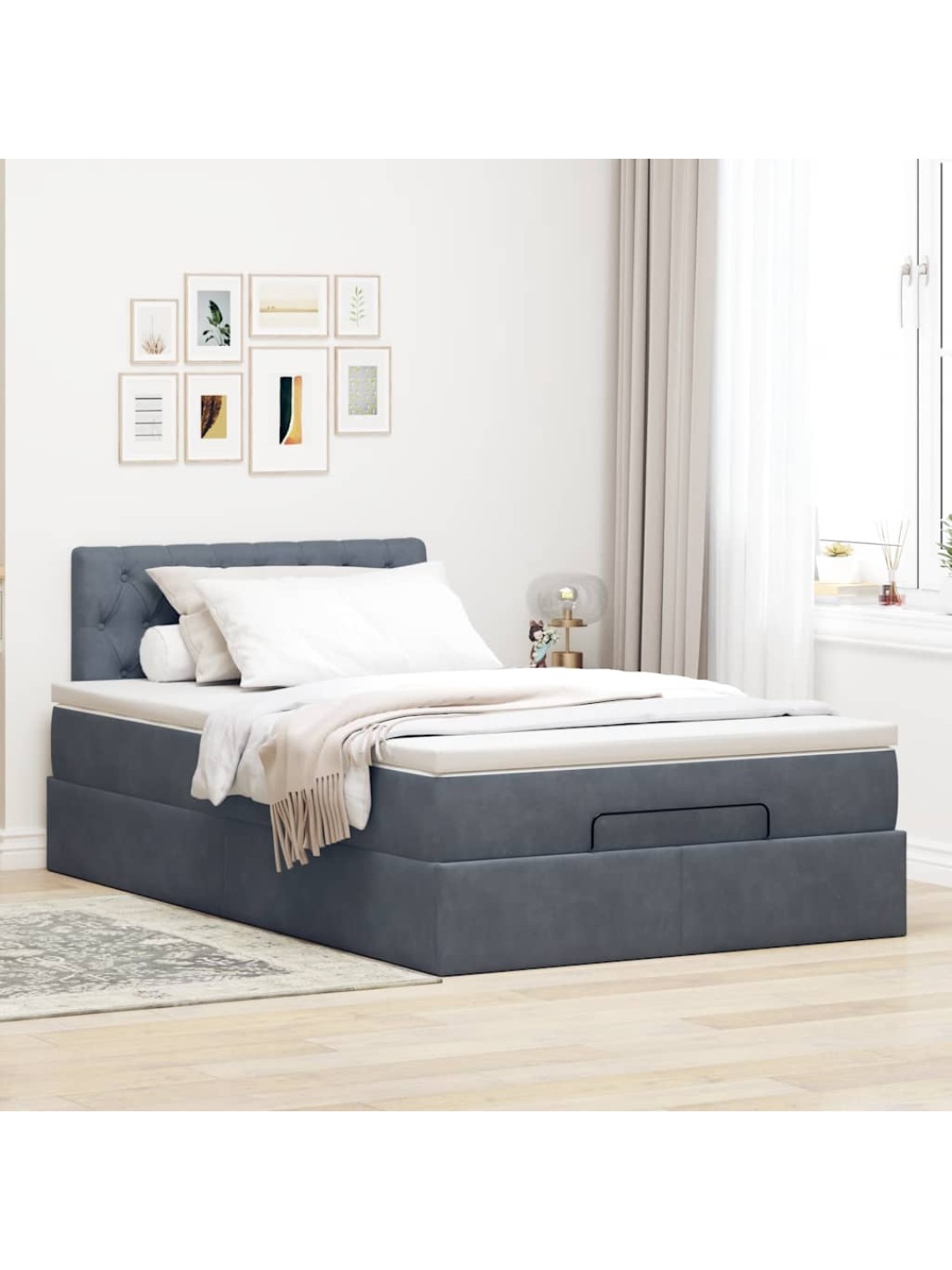 Ottomani voodi madratsiga, tumehall, 120x190 cm, samet