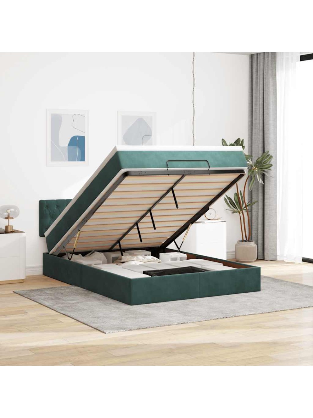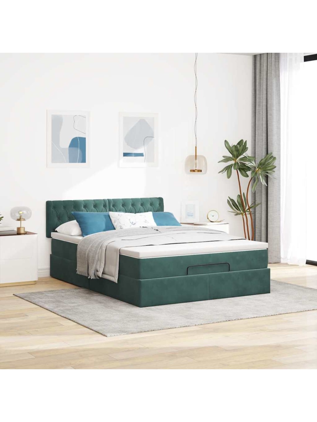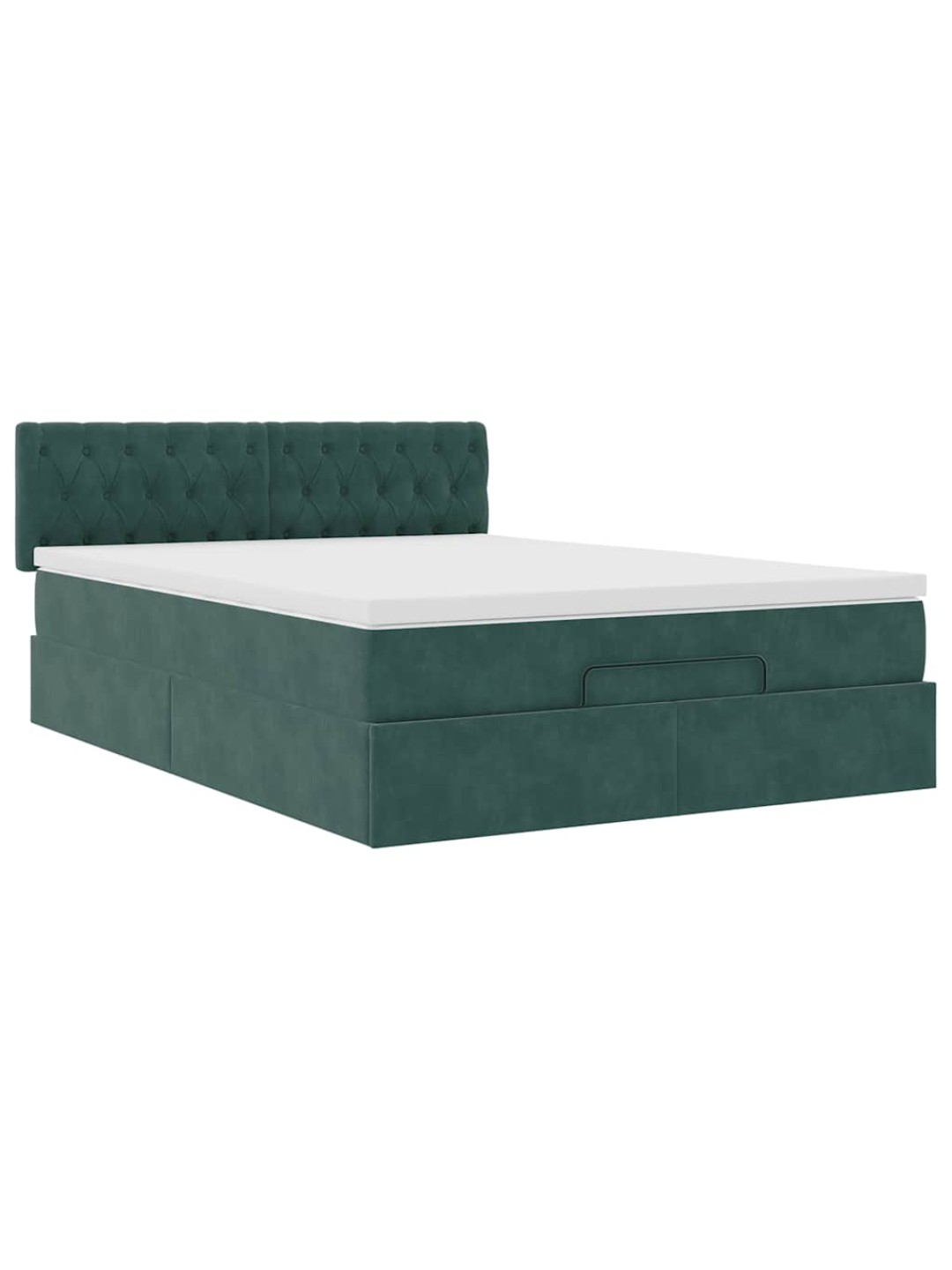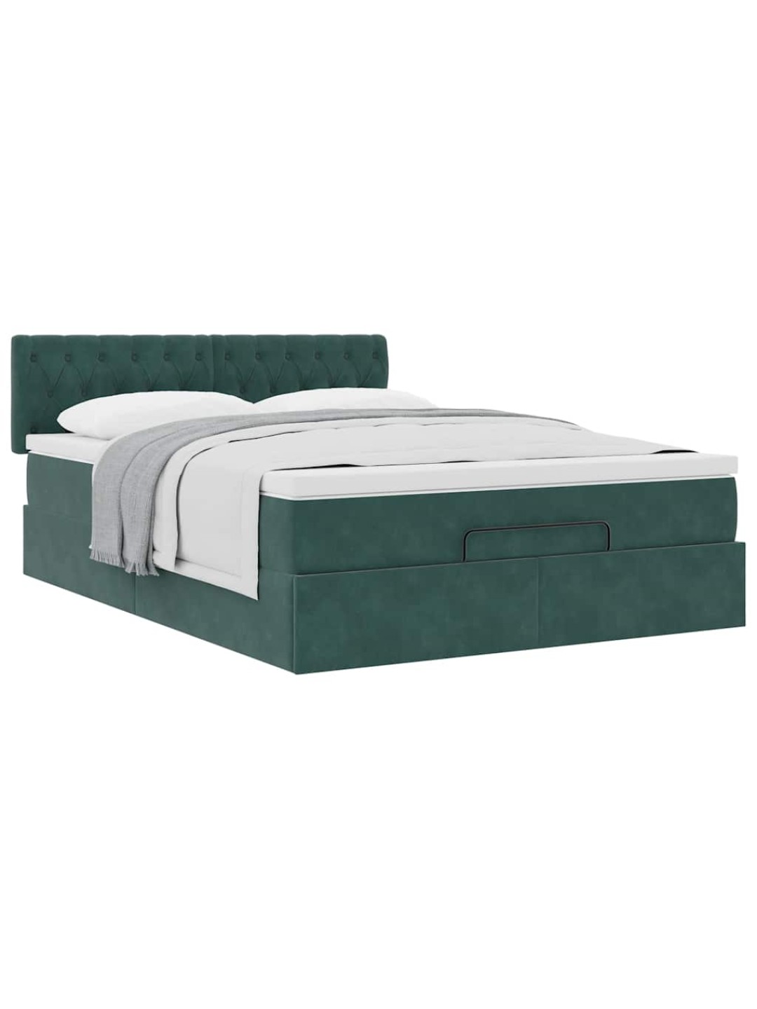 Ottomani voodi madratsiga, tumeroheline, 140x200 cm, samet