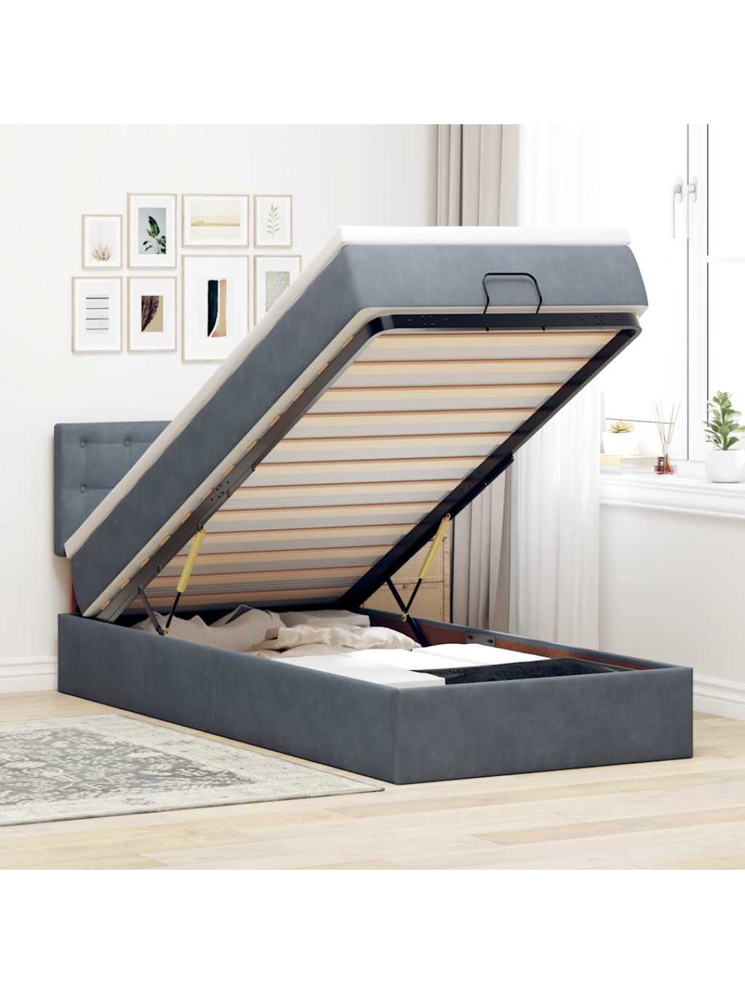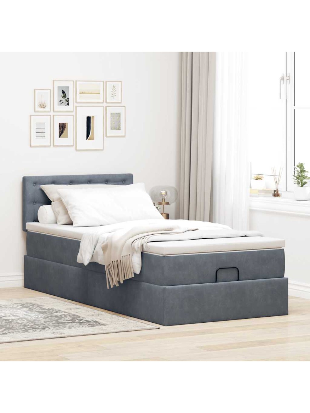 Ottomani voodiraam madratsiga, tumehall, 80x200cm, samet