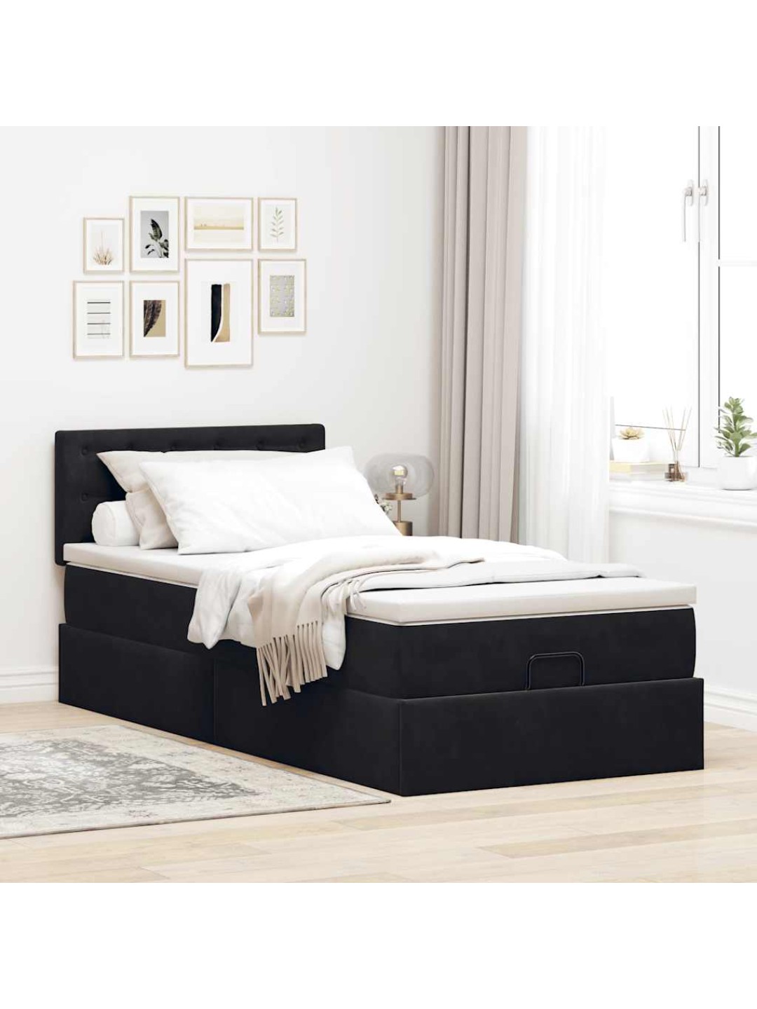 Ottomani voodiraam madratsiga, must, 90x200cm, samet