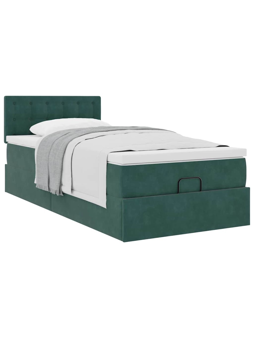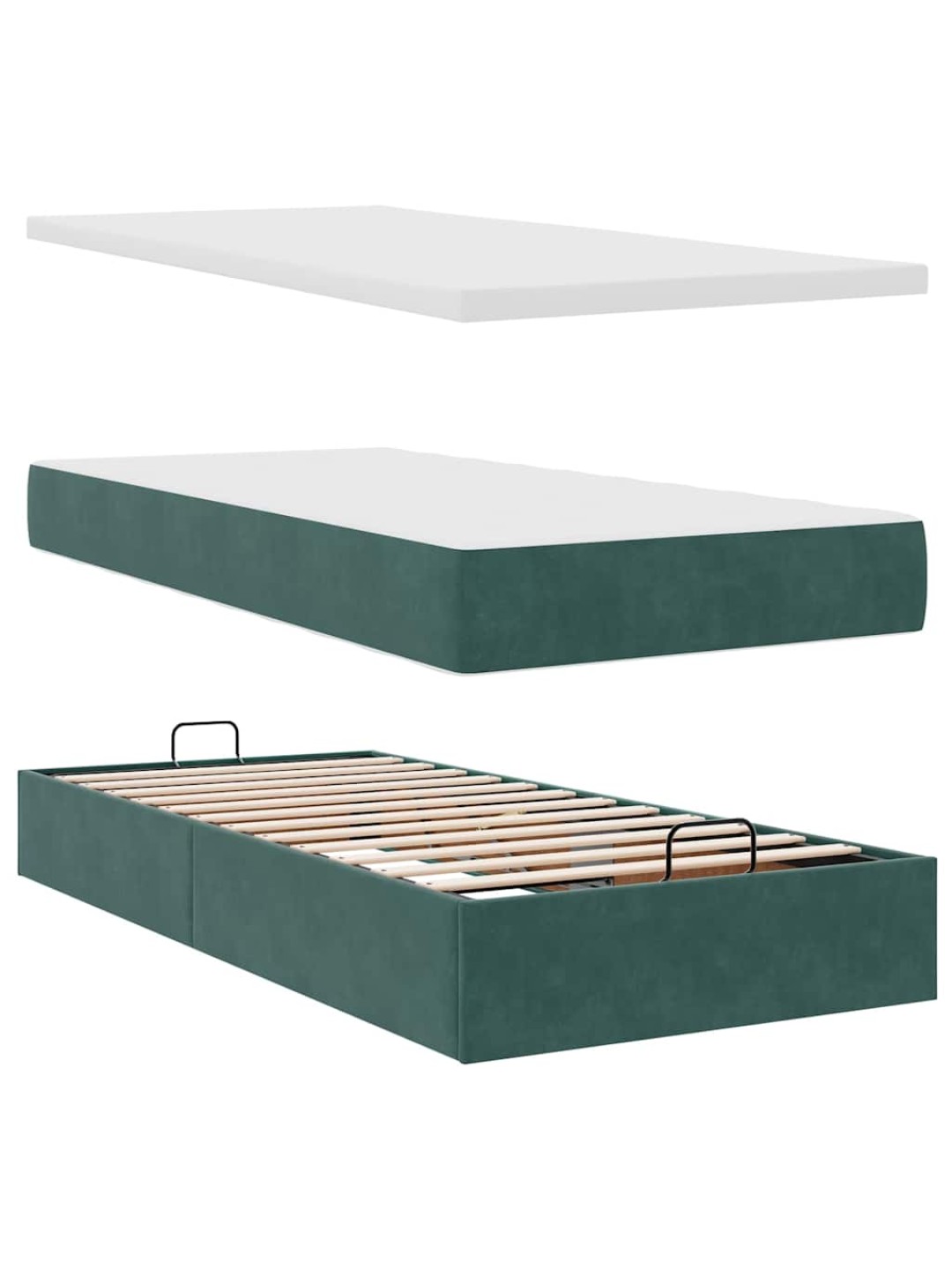 Ottomani voodiraam madratsiga, tumeroheline, 90x200cm, samet