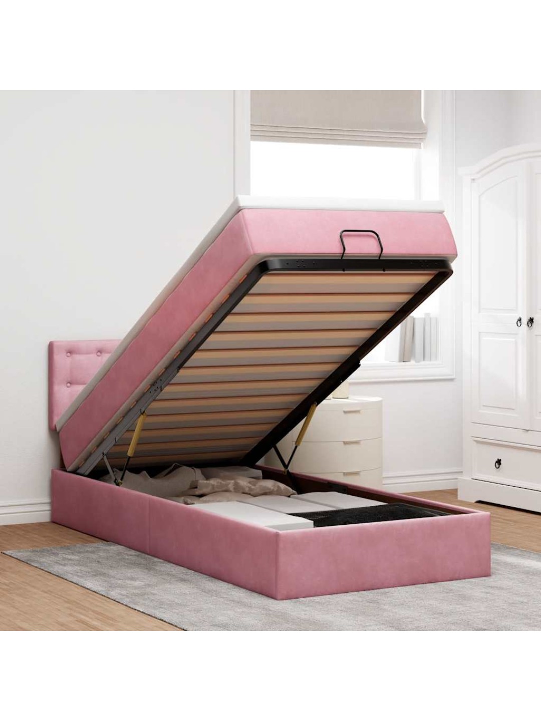 Ottomani voodiraam madratsiga, roosa, 100x200cm, samet