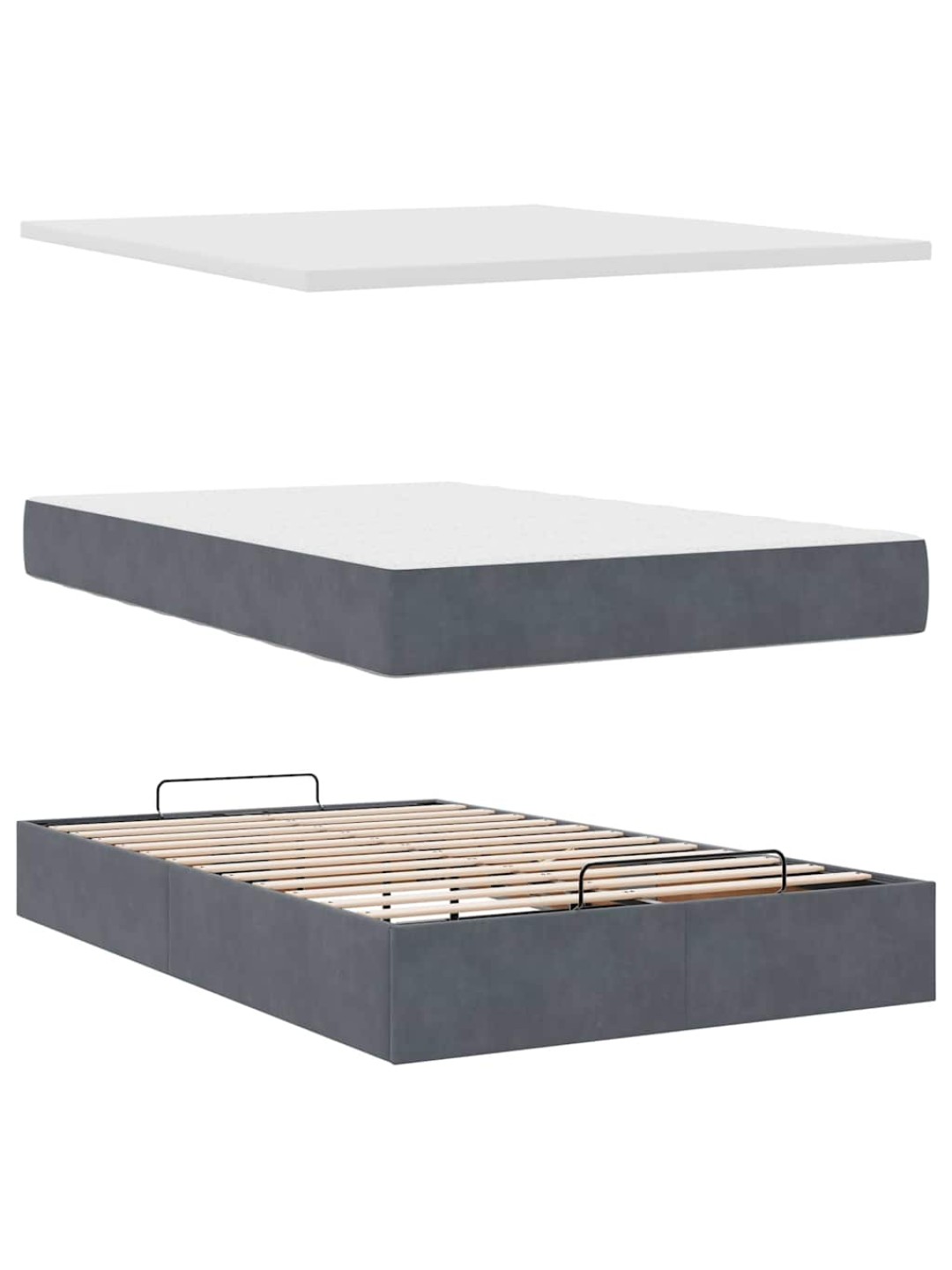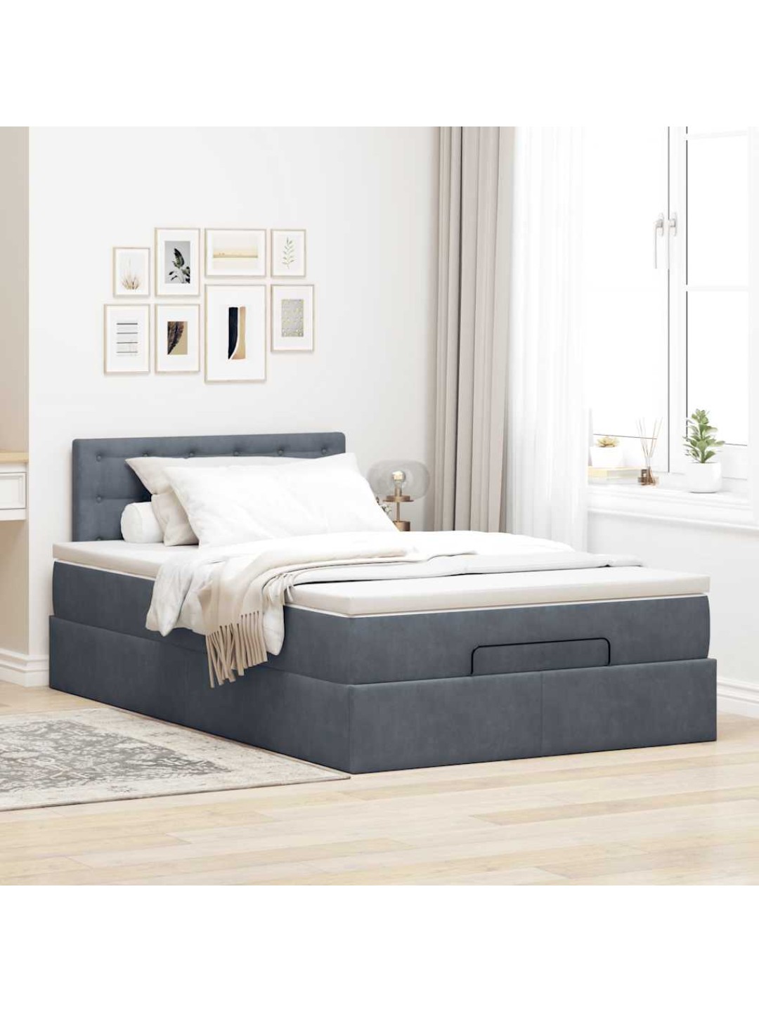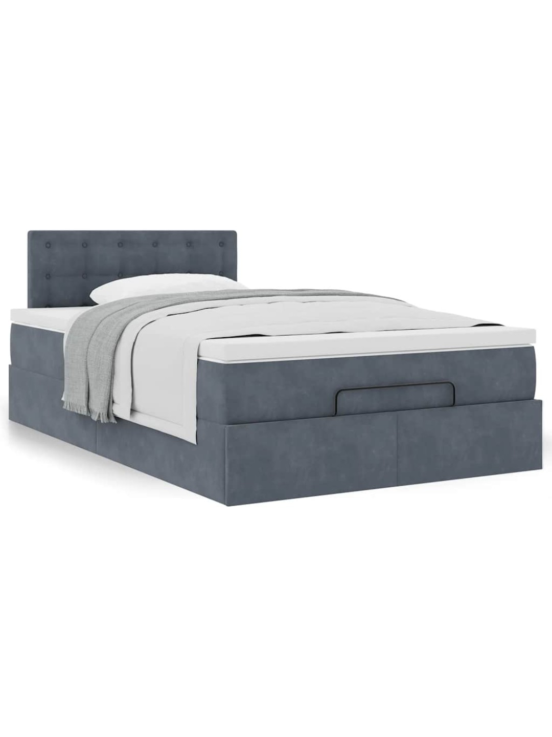 Ottomani voodi madratsiga, tumehall, 120x190 cm, samet