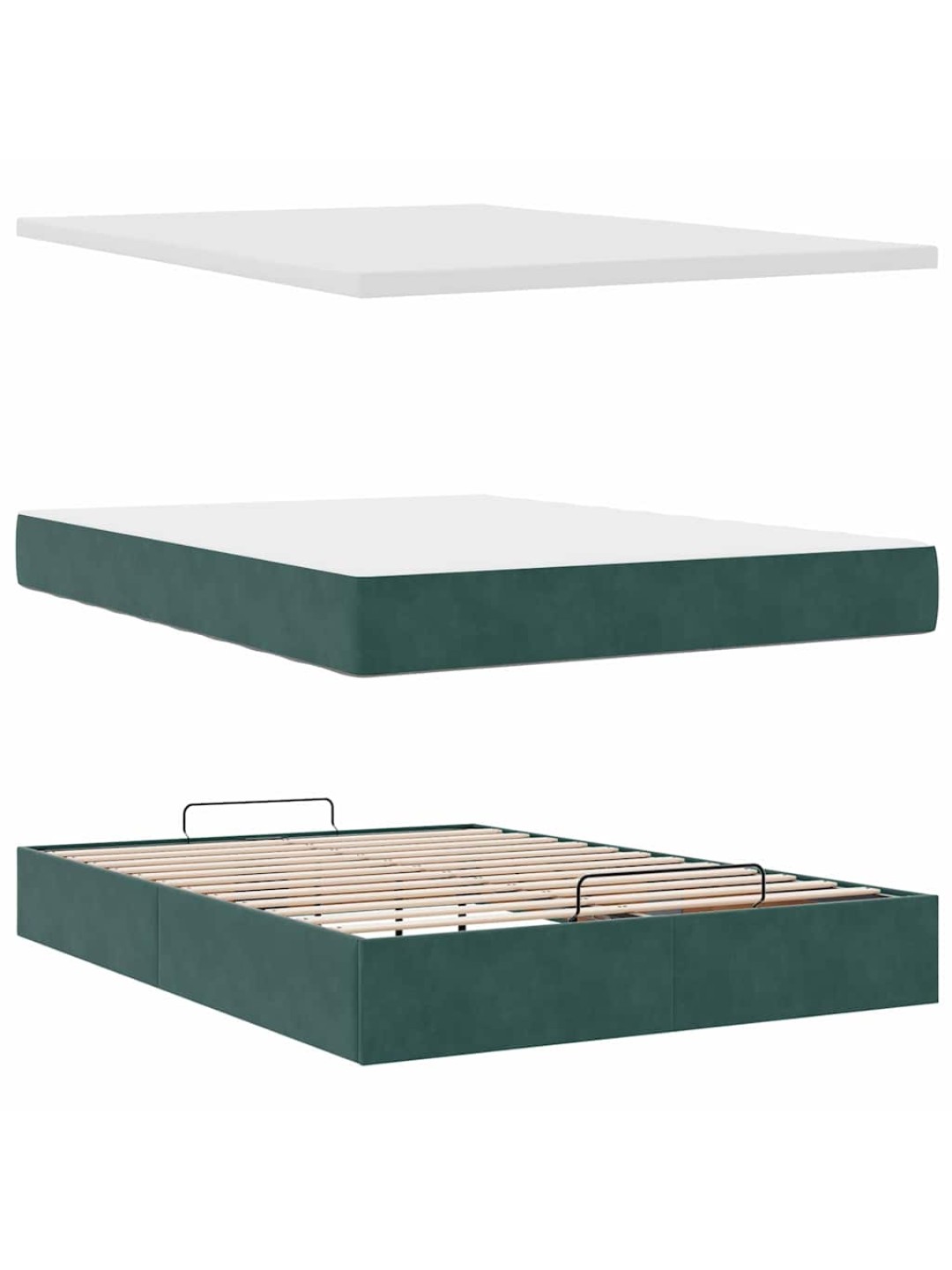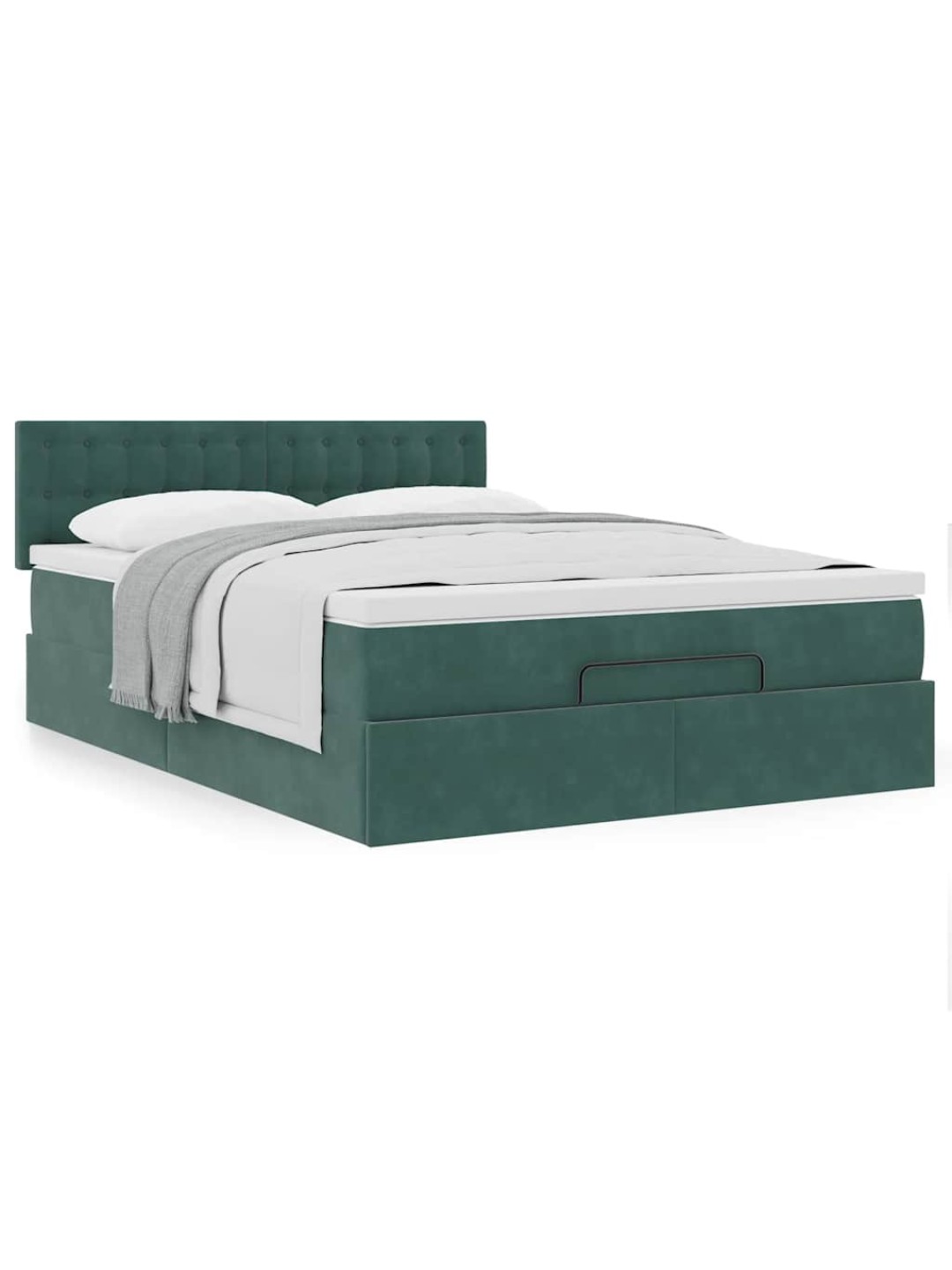 Ottomani voodi madratsiga, tumeroheline, 140x200 cm, samet