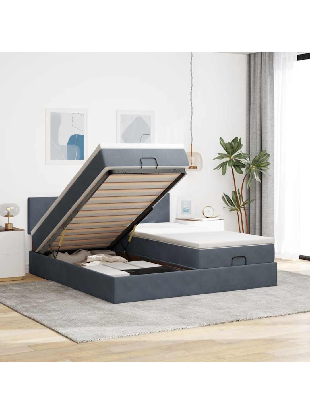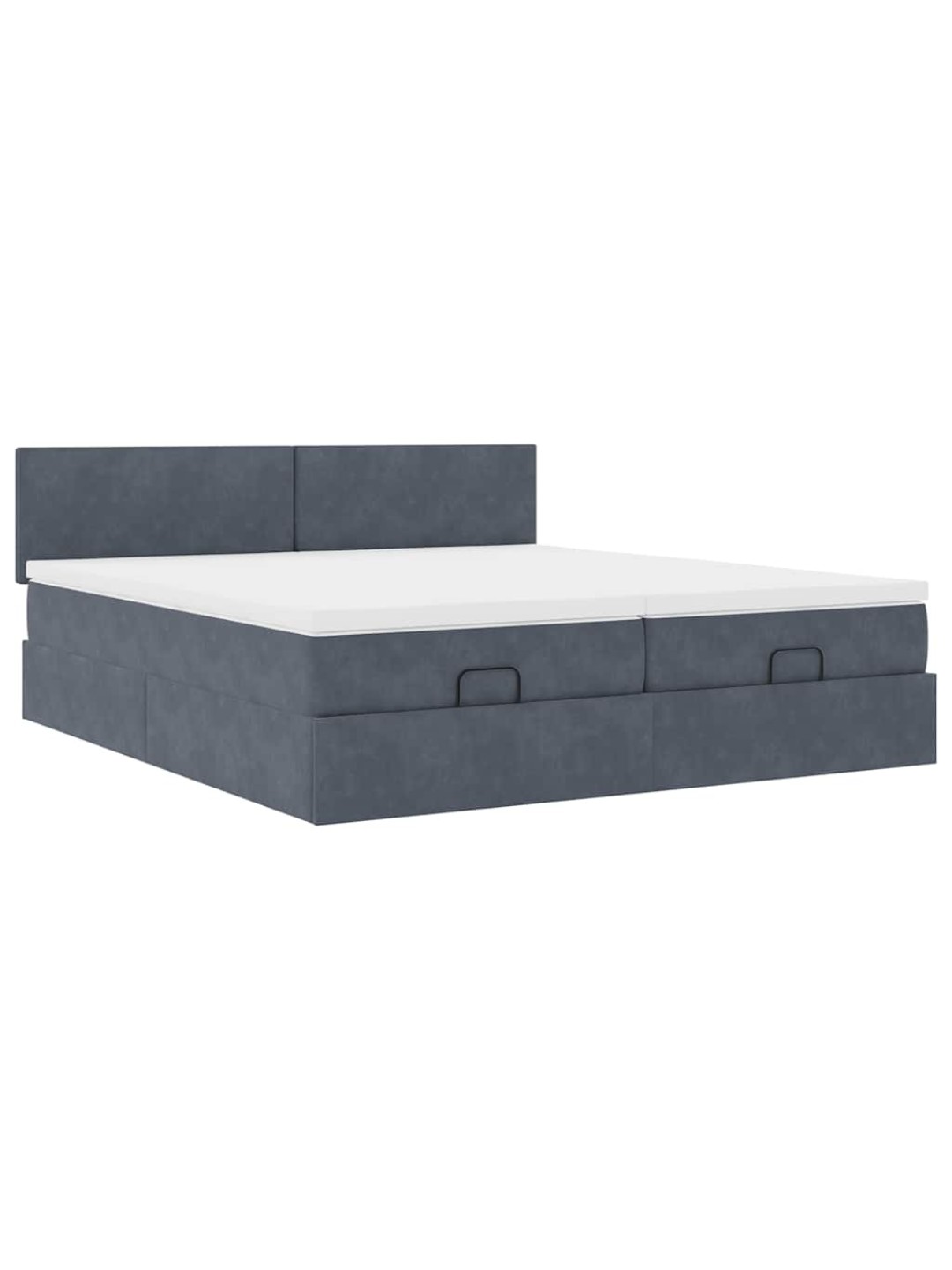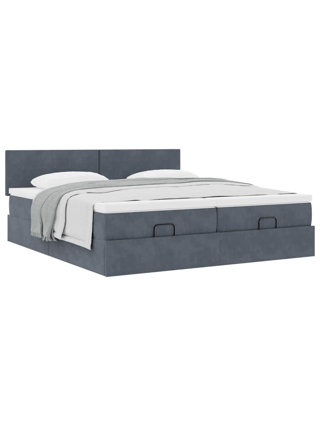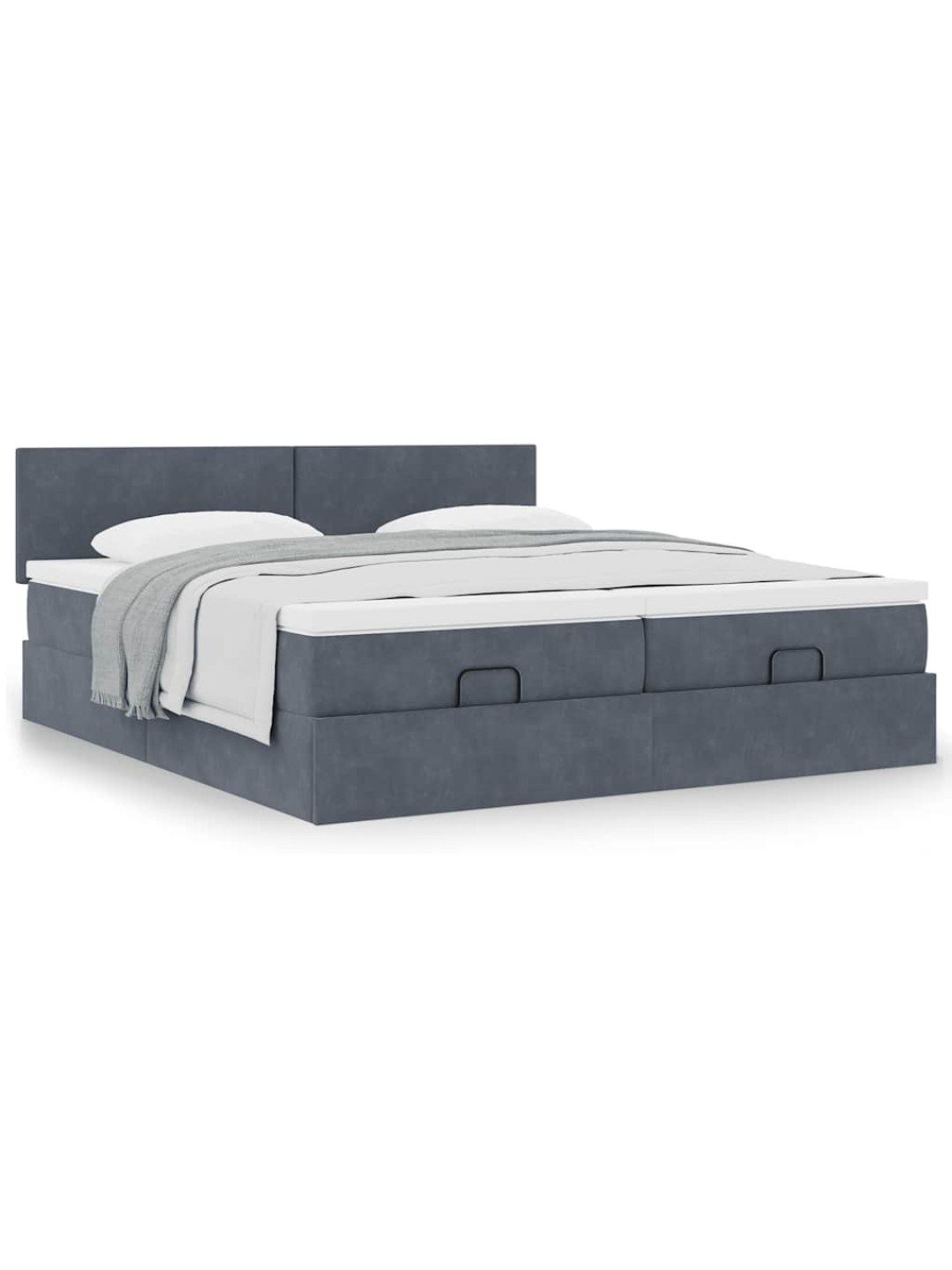 Ottomani voodiraam madratsitega, tumehall, 160x200 cm, samet