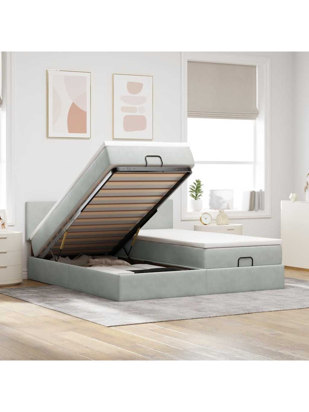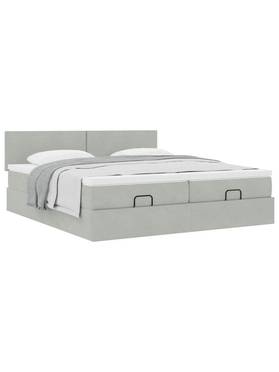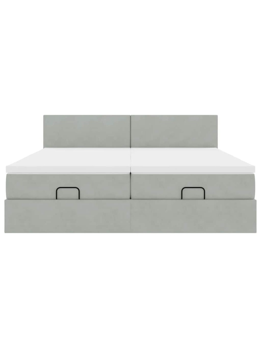 Ottomani voodiraam madratsitega, helehall, 200x200 cm, samet