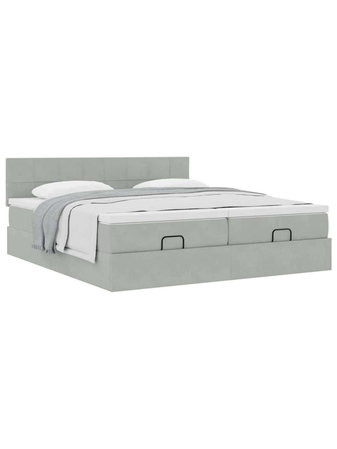 Ottomani voodiraam madratsitega, helehall, 200x200 cm, samet
