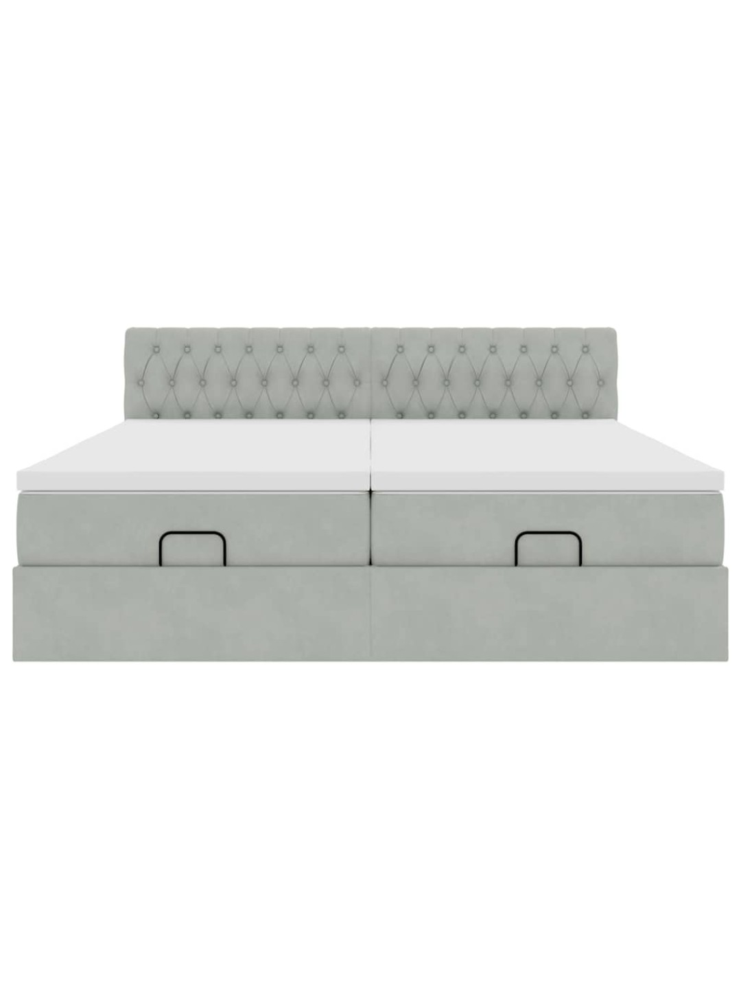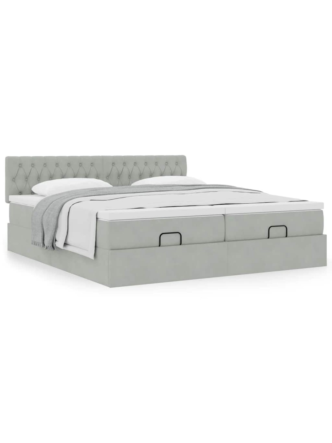 Ottomani voodiraam madratsitega, helehall, 200x200 cm, samet