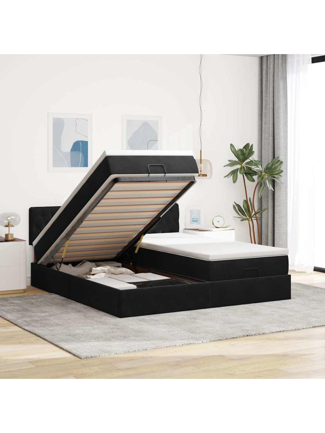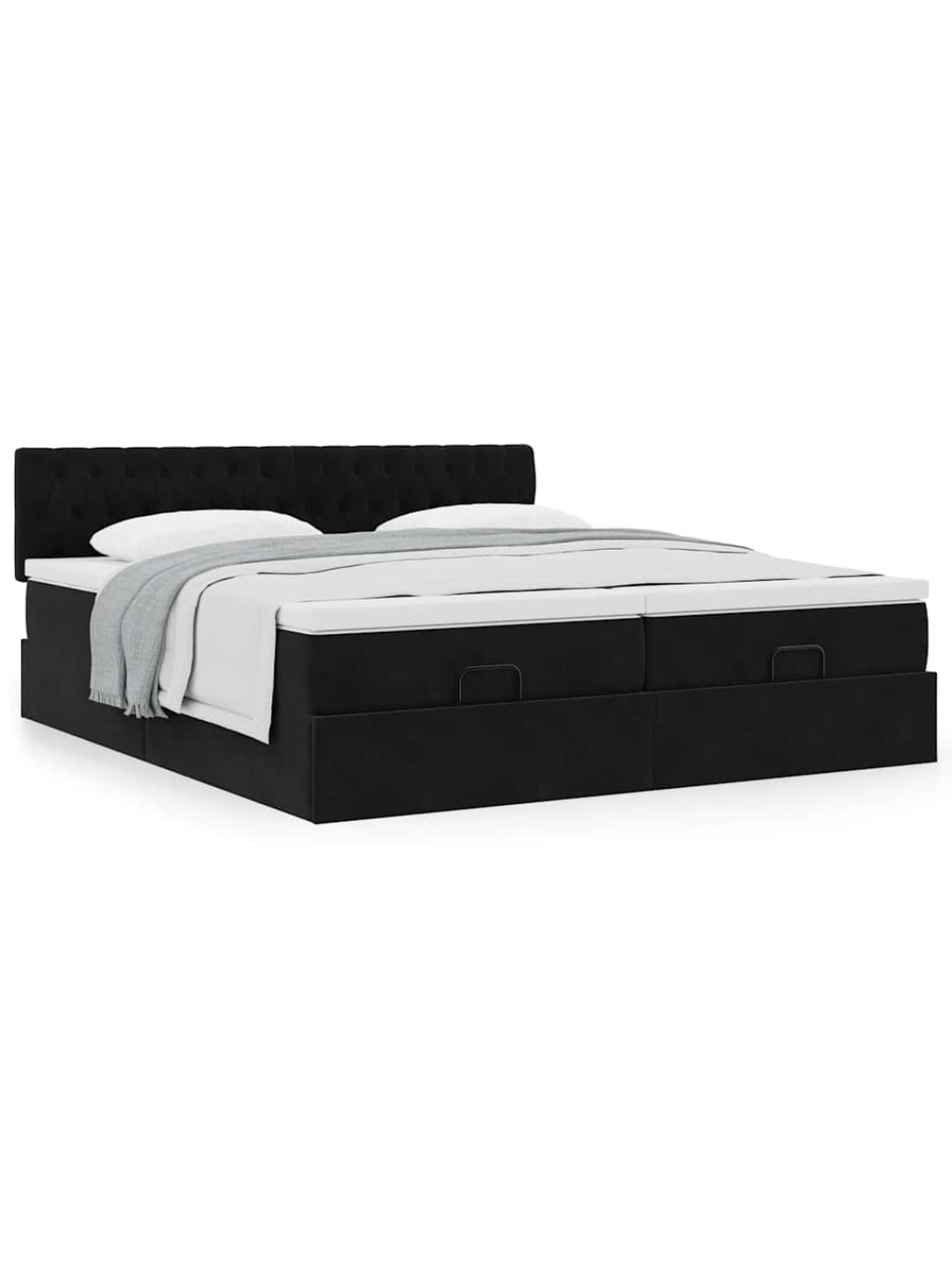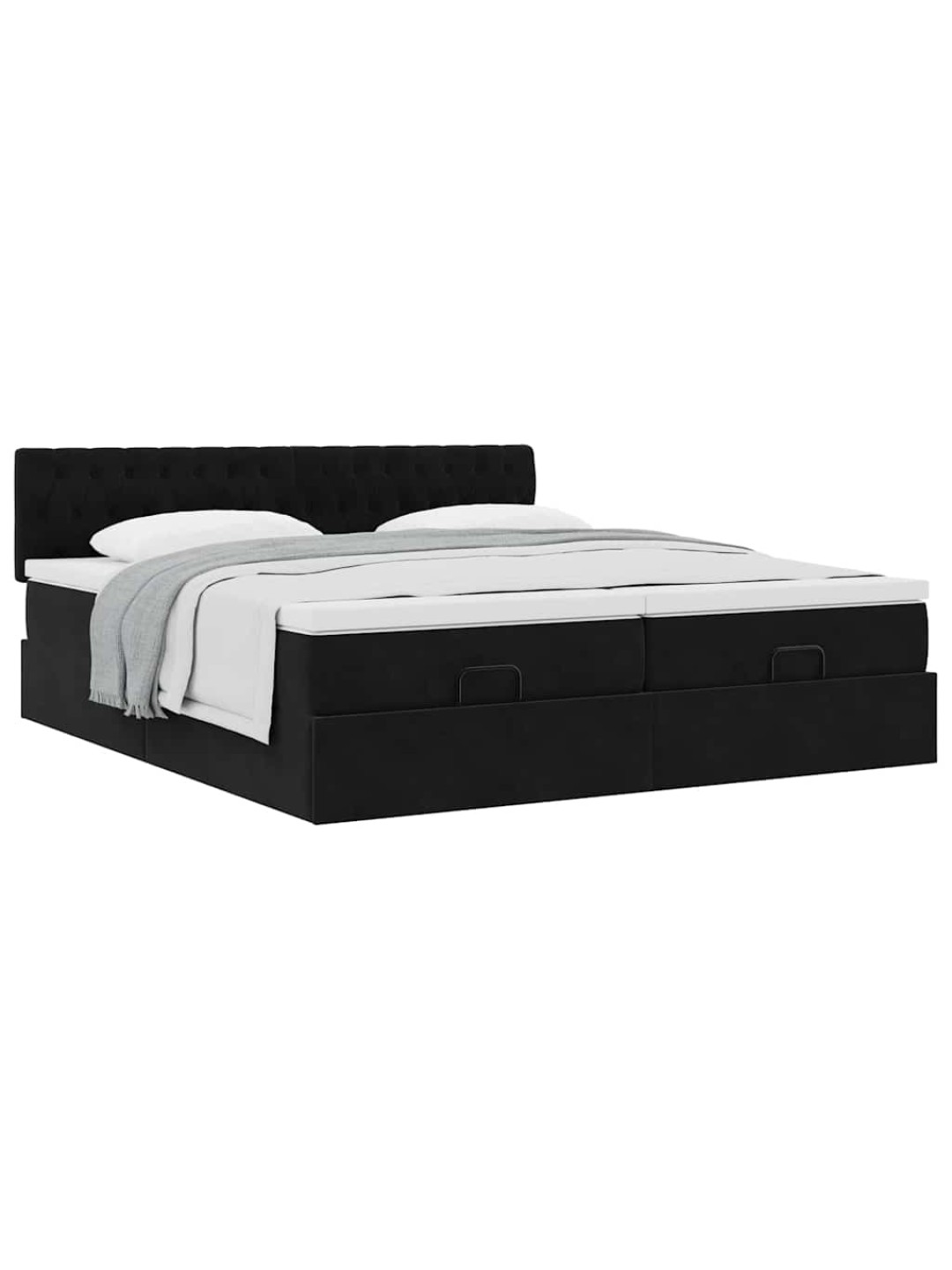 Ottomani voodiraam madratsitega, must, 200x200 cm, samet