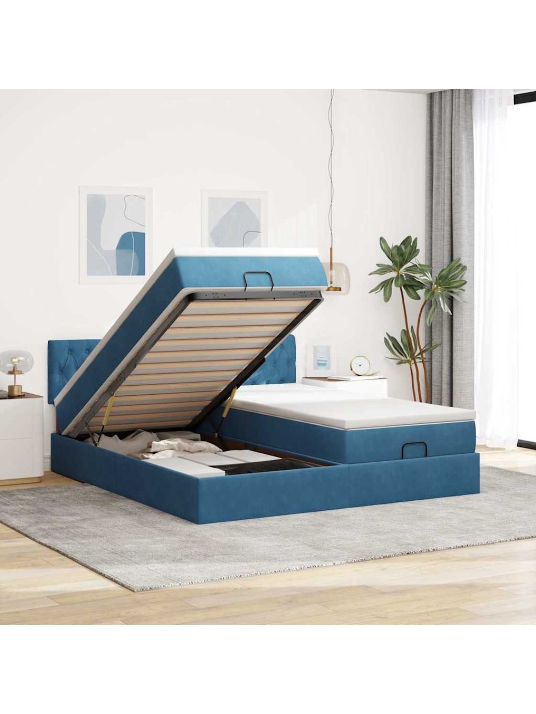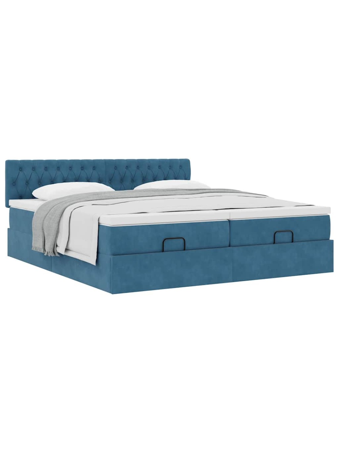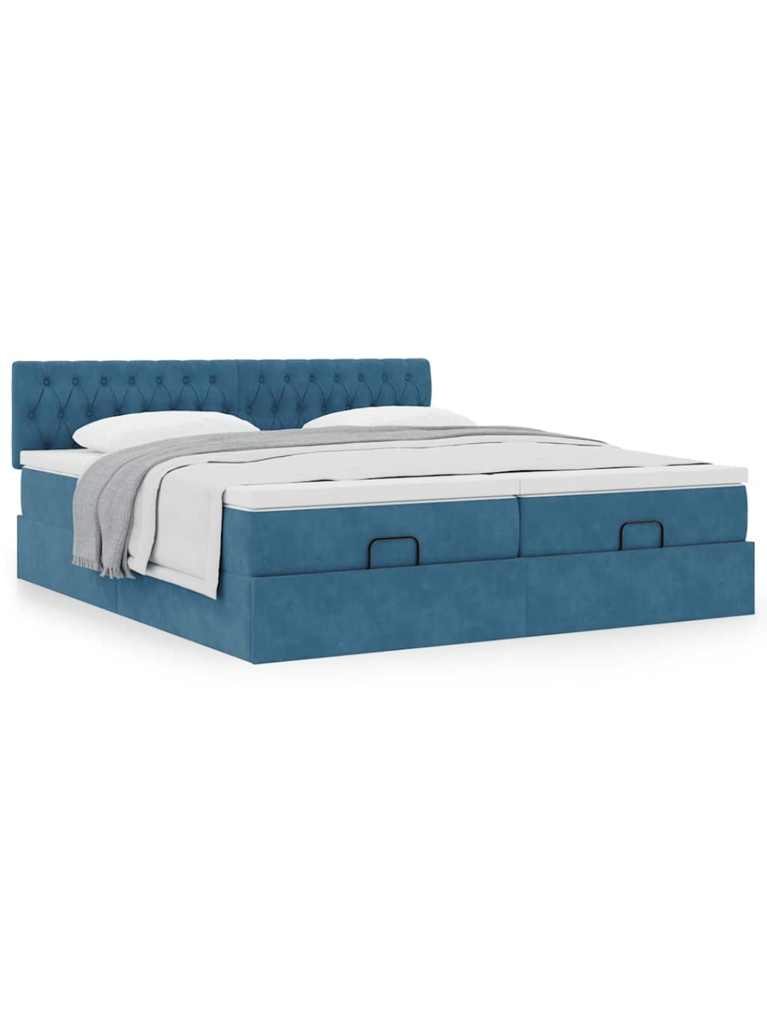 Ottomani voodiraam madratsitega, sinise, 200x200 cm, samet