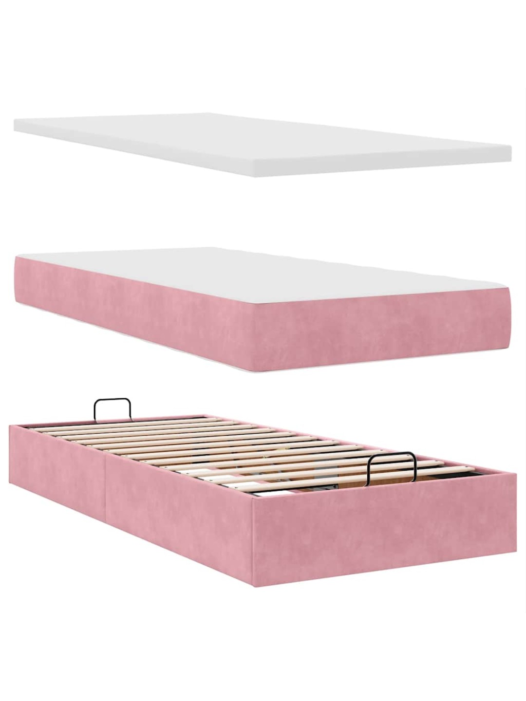 Ottomani voodiraam madratsitega, roosa, 200x200 cm, samet