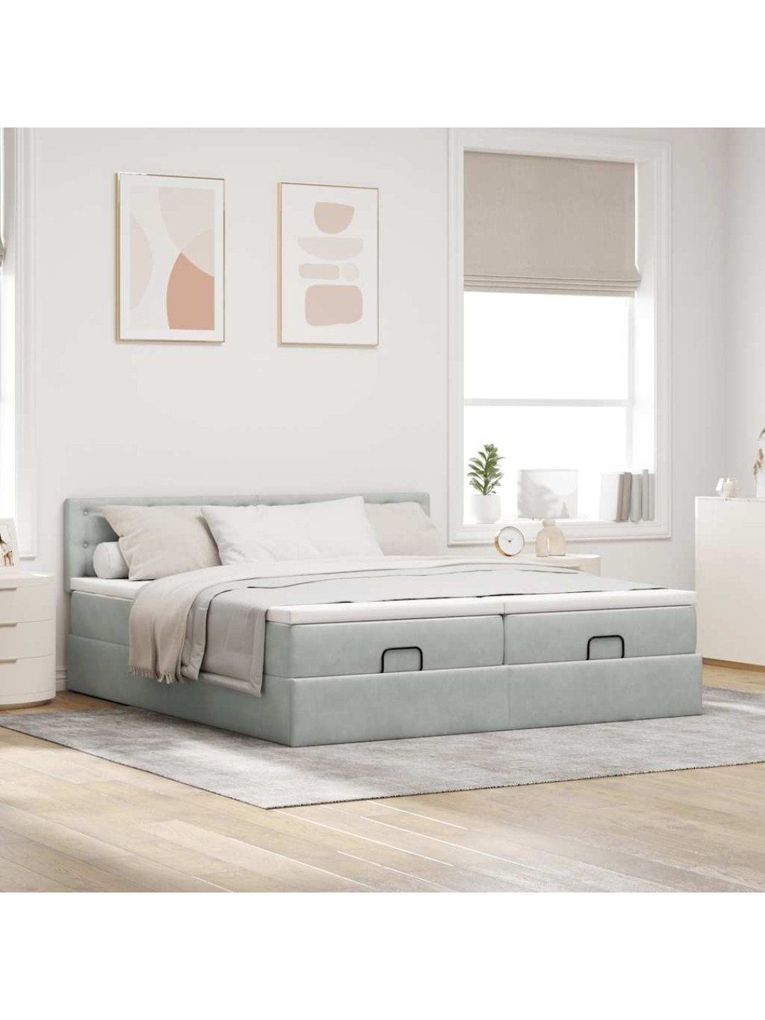 Ottomani voodiraam madratsitega, helehall, 160x200 cm, samet